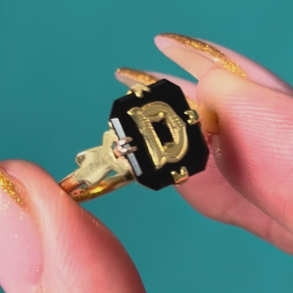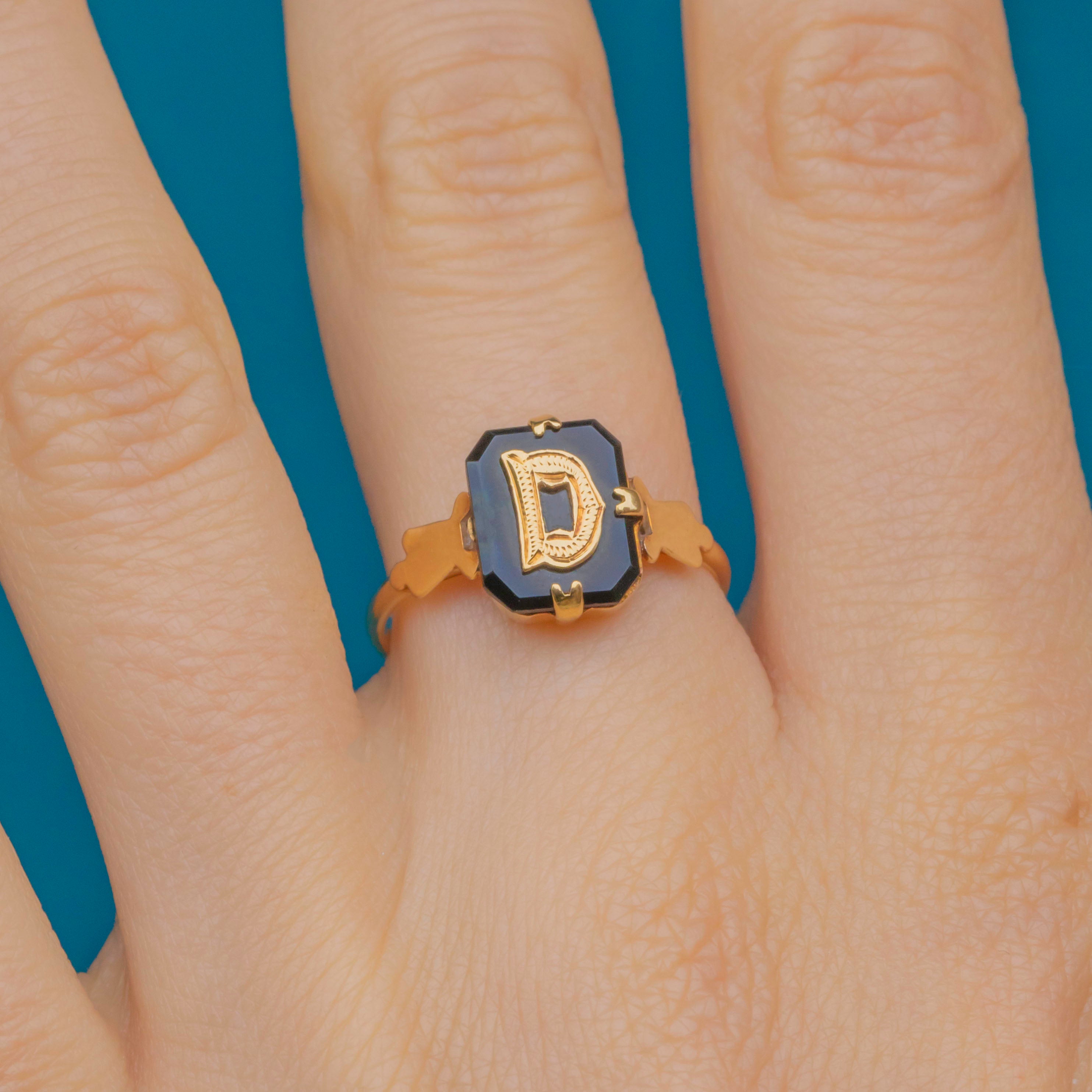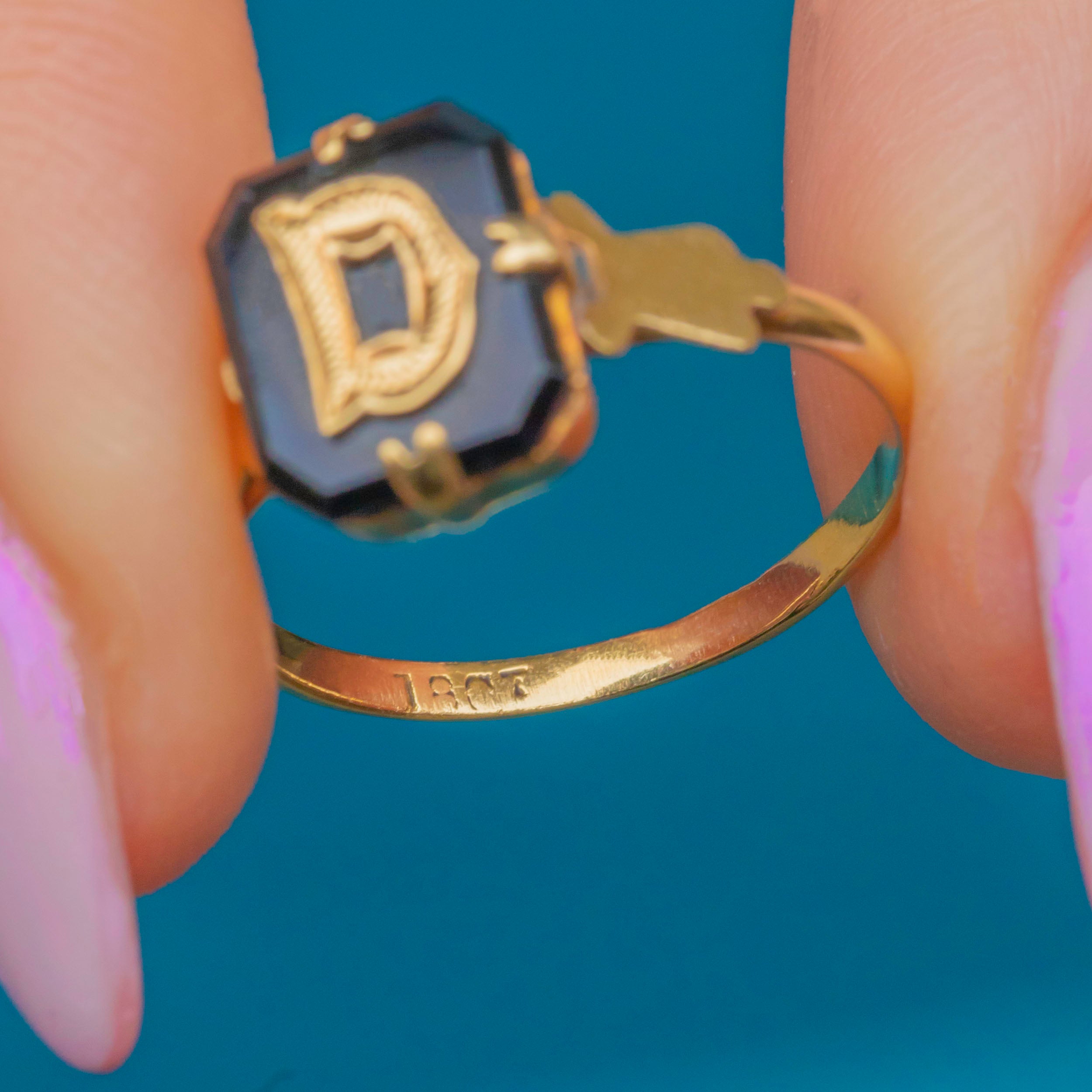 Victorian 18ct ゴールド「D」イニシャル オニキス モーニングリング