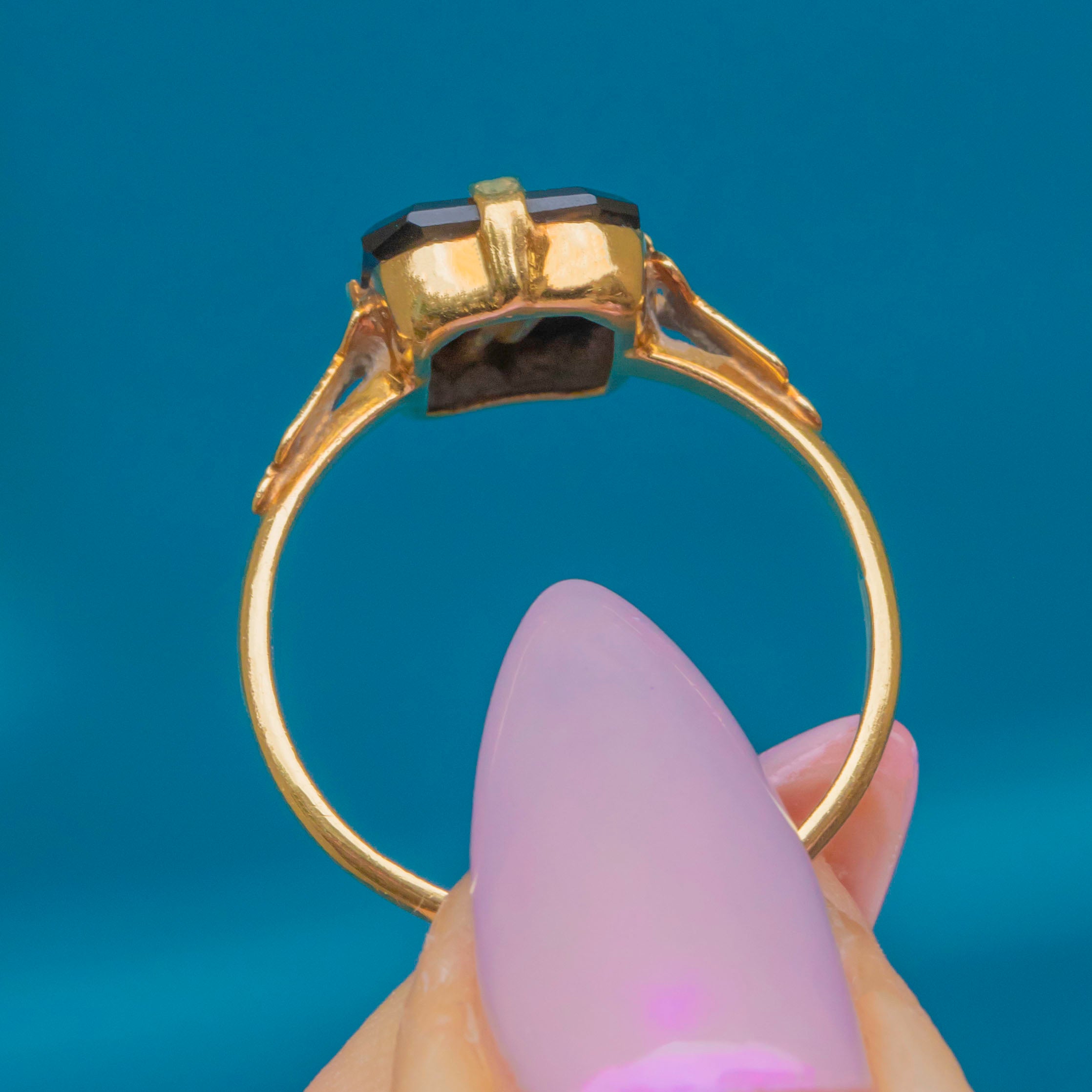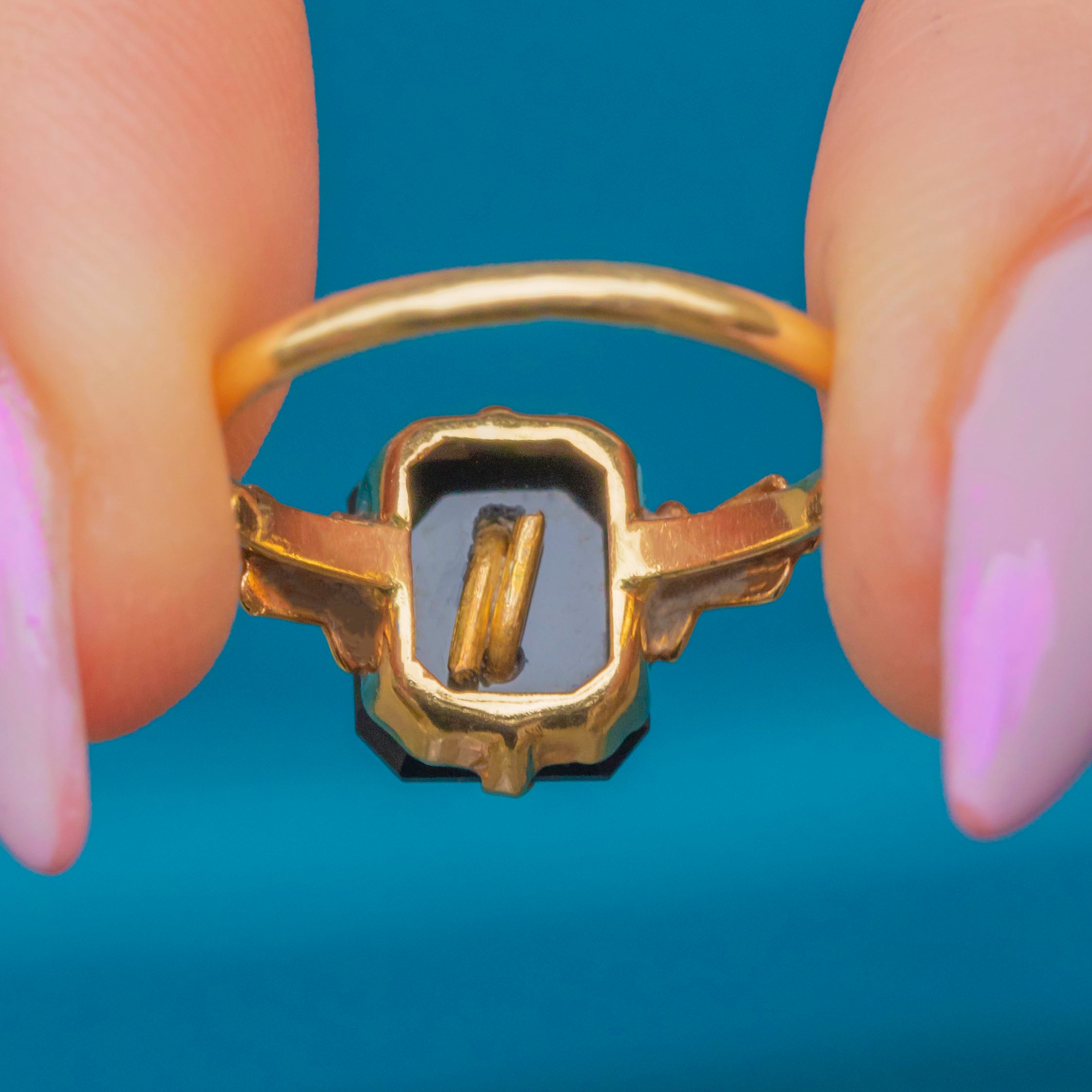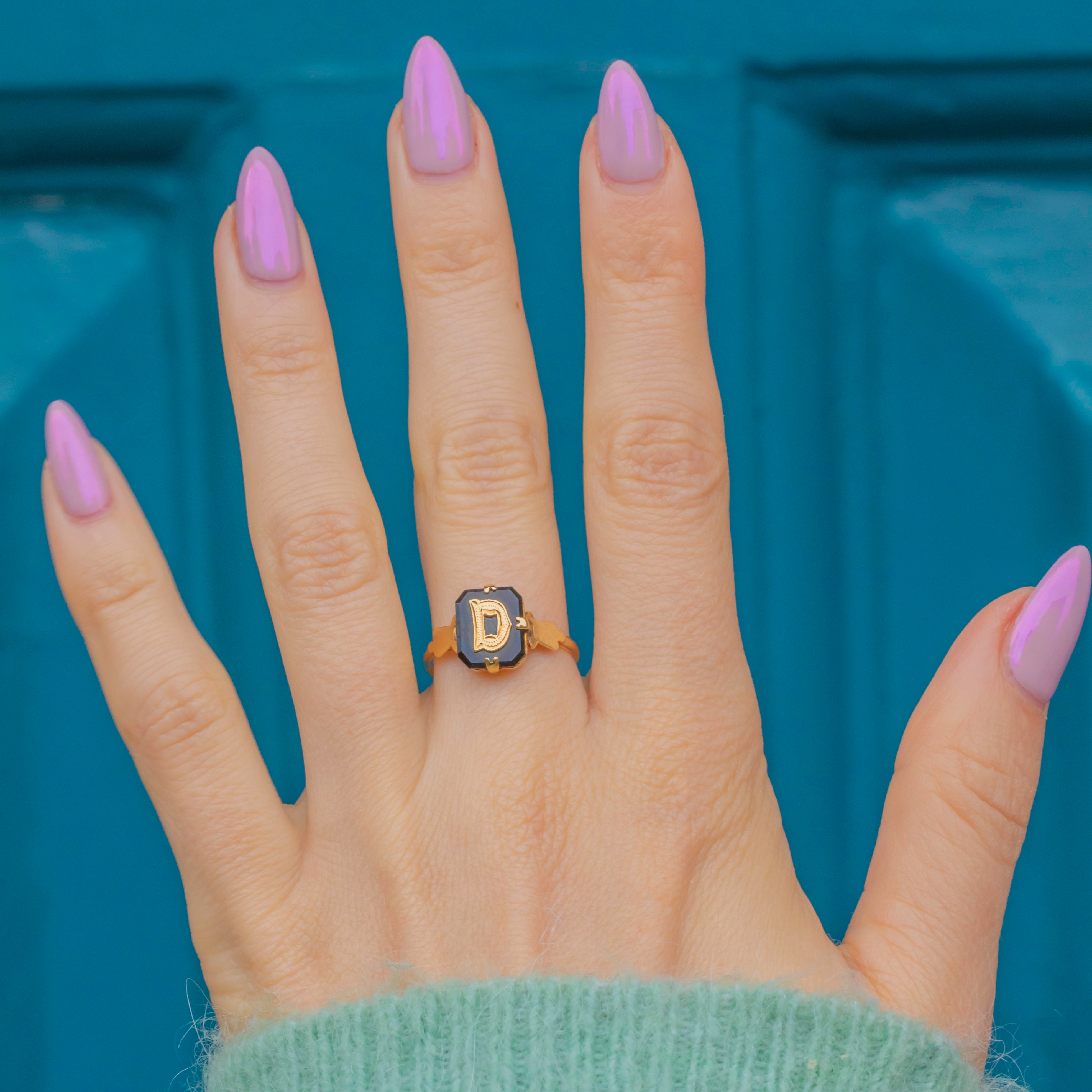 Victorian 18ct ゴールド「D」イニシャル オニキス モーニングリング