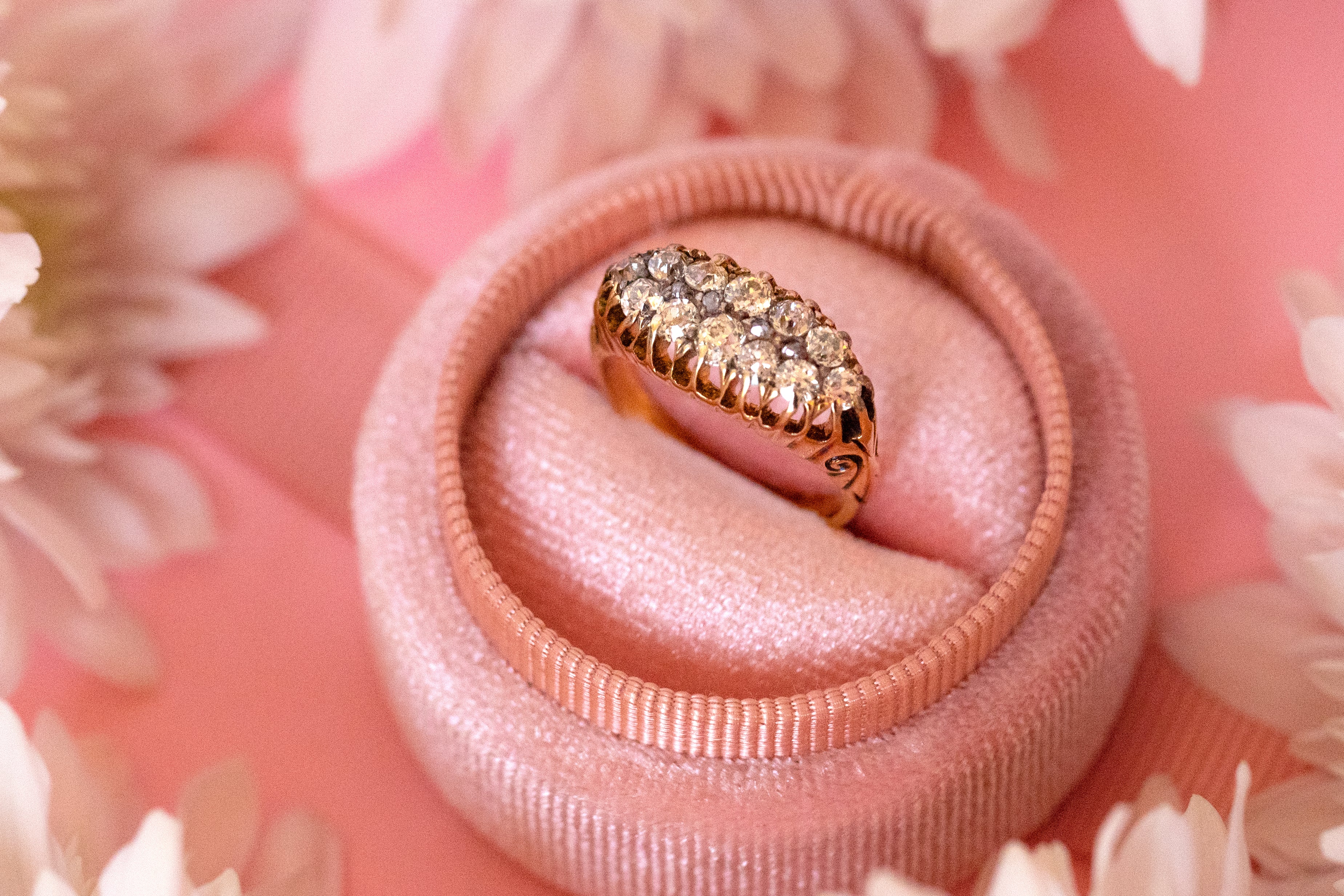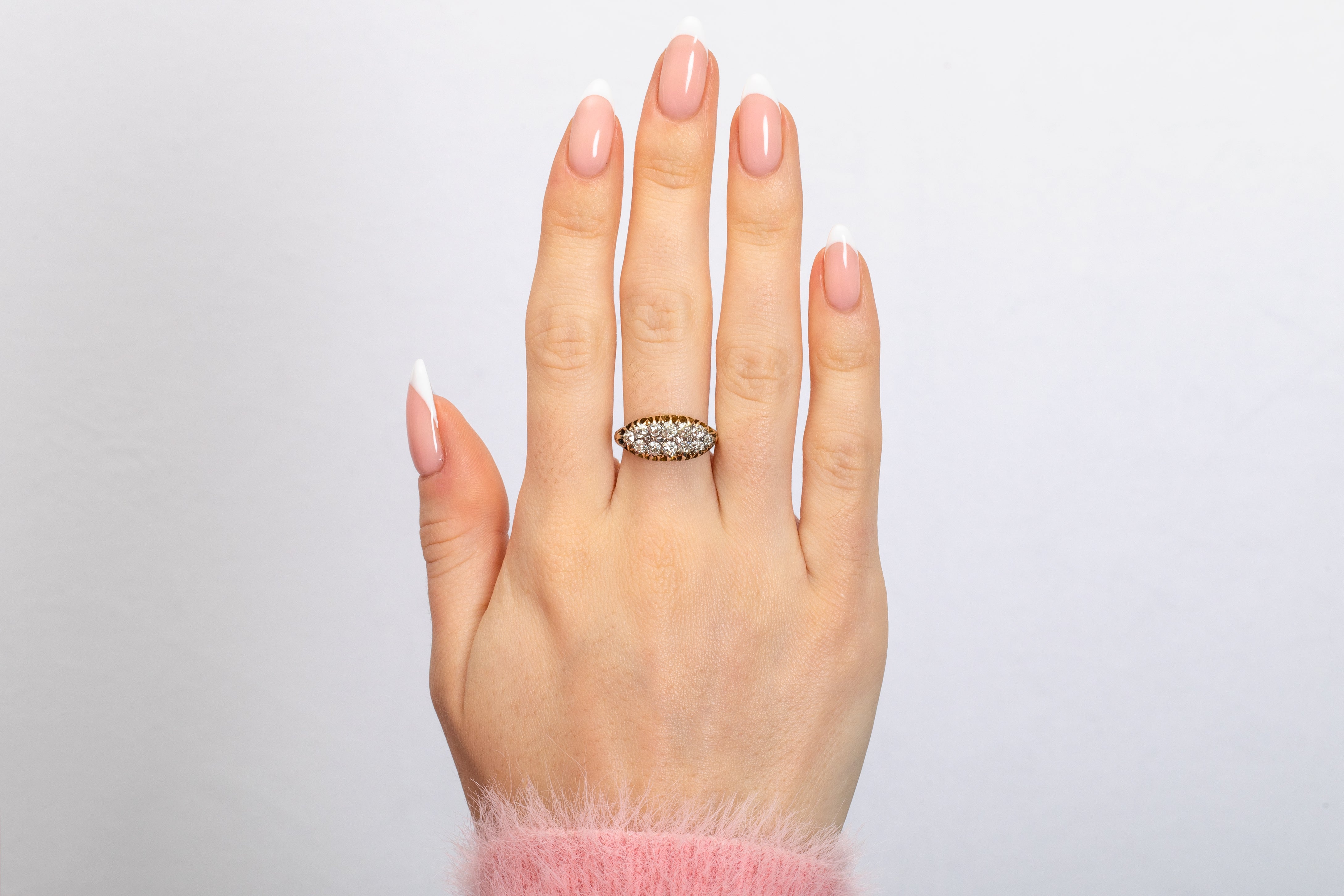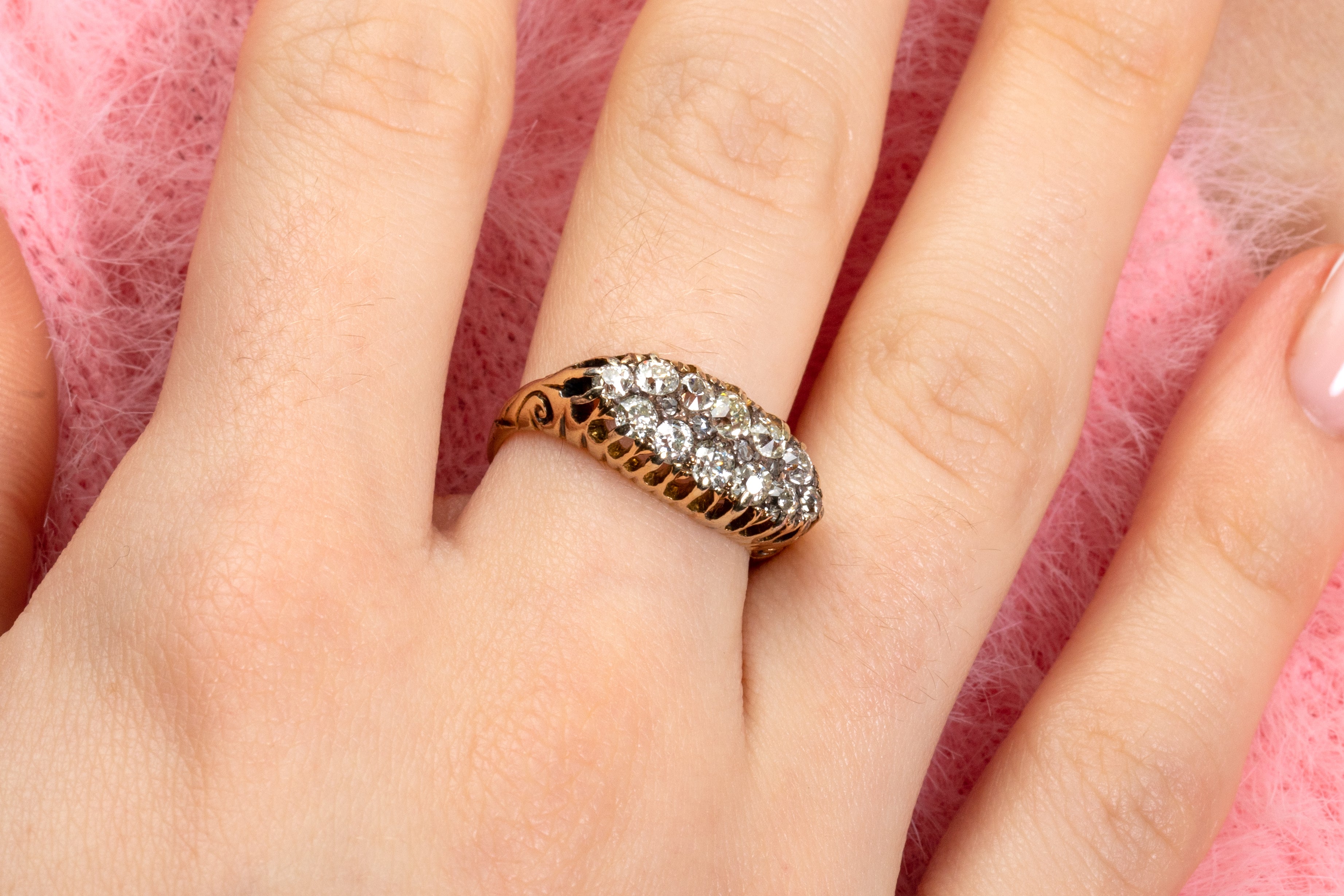 ヴィクトリアン 18ct ゴールド ダイヤモンド ダブルロウ ボートリング、0.75ct
