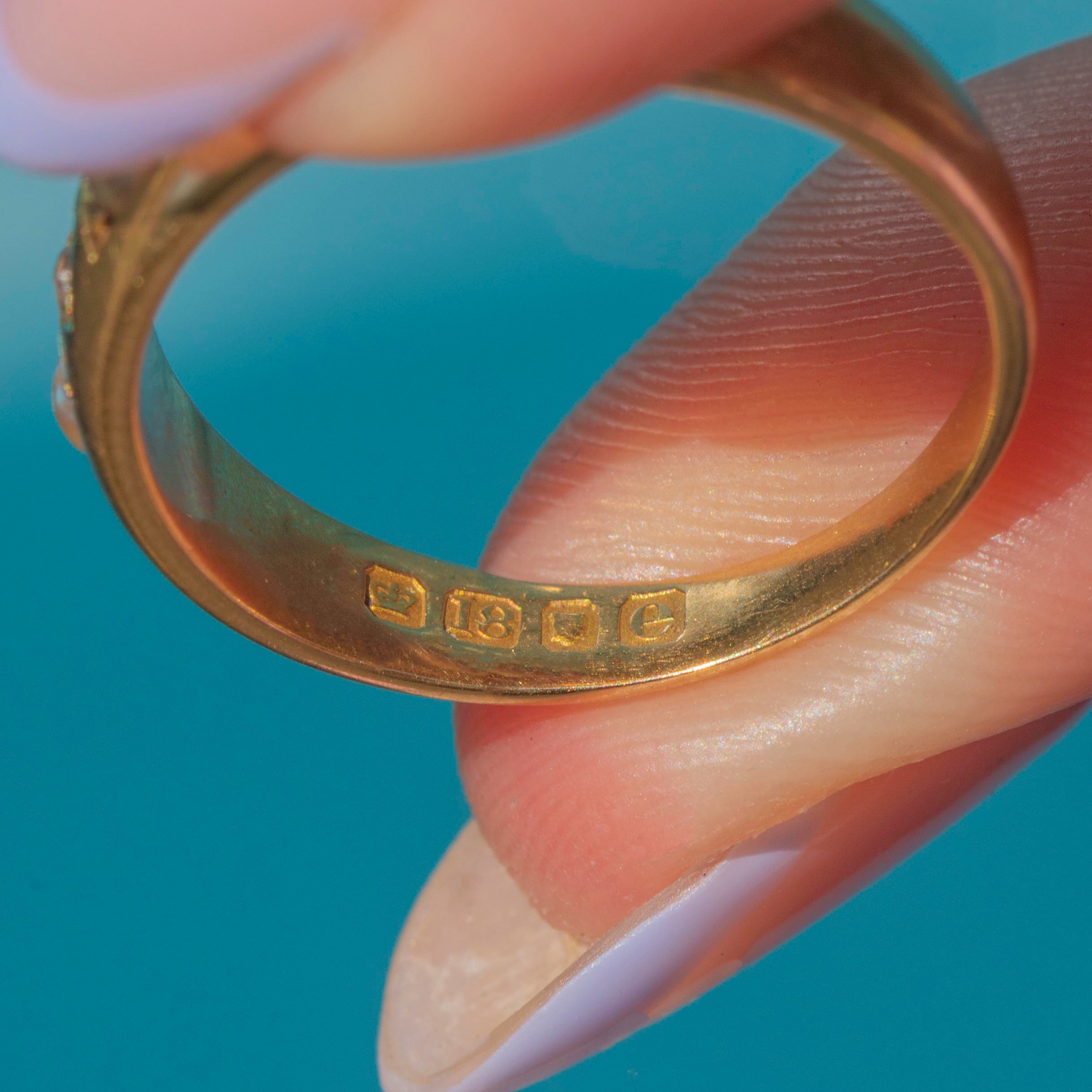 HALLMARKS: Crown, 18, London Leopard's Head, Date letter e for the year 1900.