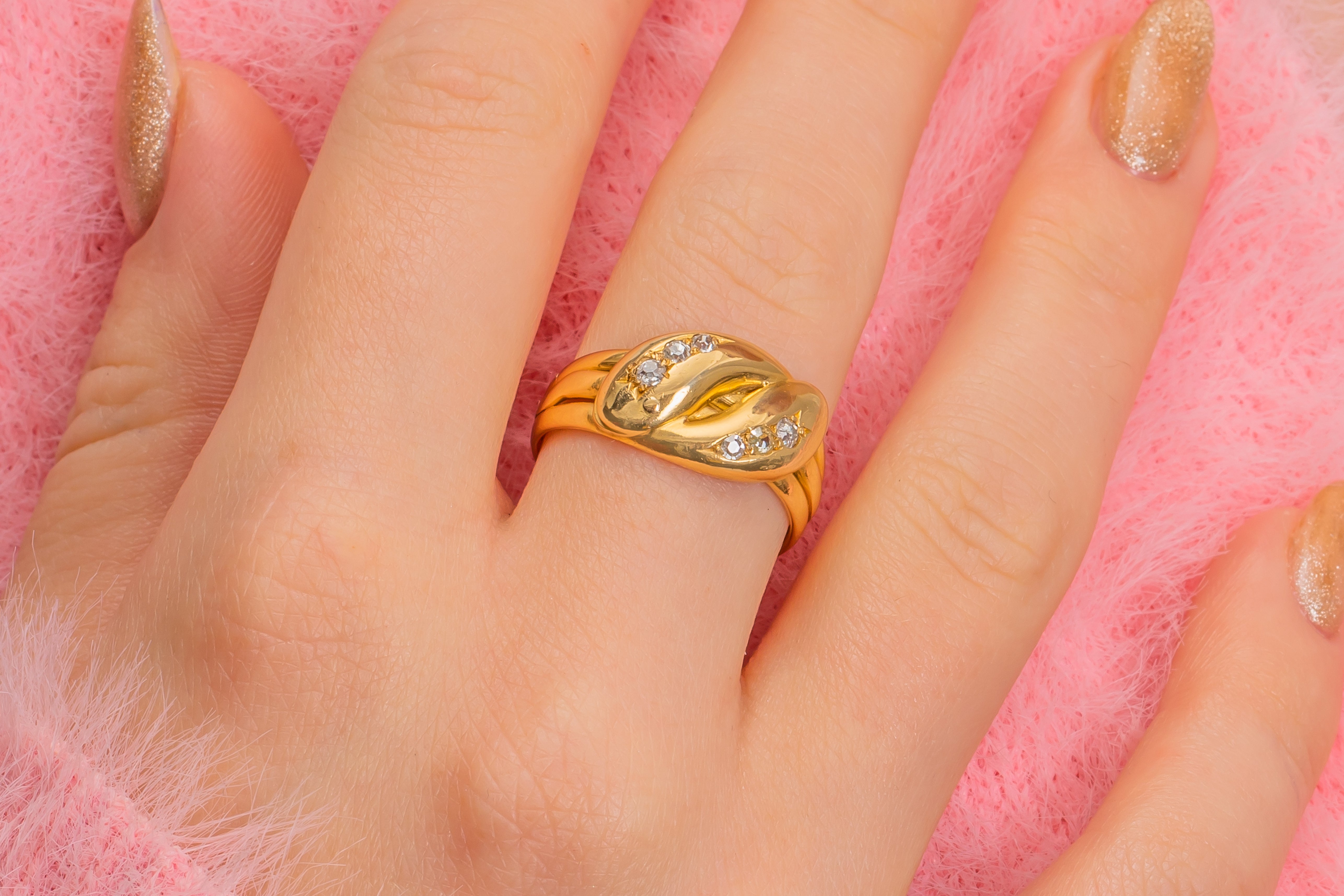 ヴィクトリアン 18ct ゴールド ダイヤモンド スネークリング