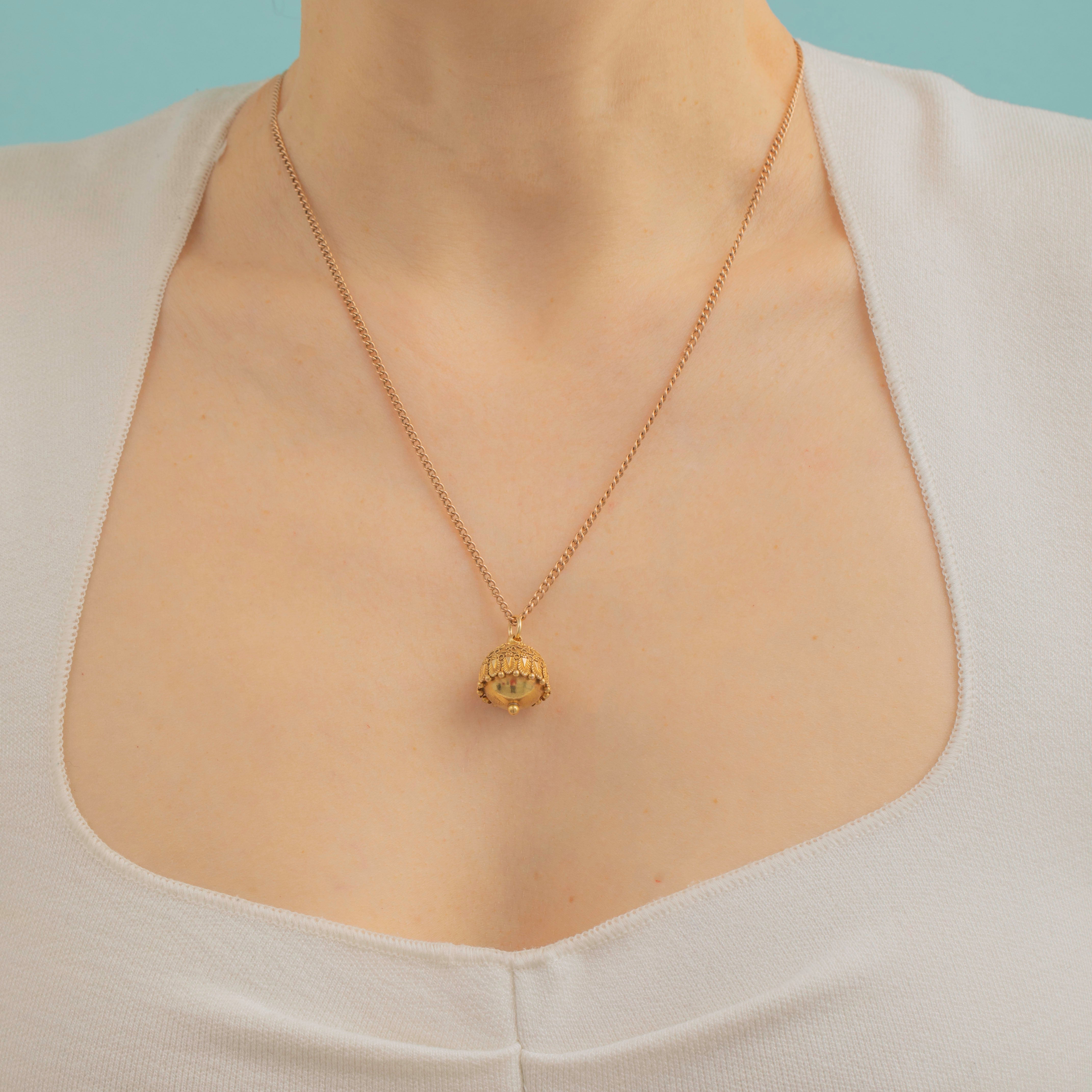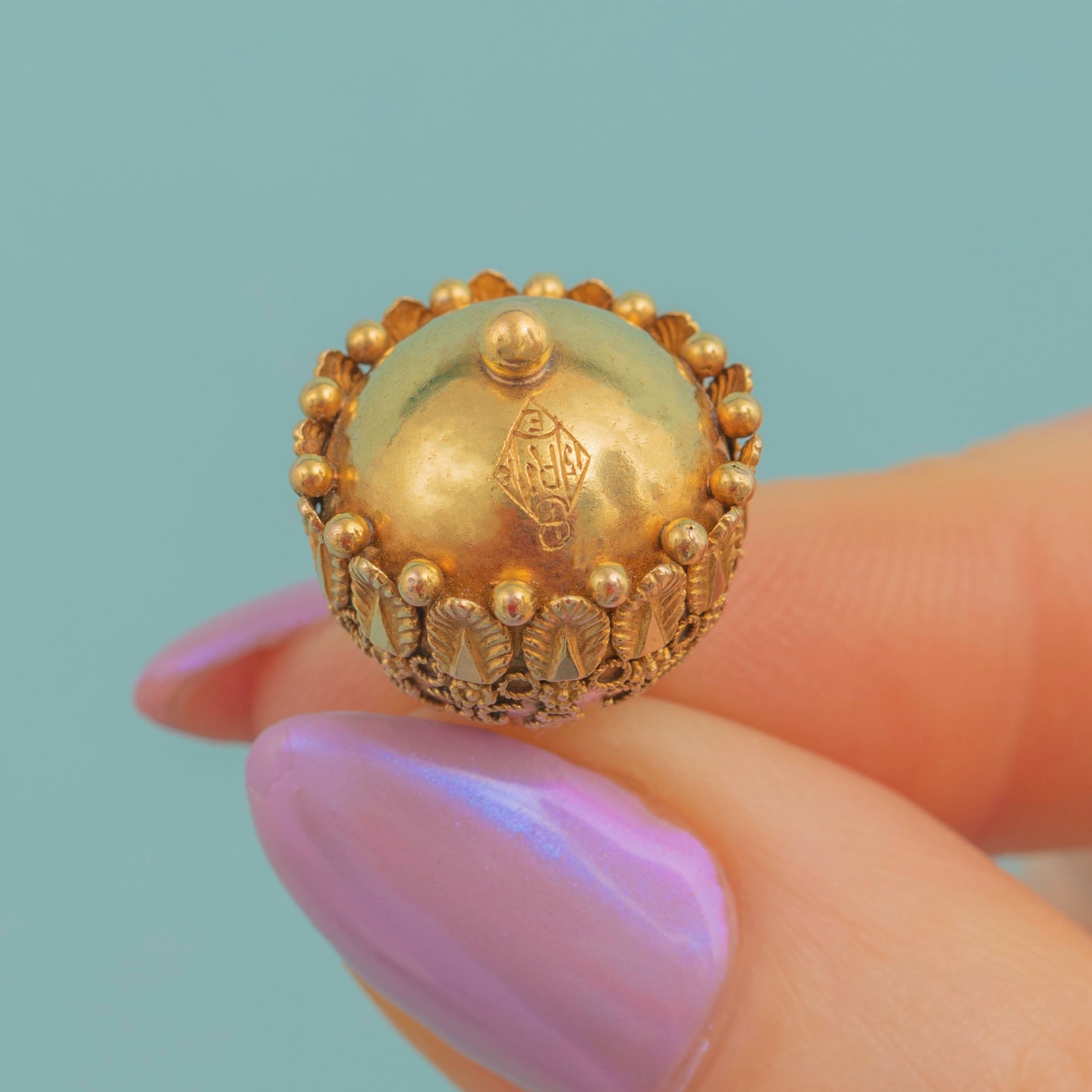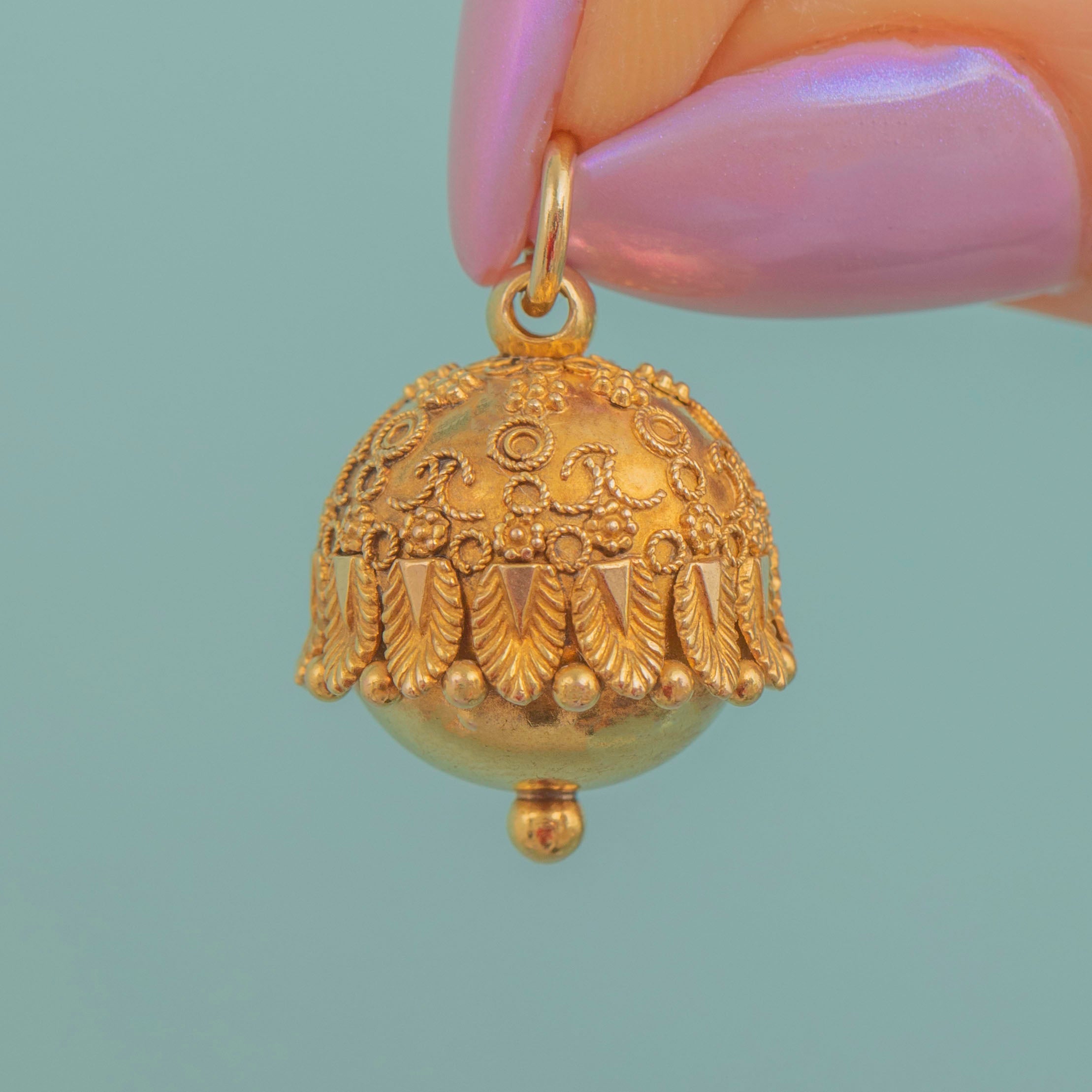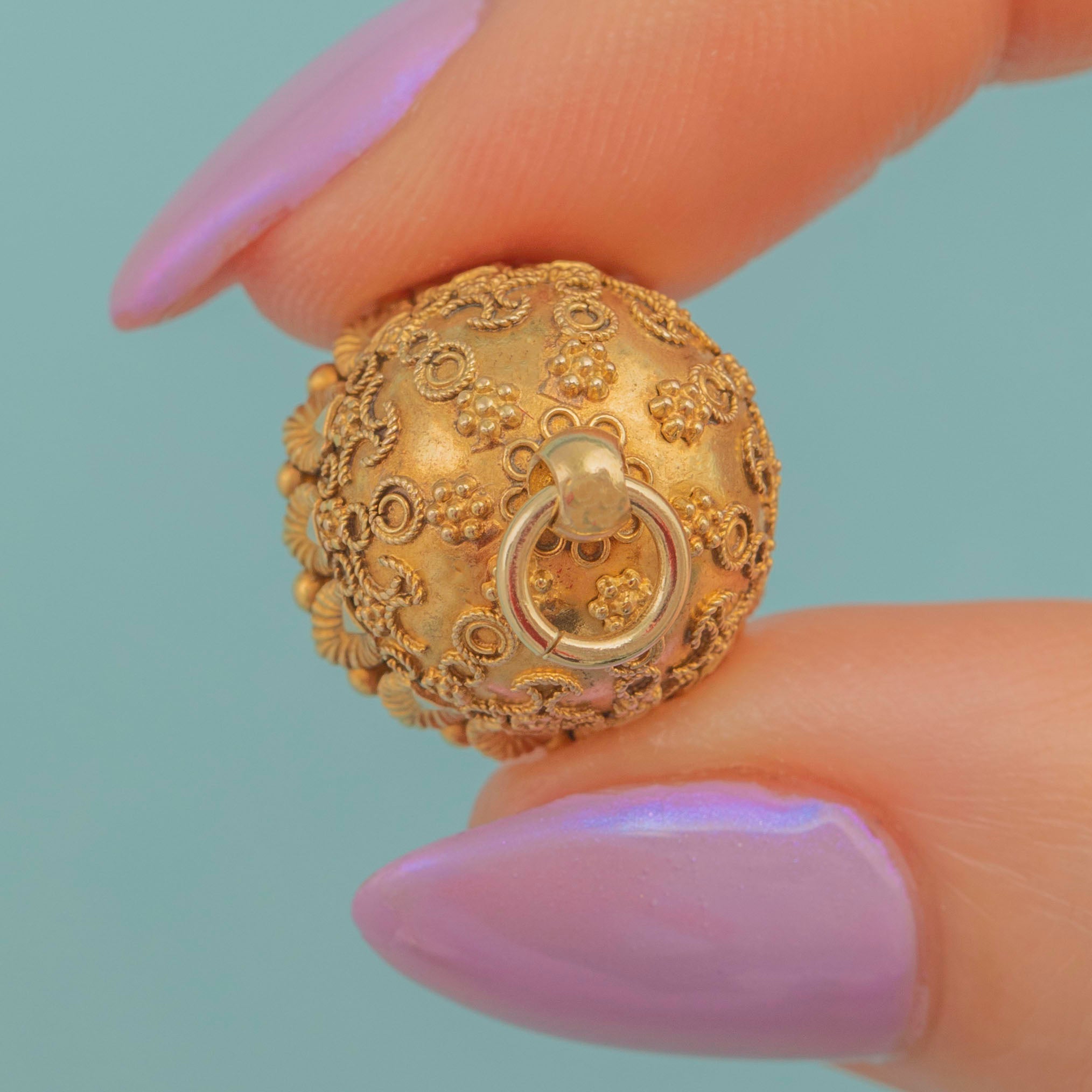 This gorgeous Victorian 18ct Gold fancy cannetille orb pendant will quickly become your latest obsession! Finely crafted from luscious 18ct Gold and covered with ornate cannetille wirework, floral accents and beaded details, this Victorian charm can be appreciated from every angle.