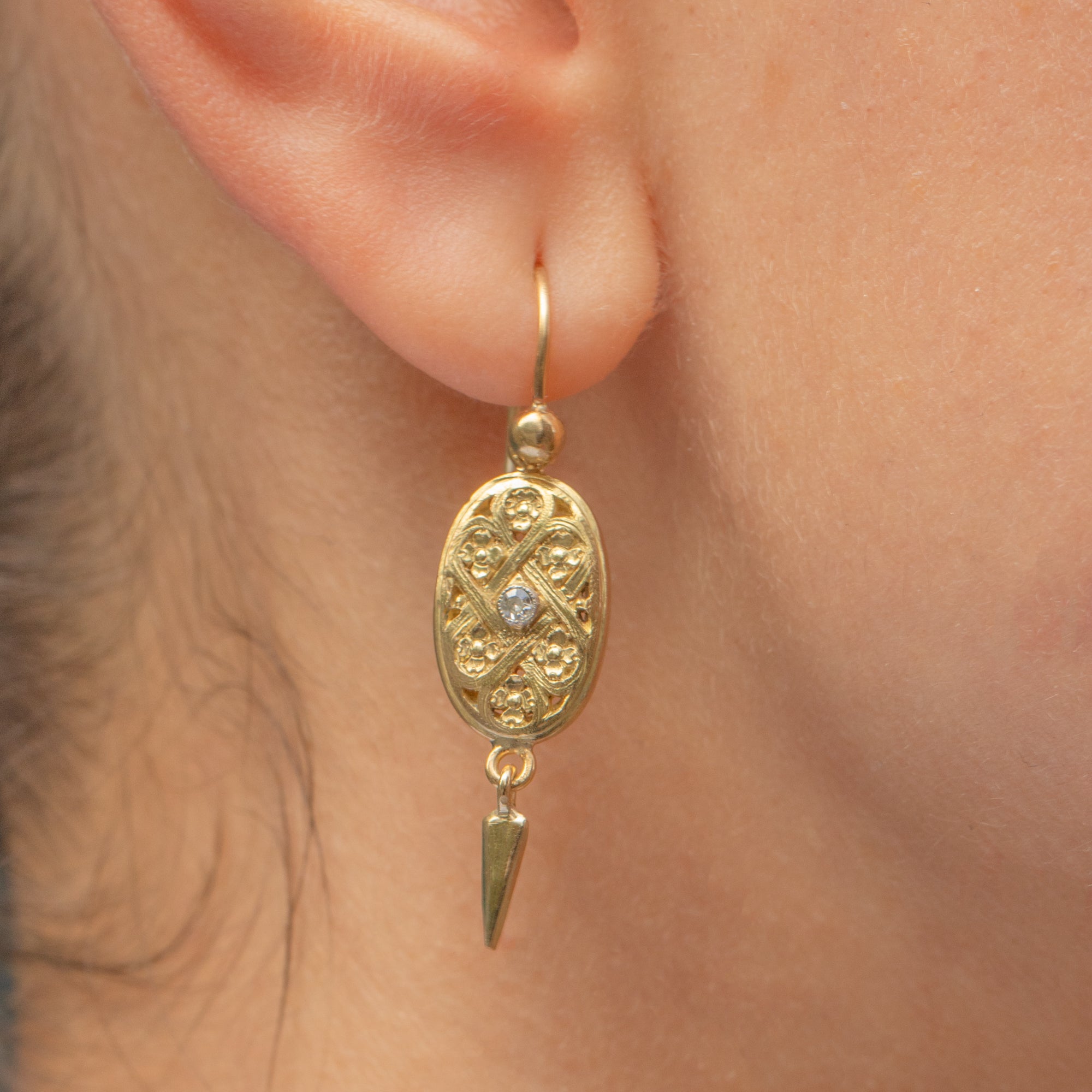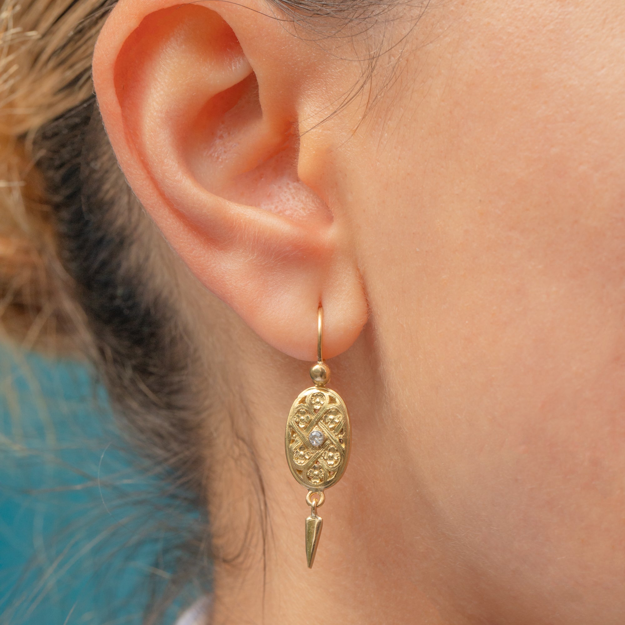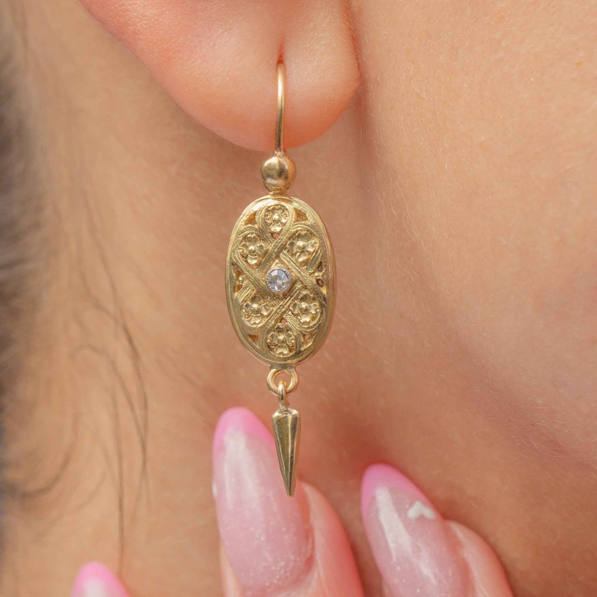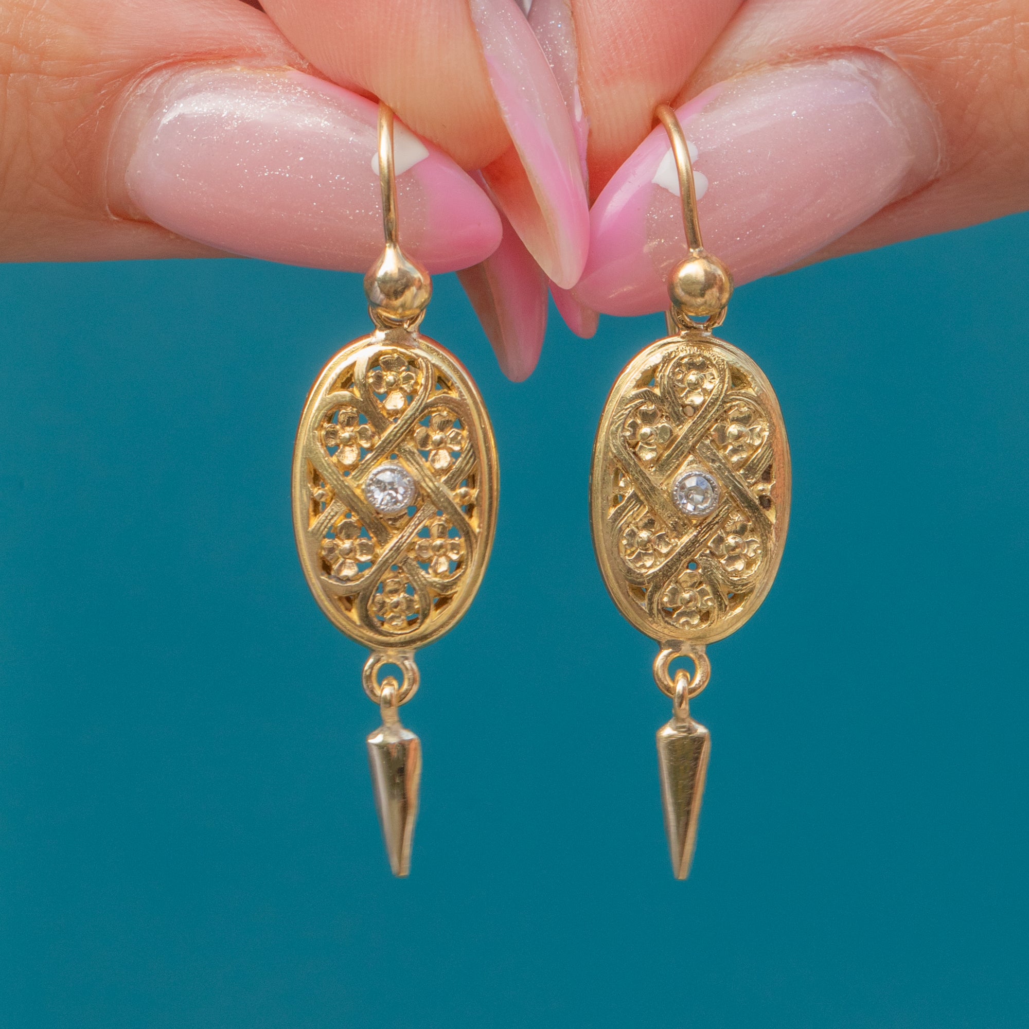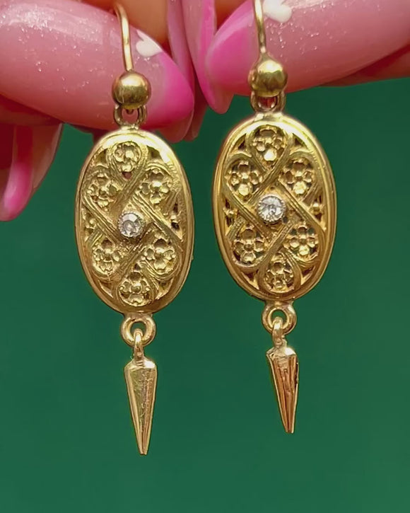 Victorian 18ct Gold Filigree Diamond Drop Earrings