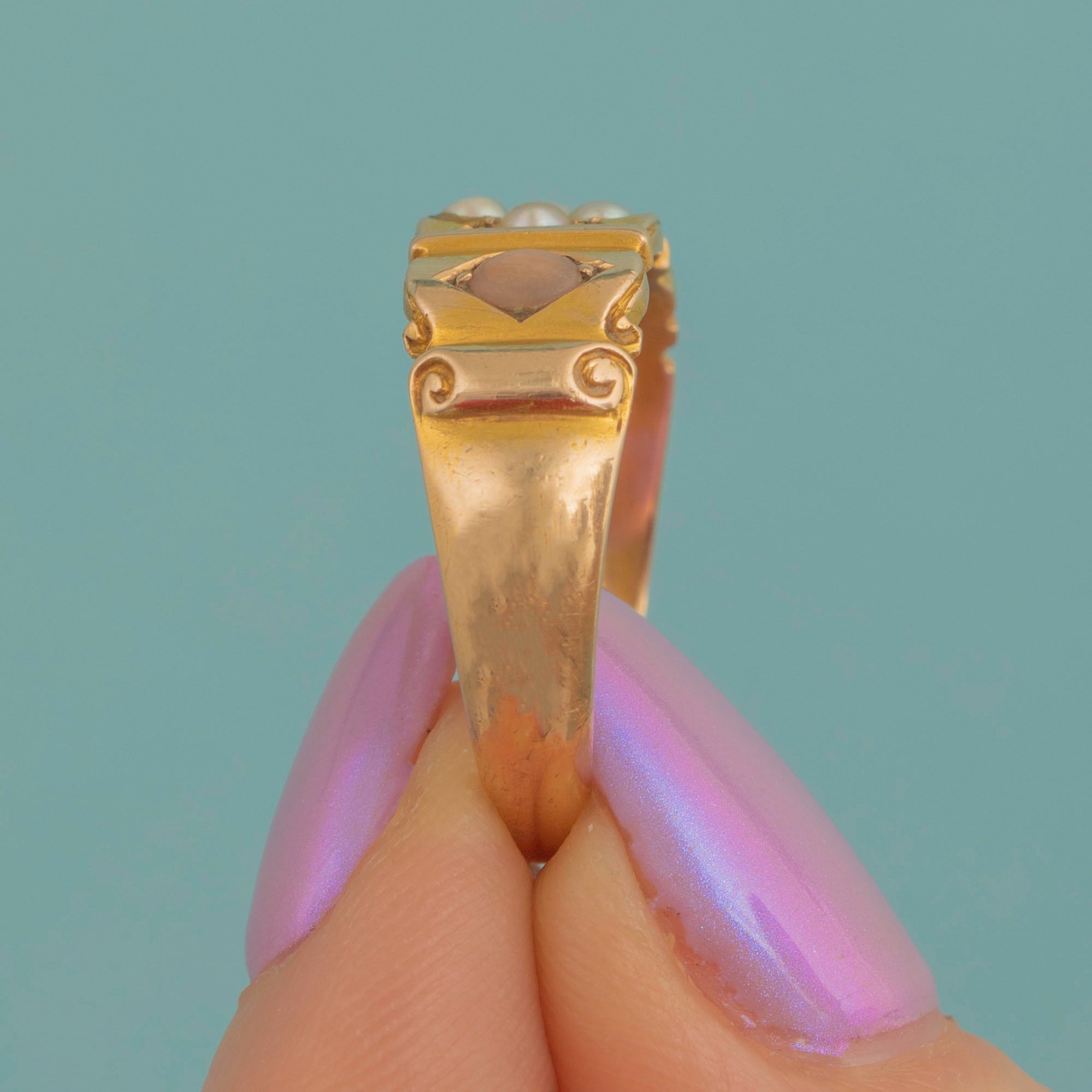 Victorian 18ct Gold Pearl Coral Gypsy Ring, c.1883