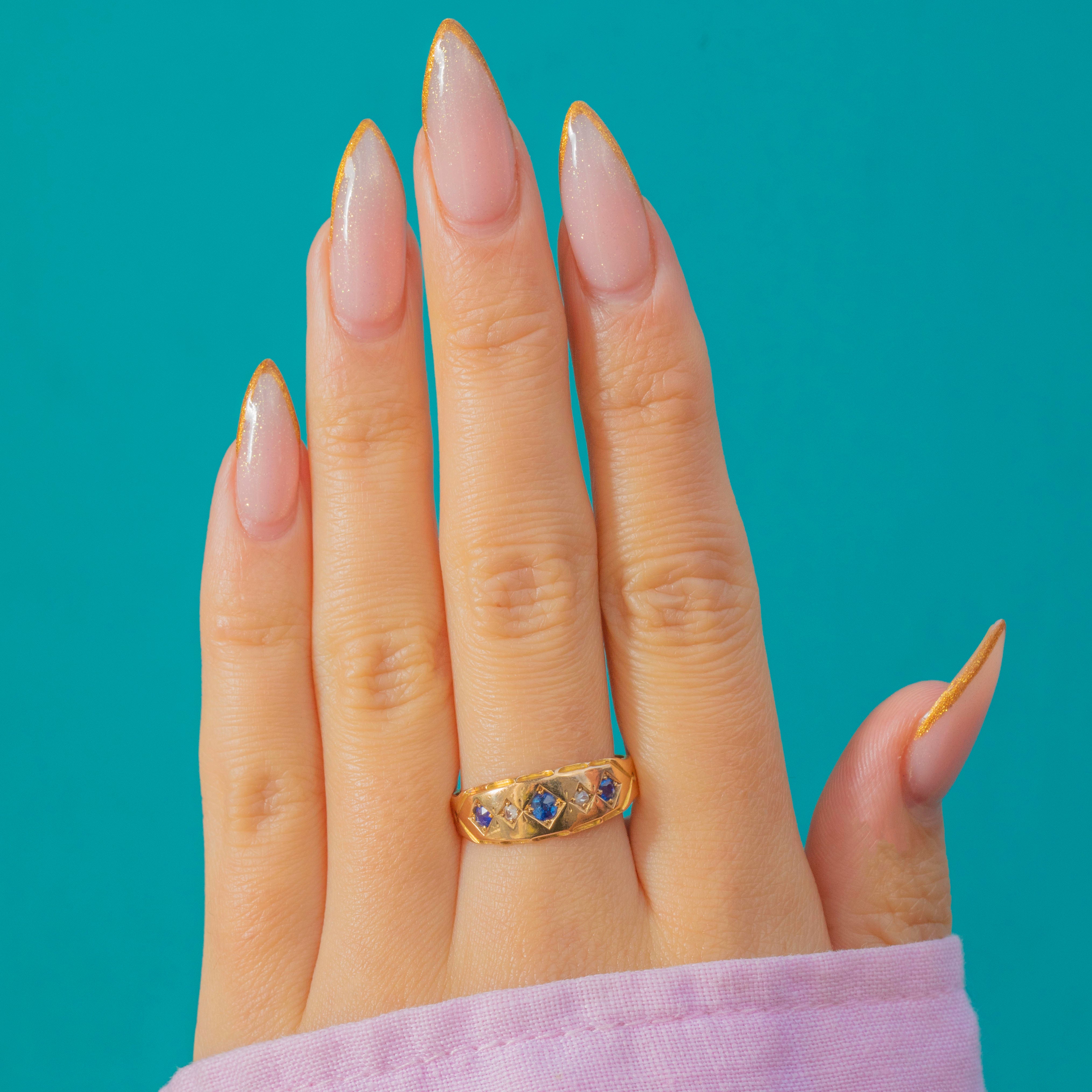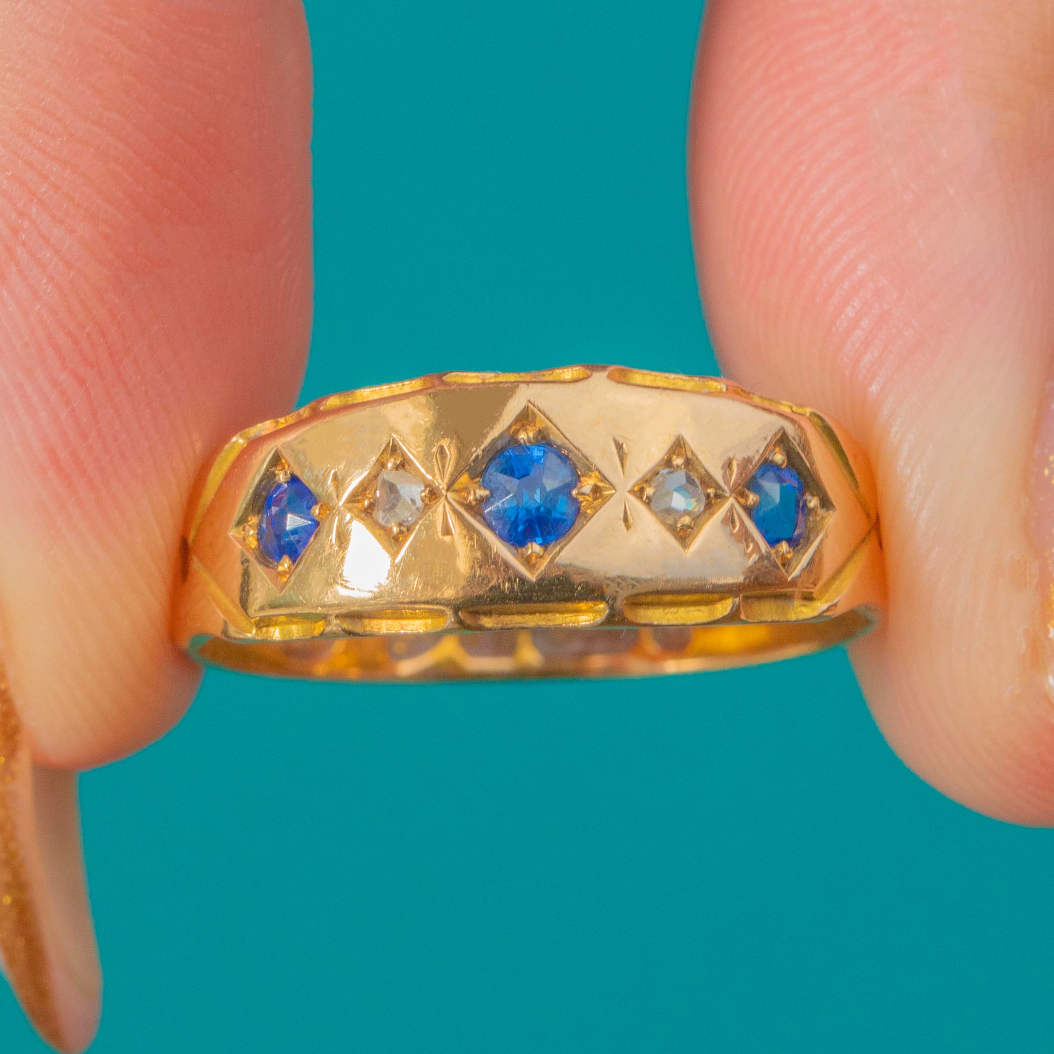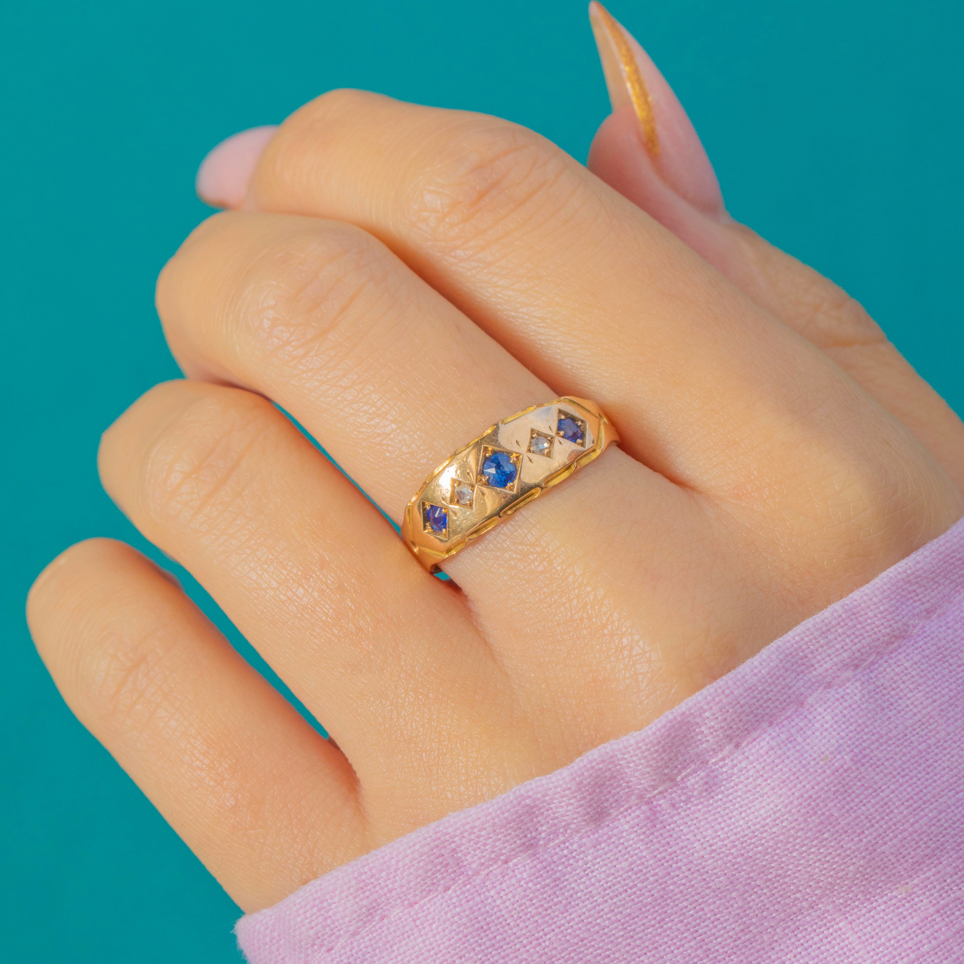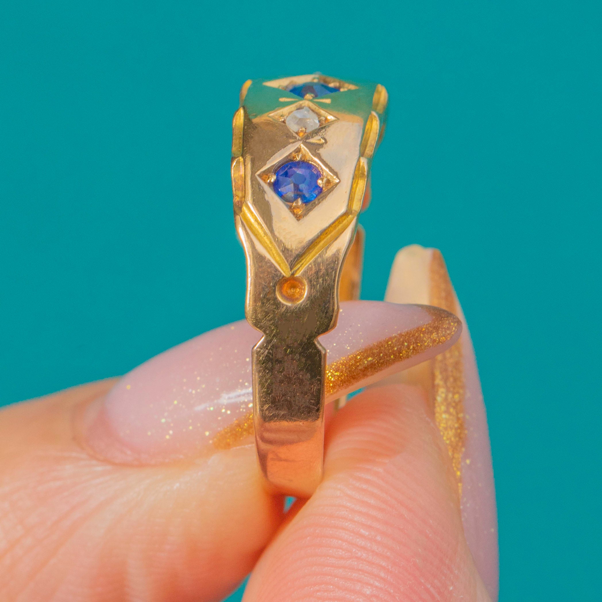 Victorian 18ctゴールド サファイア ダイヤモンド ジプシーリング