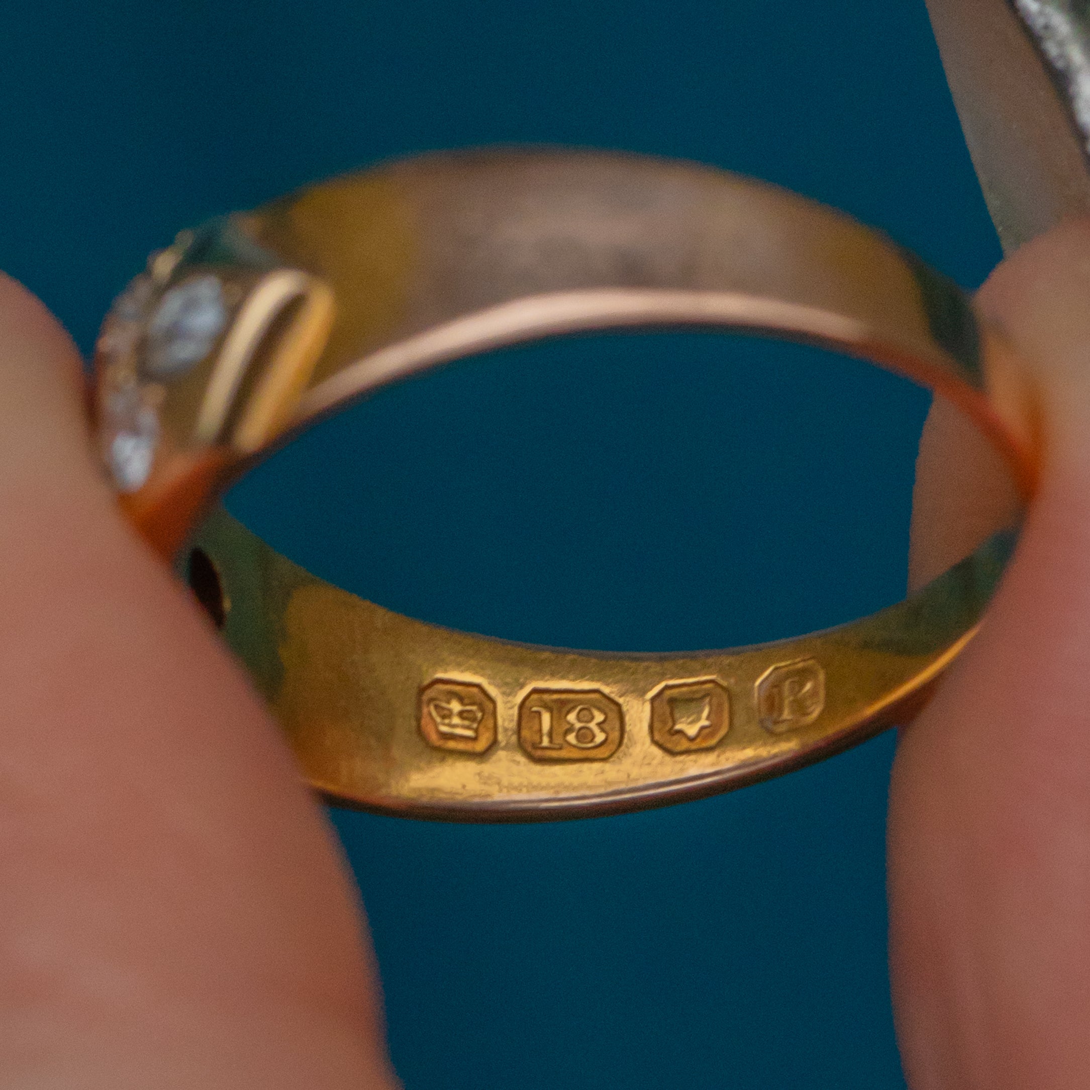 HALLMARKS: Crown, 18, London Leopard's Head, Date letter R for the year 1892.