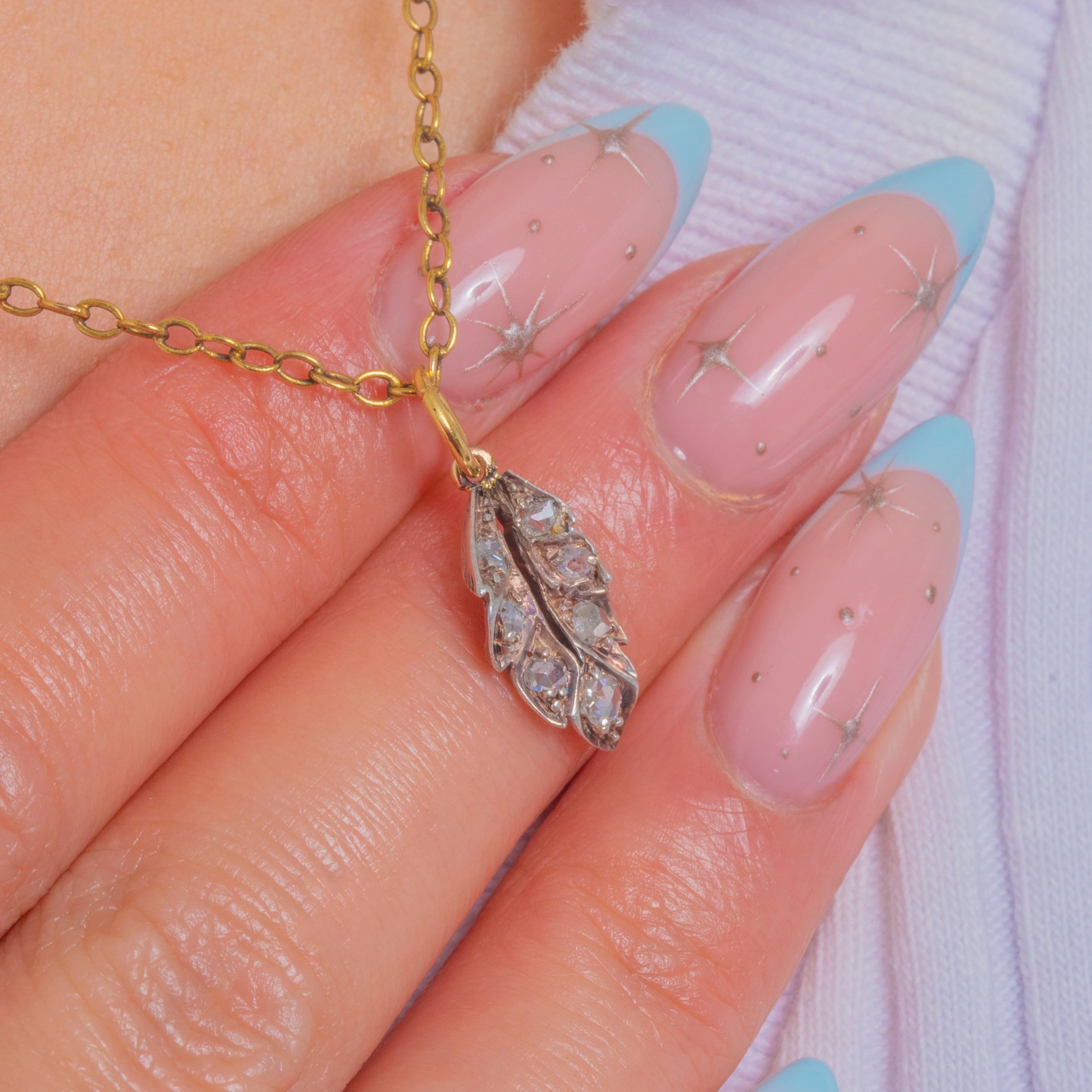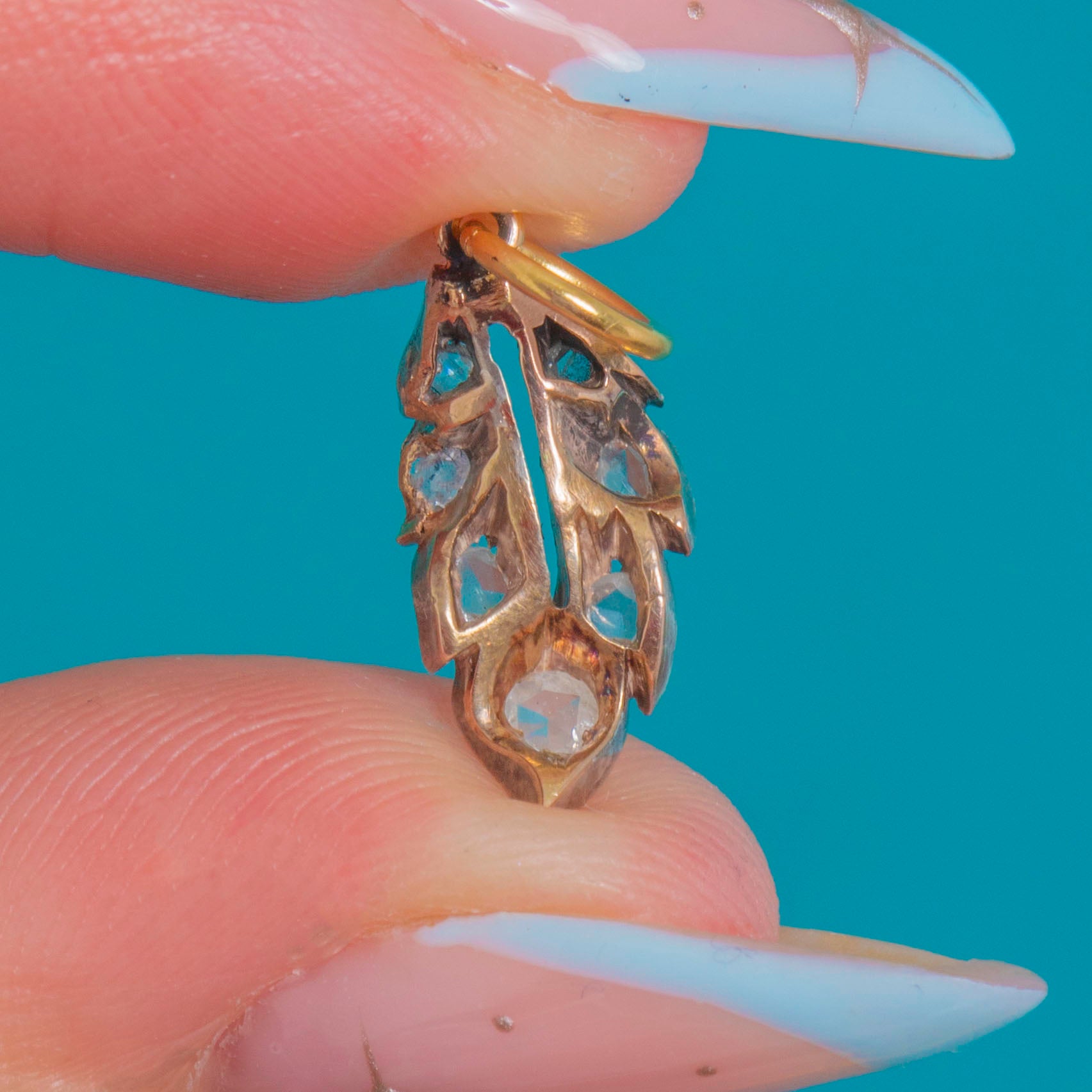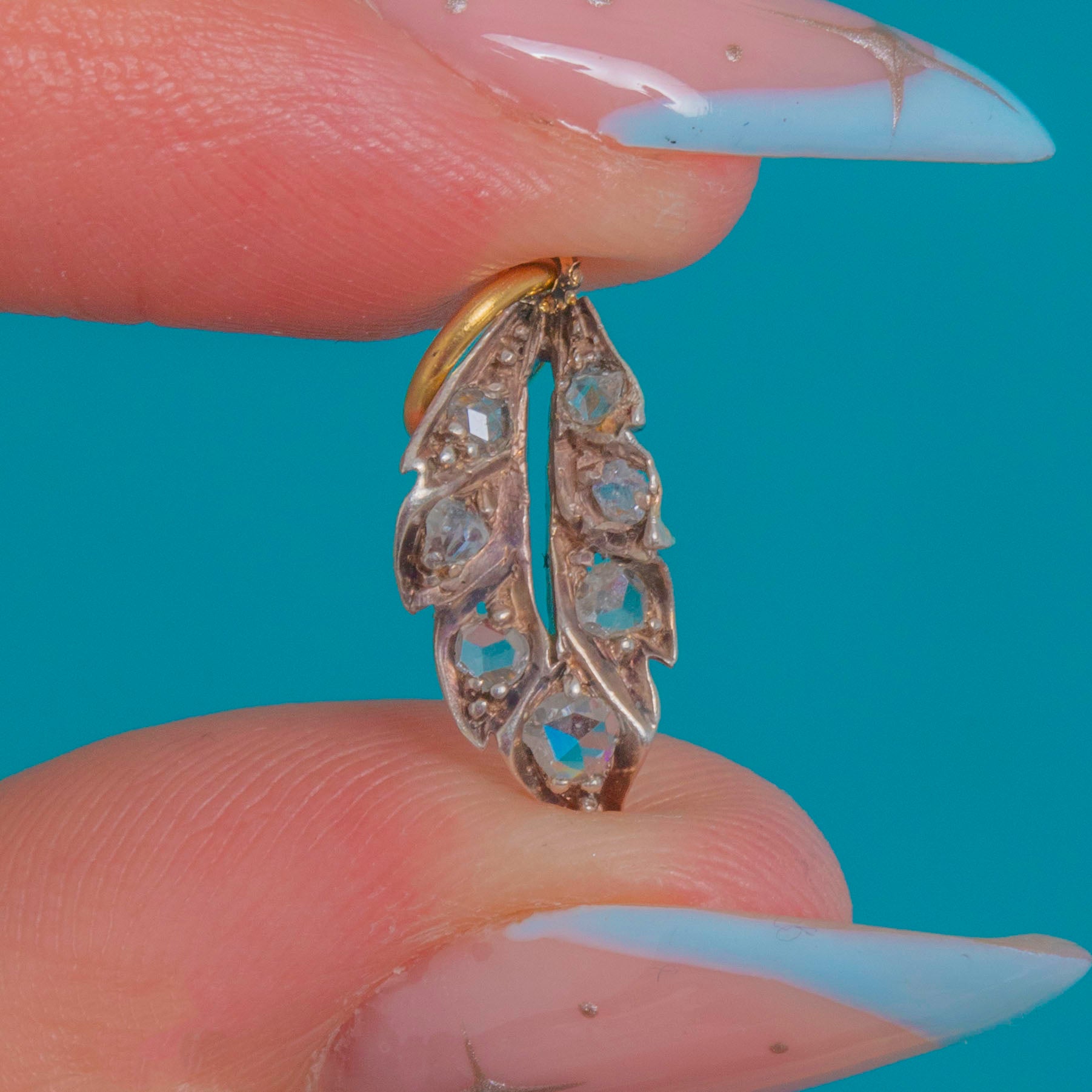 Victorian 18ct Gold & Silver Rose-Cut Diamond Leaf Charm
