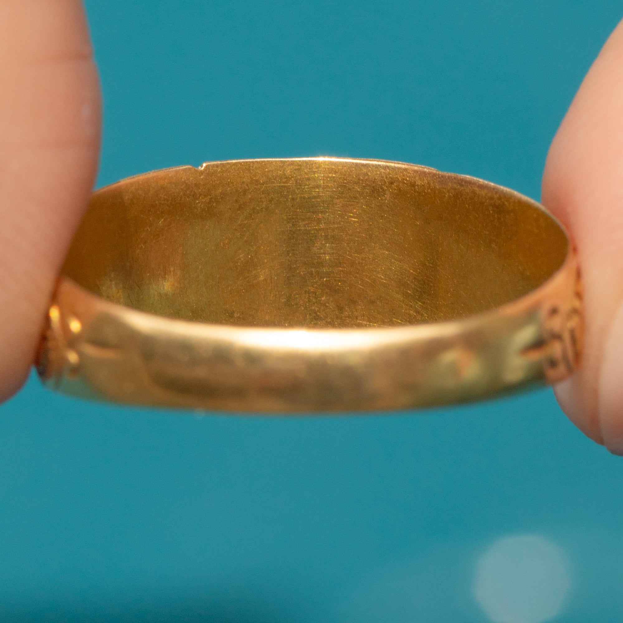 EXCELLENT. We are pleased to present this Victorian 18ct Gold Turquoise Pearl engraved ring in excellent condition! The gemstones are securely set and free from any signs of wear. The Gold is brightly saturated throughout and the engraved details have remained crisp, with a full set of hallmarks fully legible on the inside.