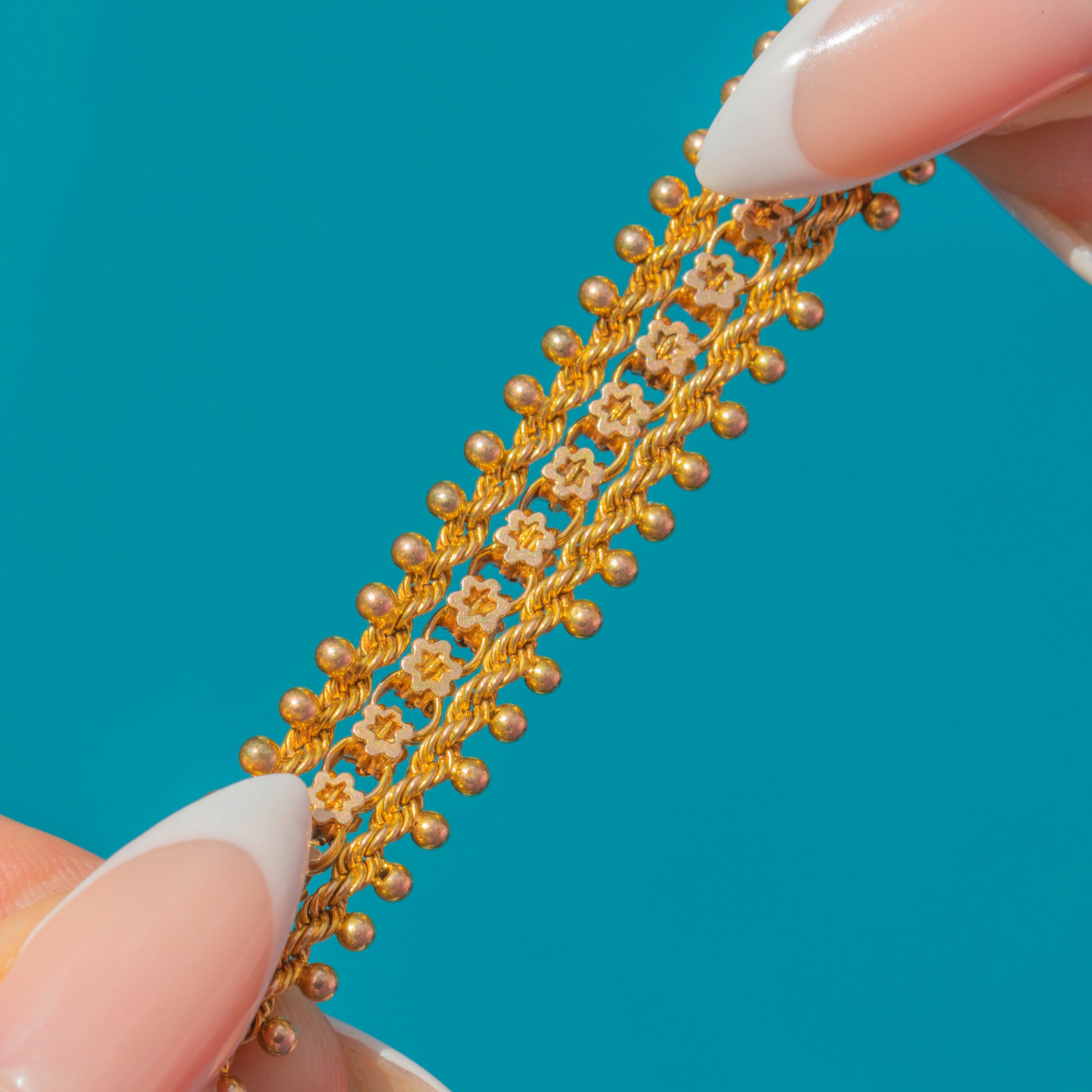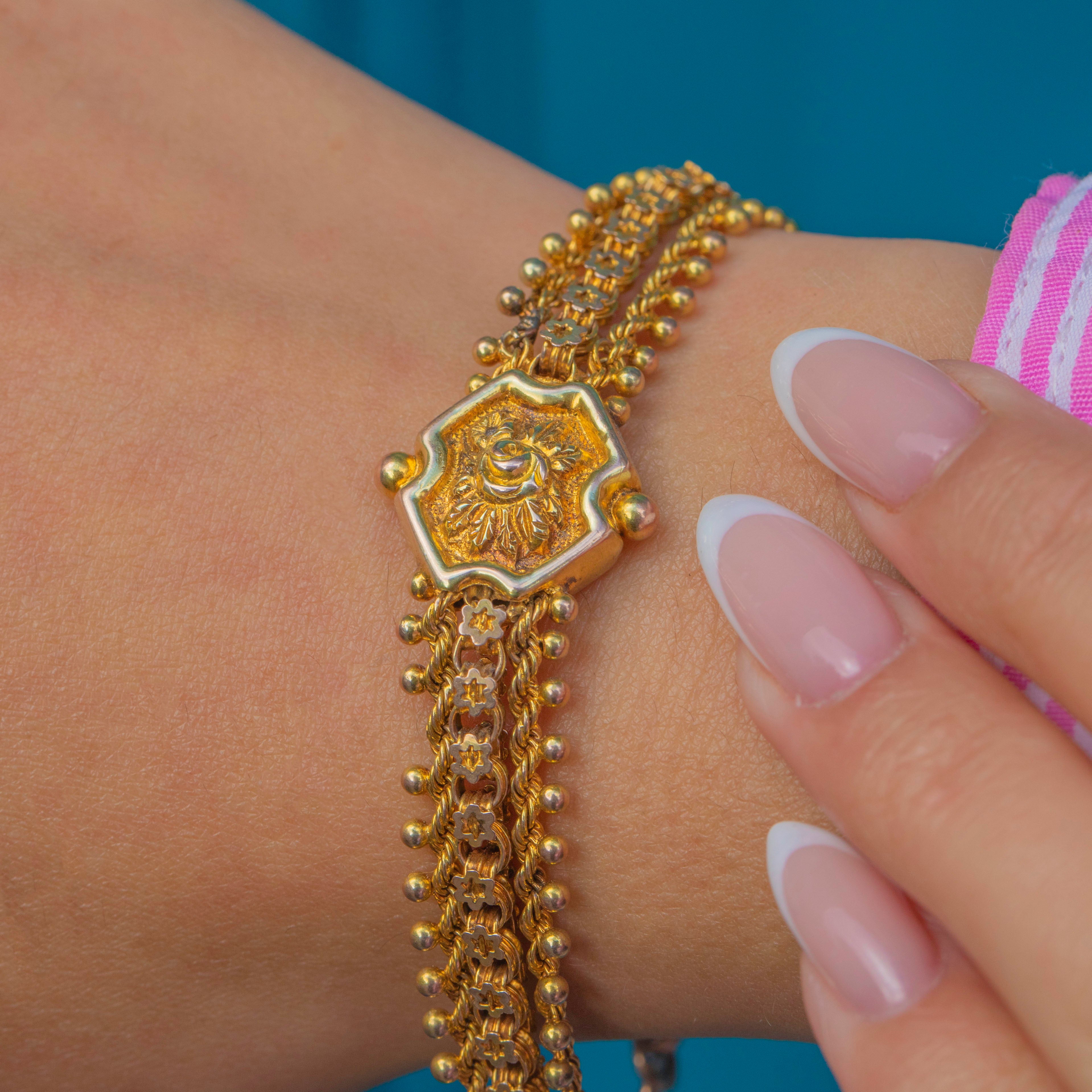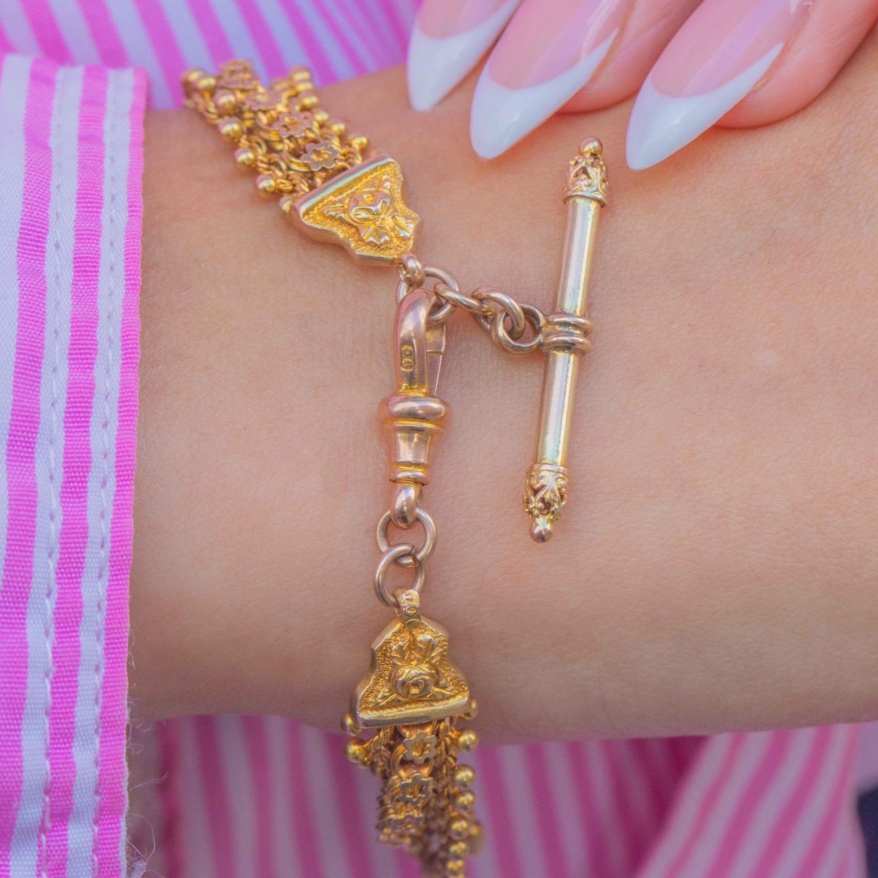 Pieces like this were once worn as watch chains or decorative accessories, and today they make stunning statement bracelets with historic appeal. This Victorian bracelet is a wonderful example of 19th-century design that can be worn and enjoyed daily.