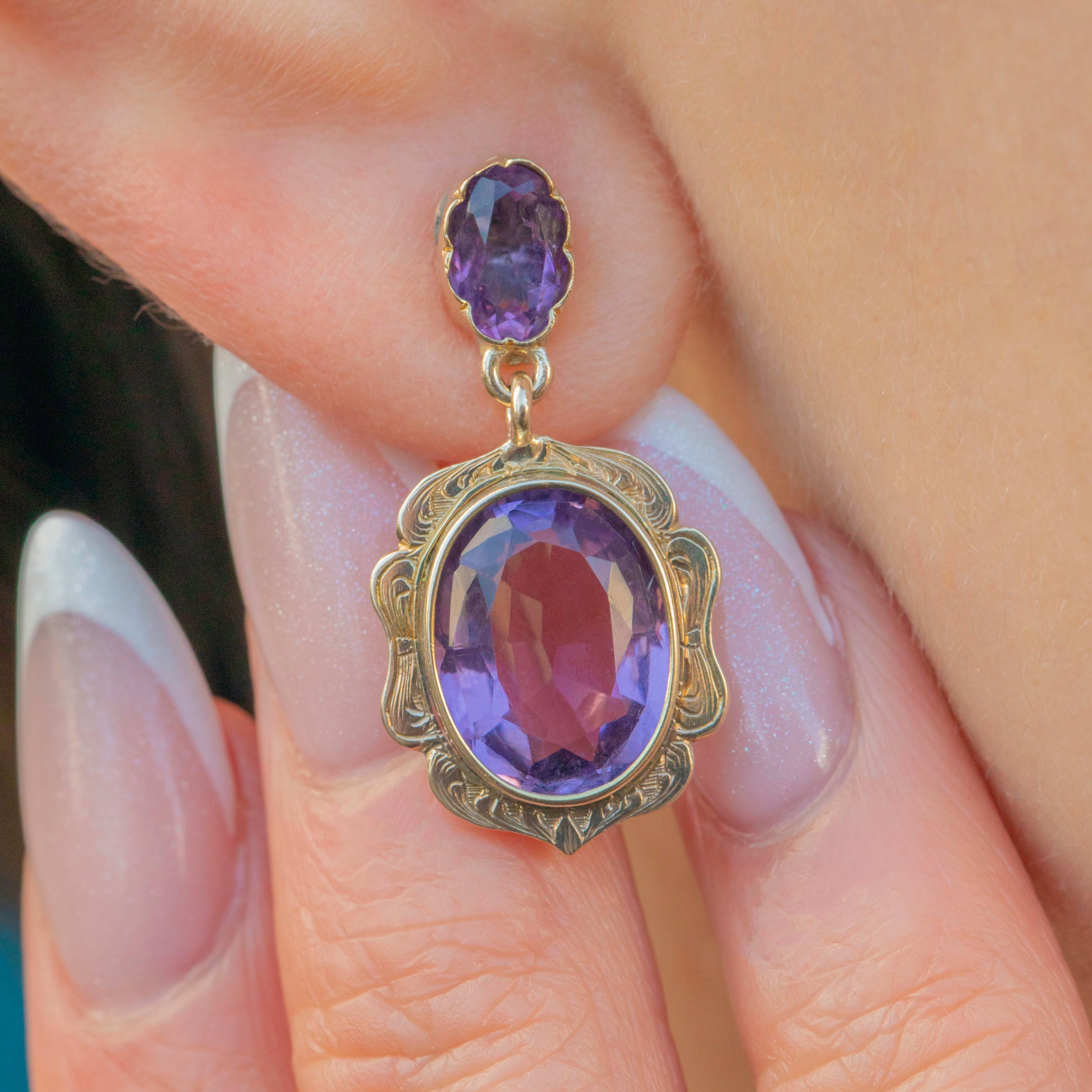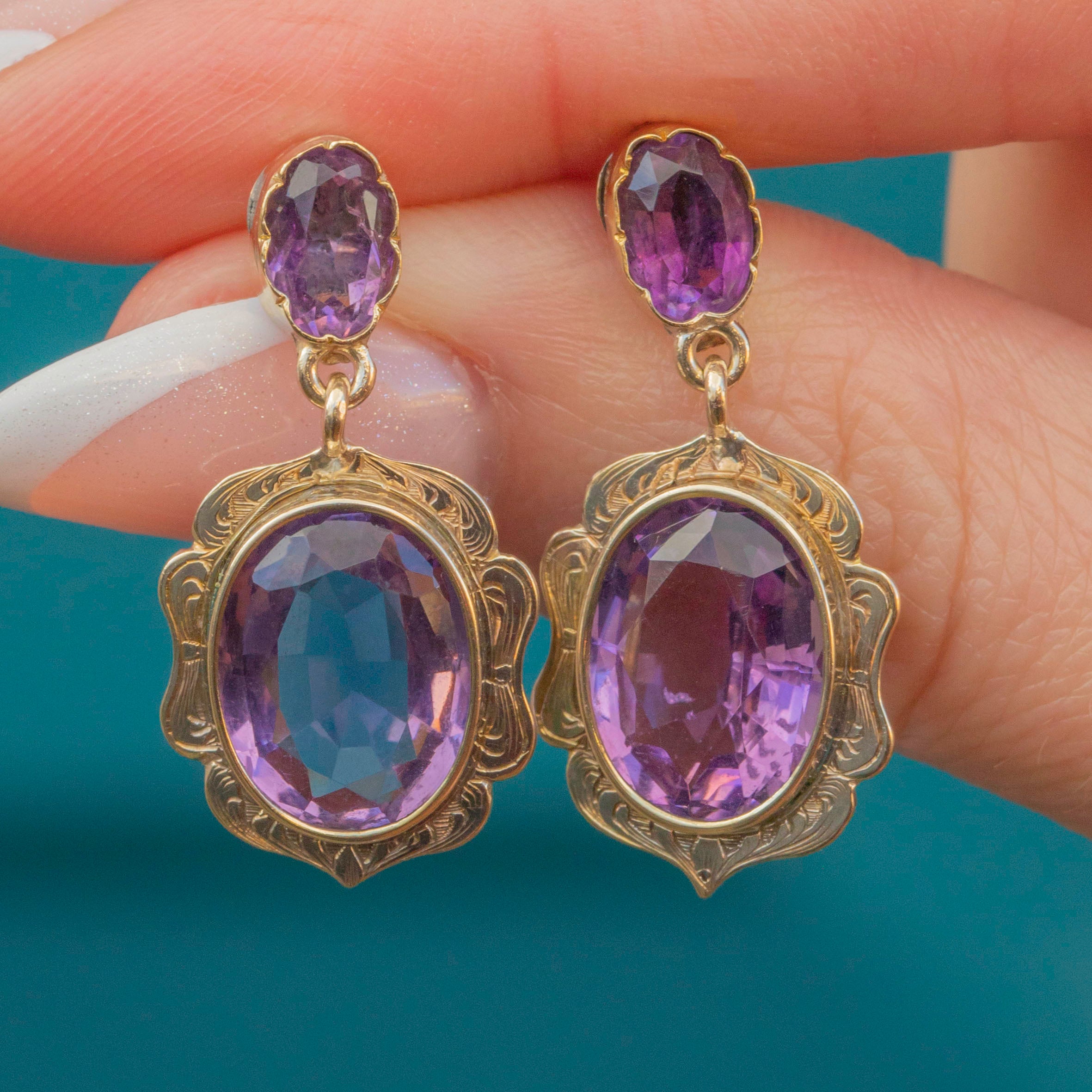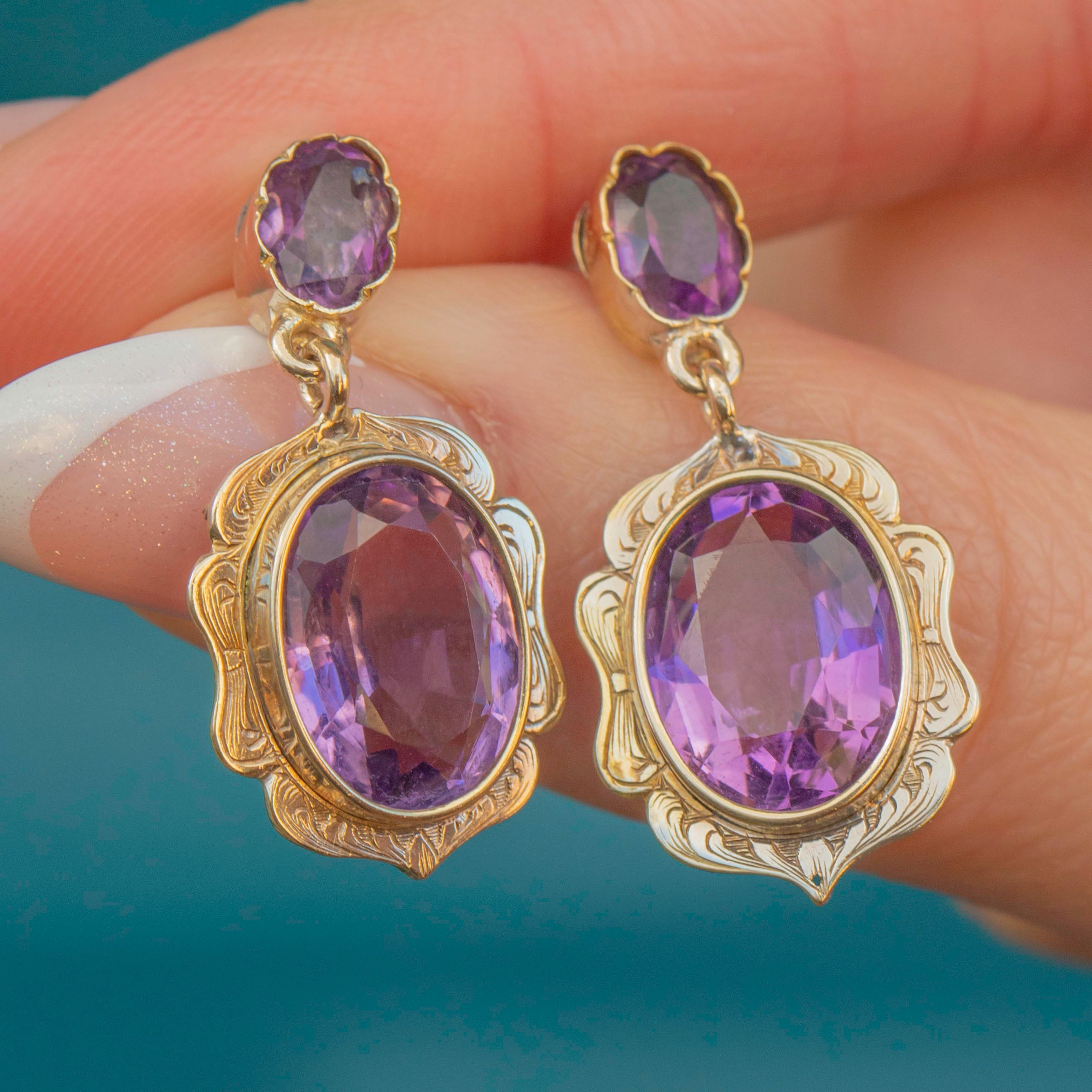These Victorian 9ct Gold Amethyst drop earrings are bursting with antique charm!