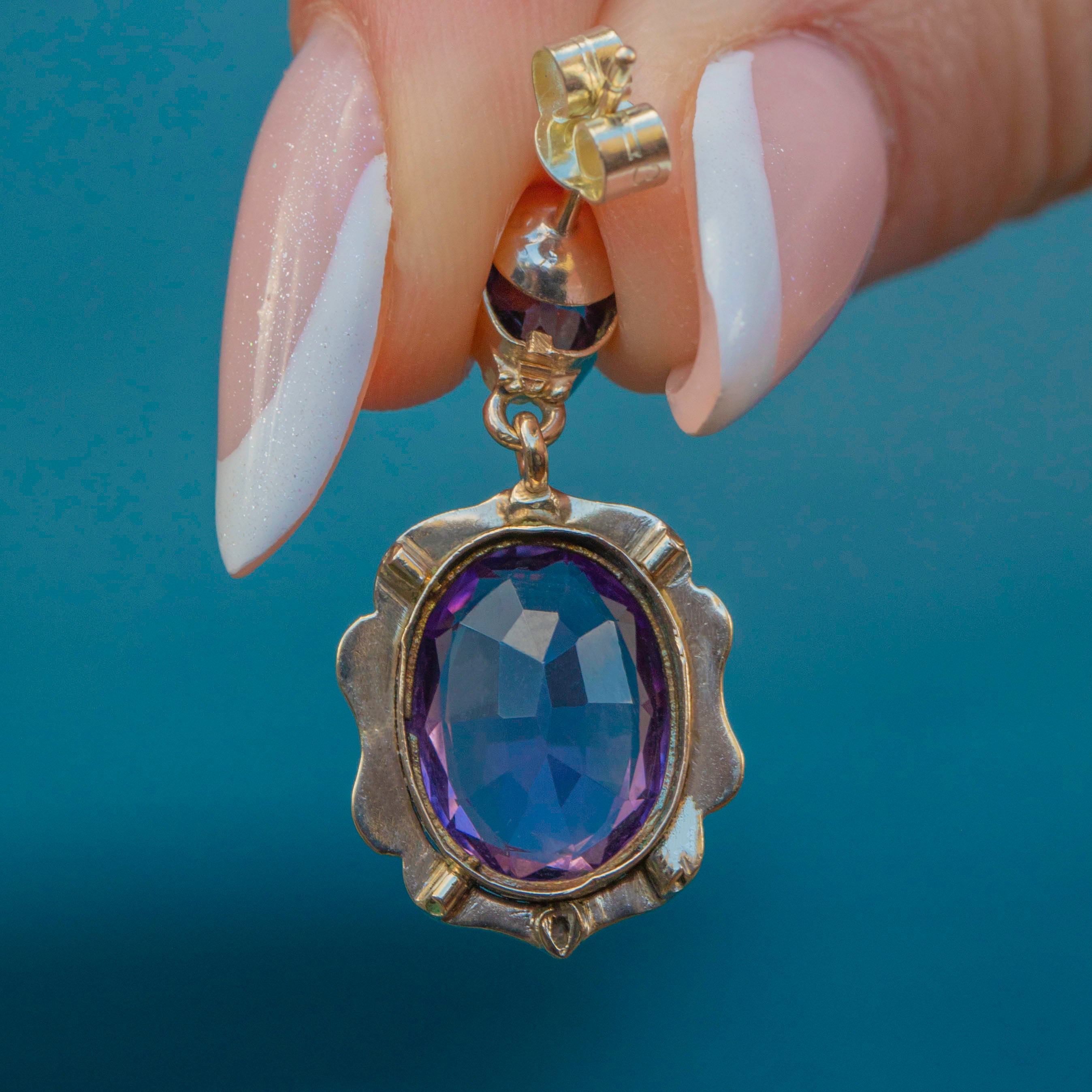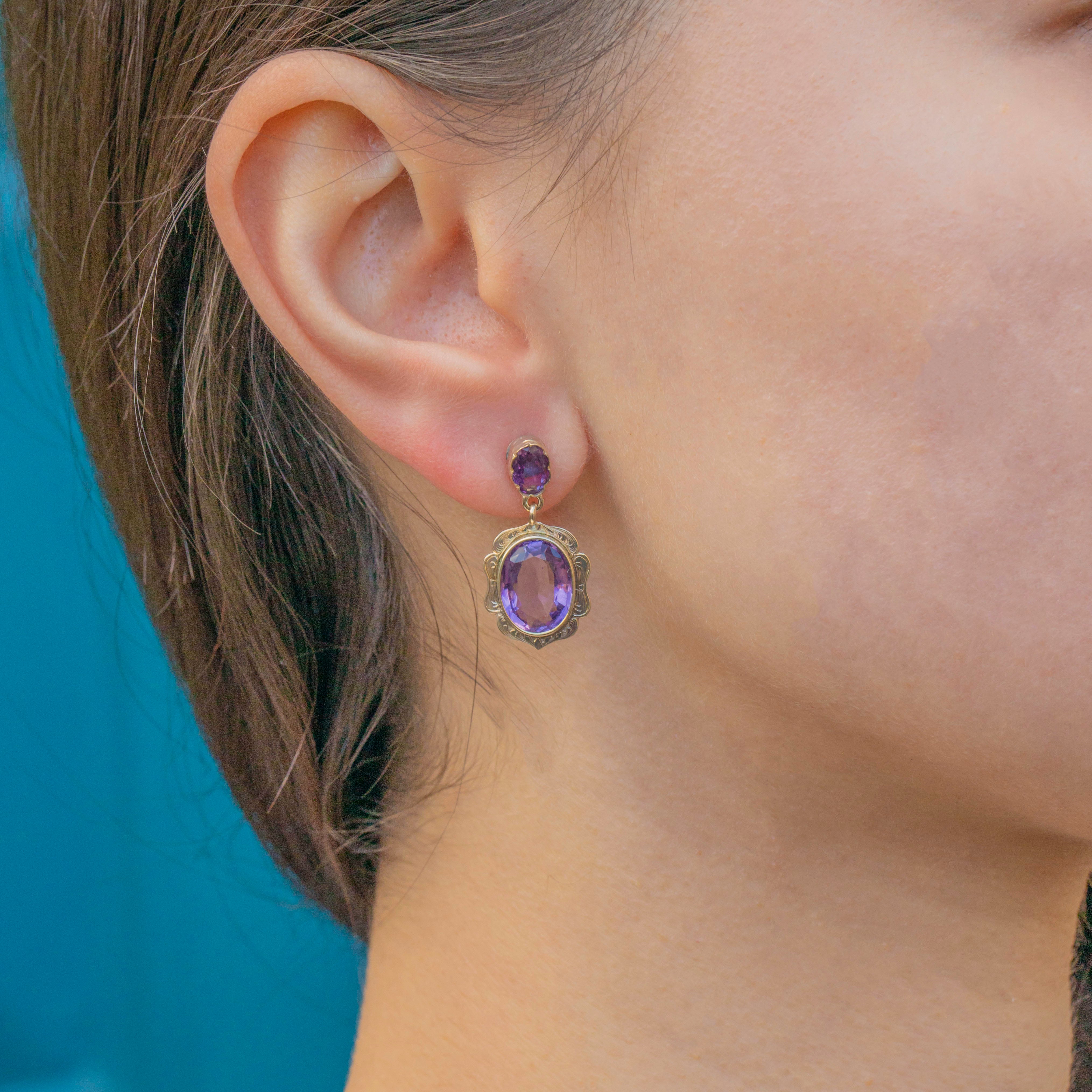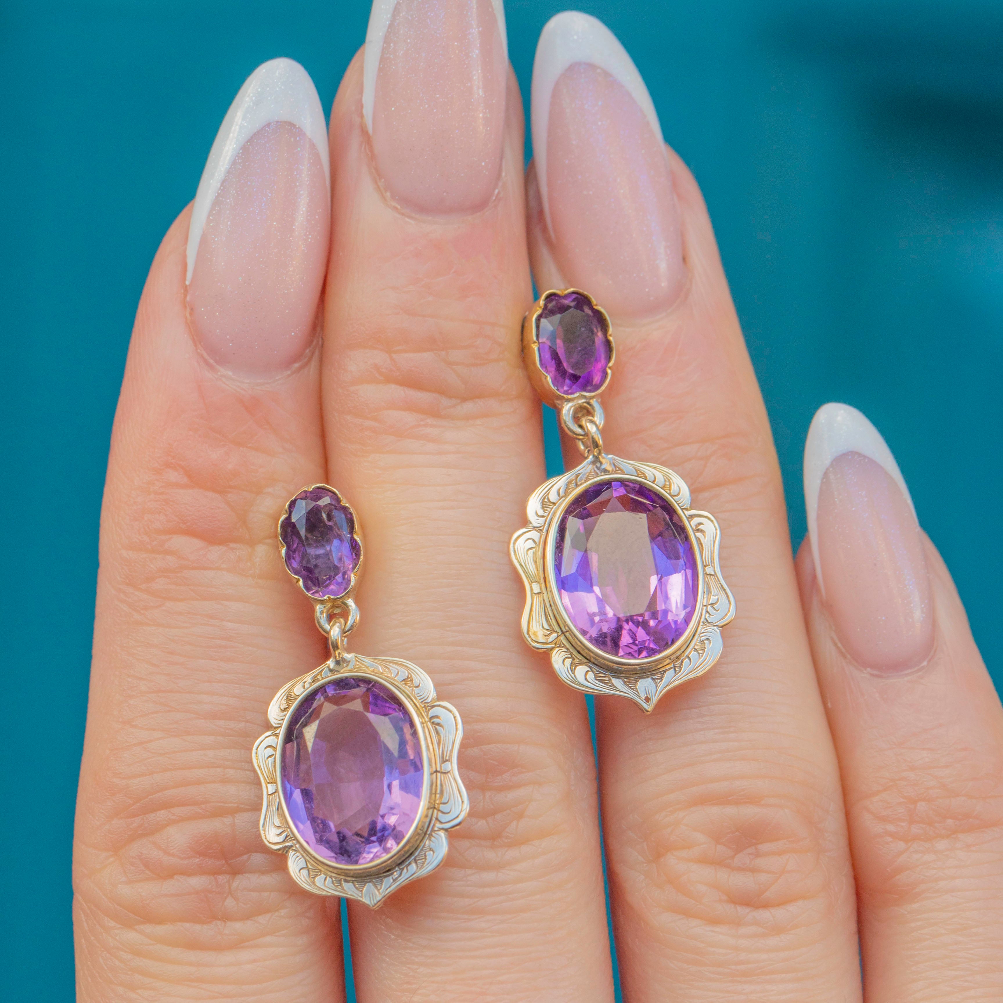 These Victorian 9ct Gold Amethyst drop earrings are bursting with antique charm!