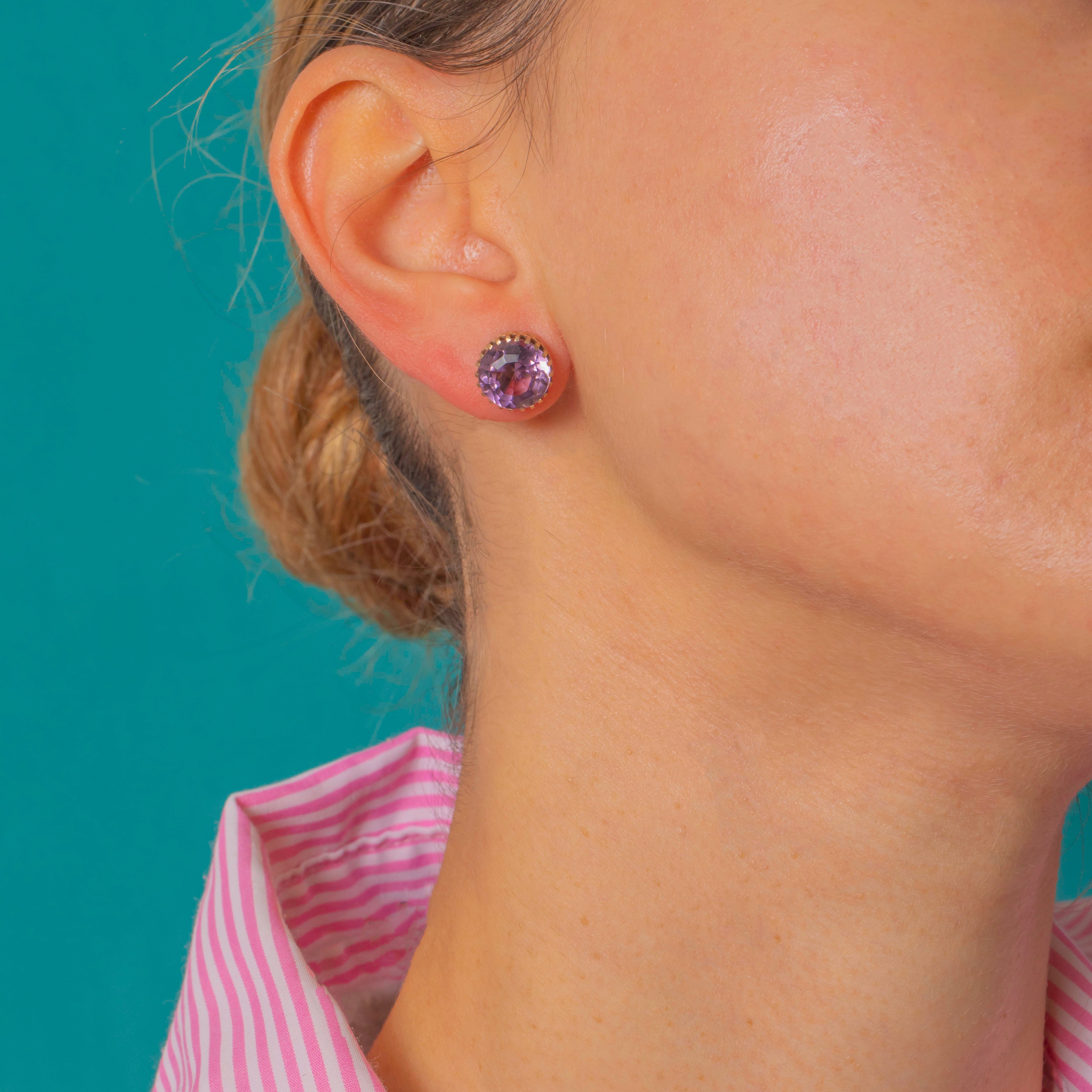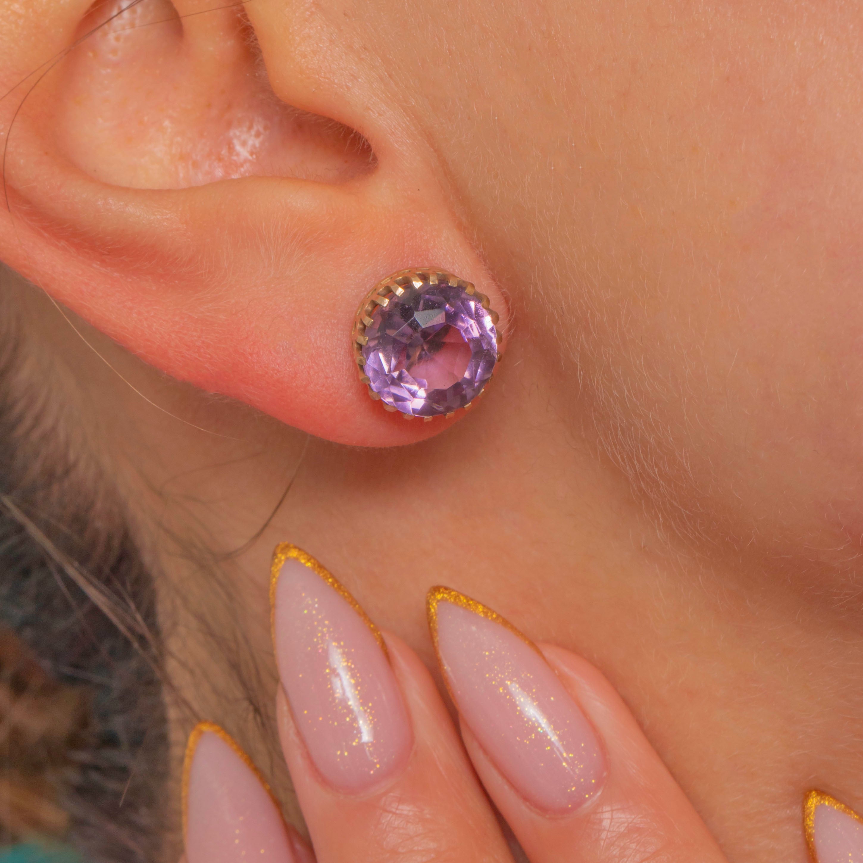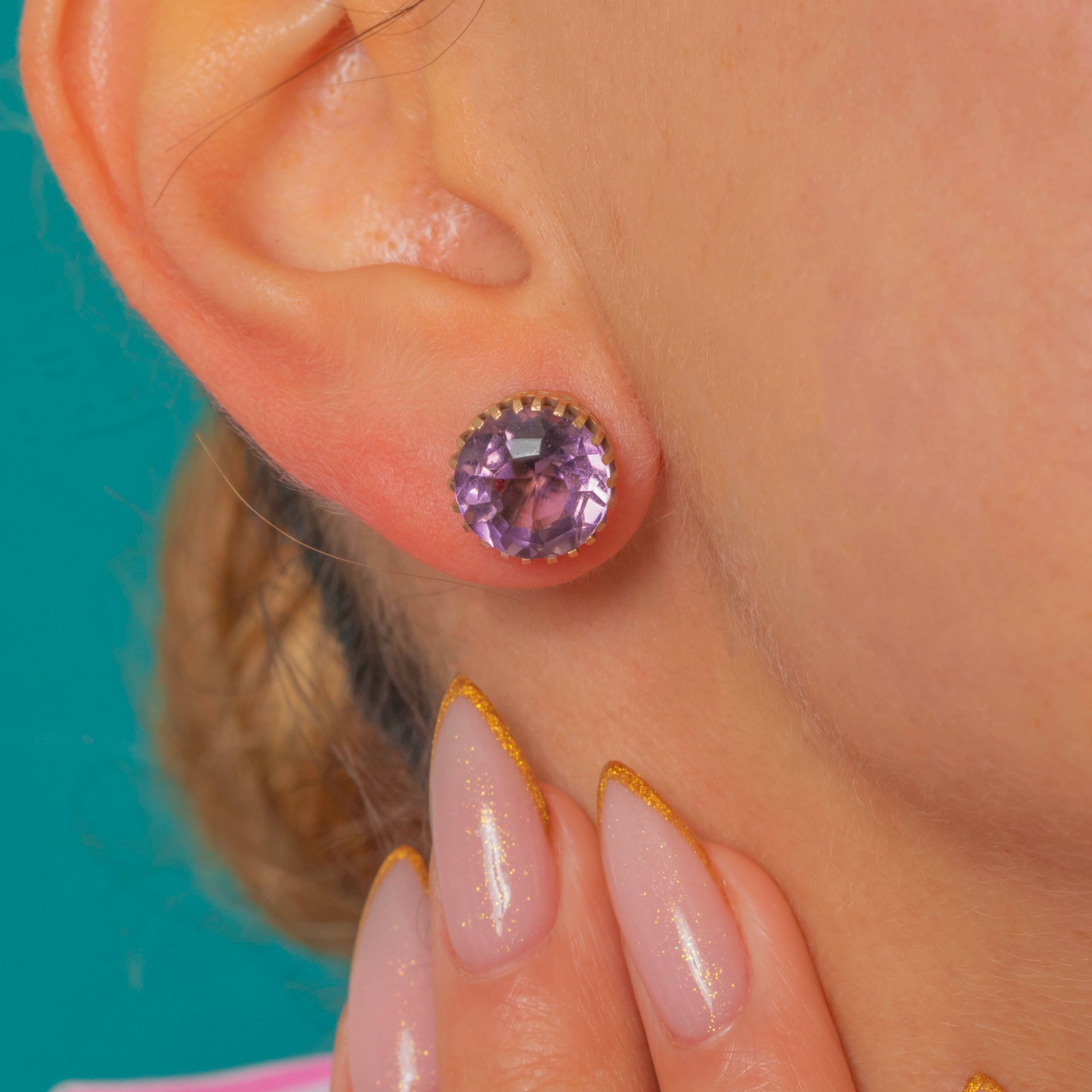 These stunning Victorian Amethyst studs combine antique beauty with everyday wearability. Each earring features a vibrant natural Amethyst with the prettiest violet hue, full of lively internal flashes and old-world sparkle. Together, they total approximately 5.60ct, offering a gorgeous pop of colour against the warm glow of 9ct Gold.