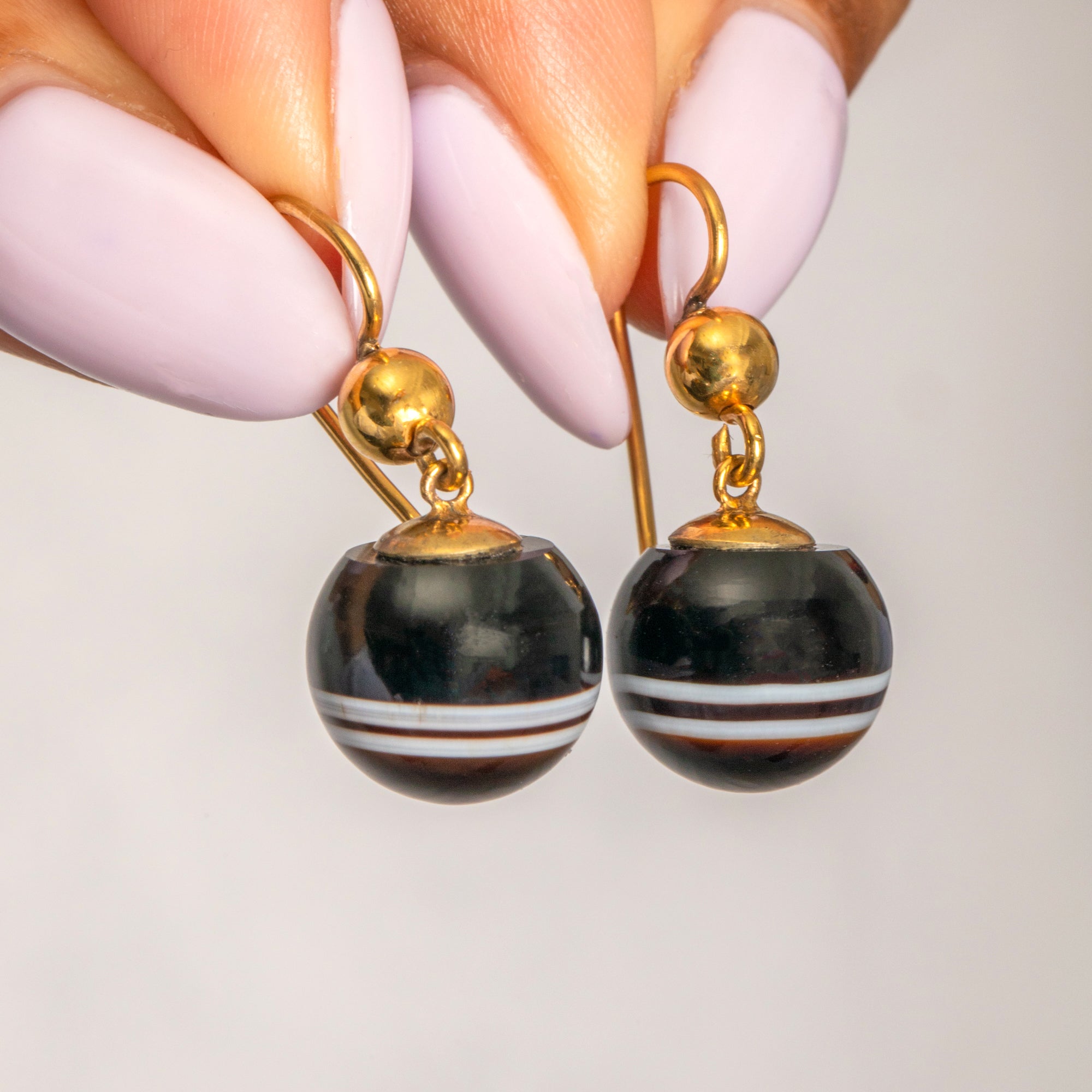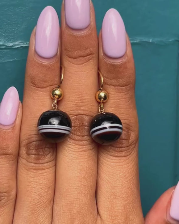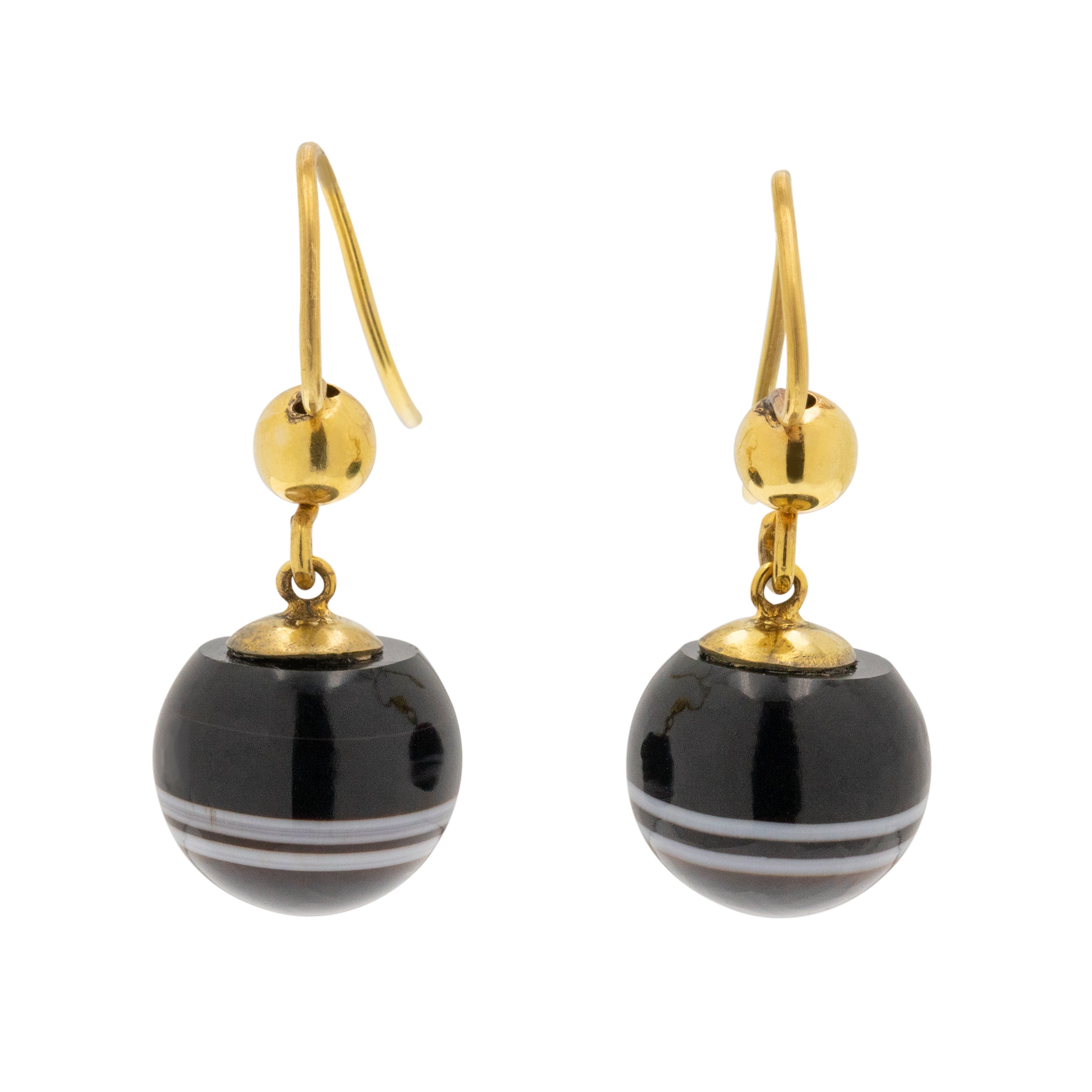 ヴィクトリアン 9ct ゴールド バンドアゲート オーブ イヤリング
