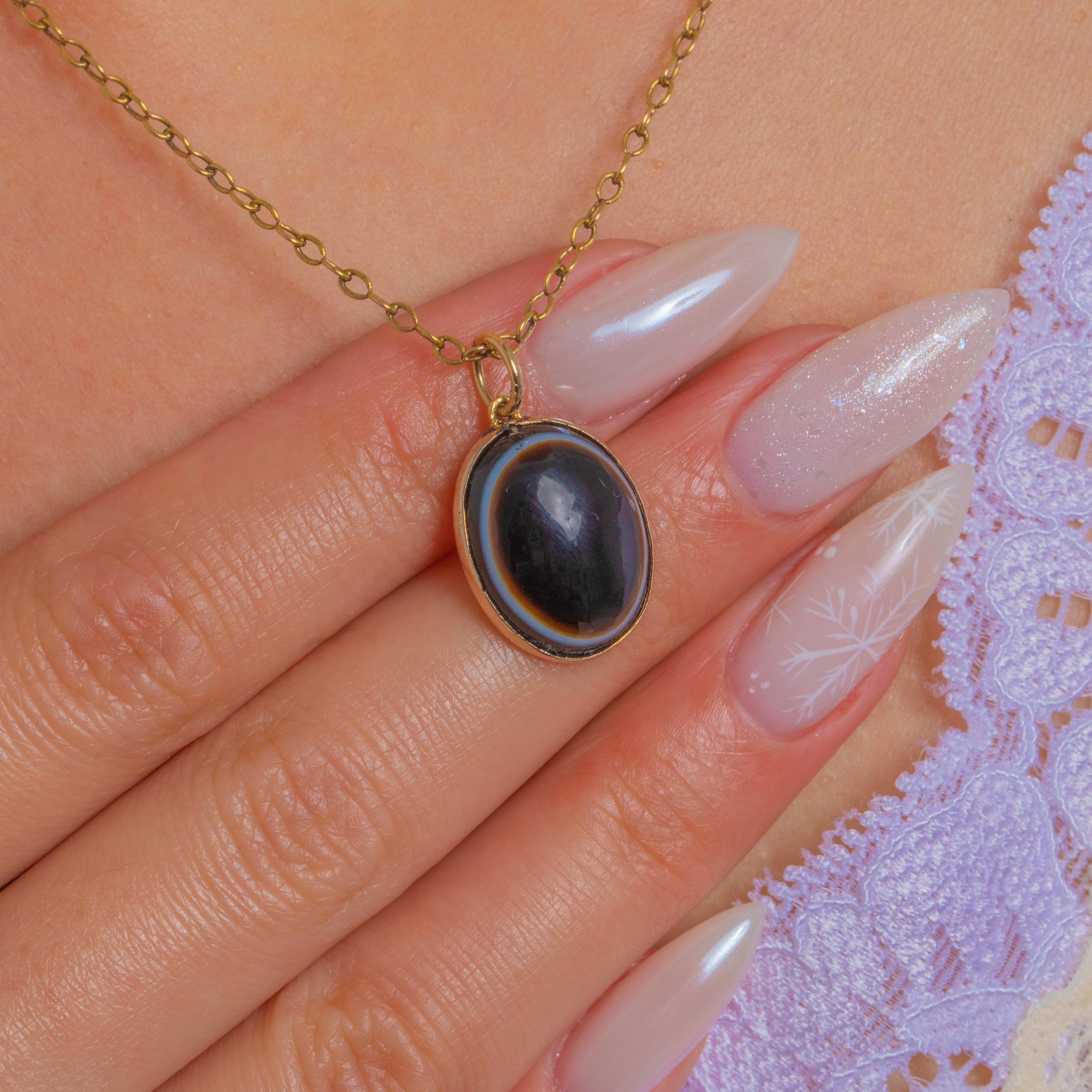 ヴィクトリアン 9ct ゴールド バンデッドアゲート ペンダント