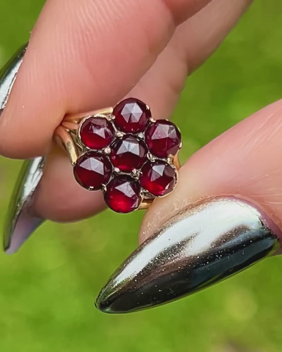 Victorian 9ct Gold Bohemian Garnet Flower Cluster Ring