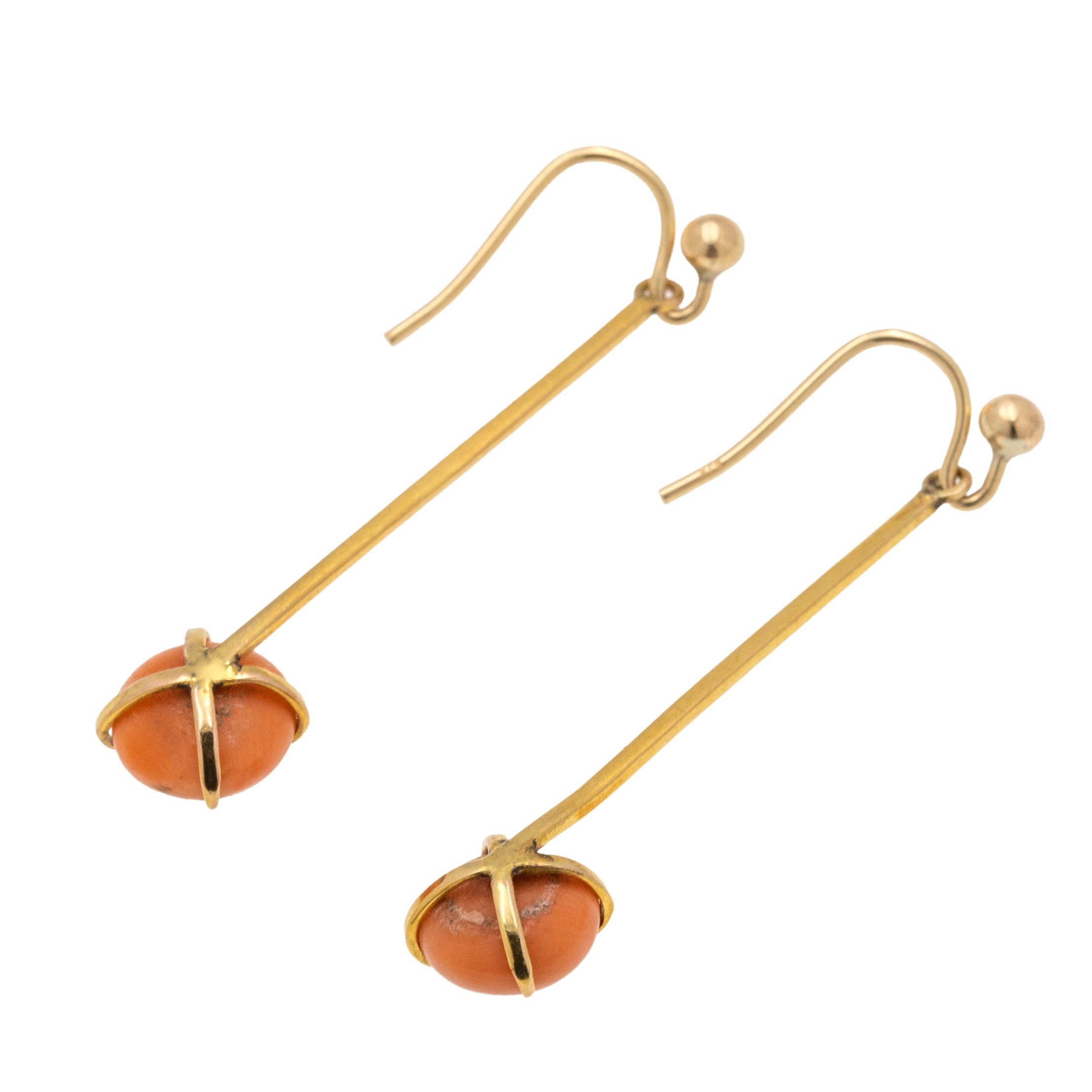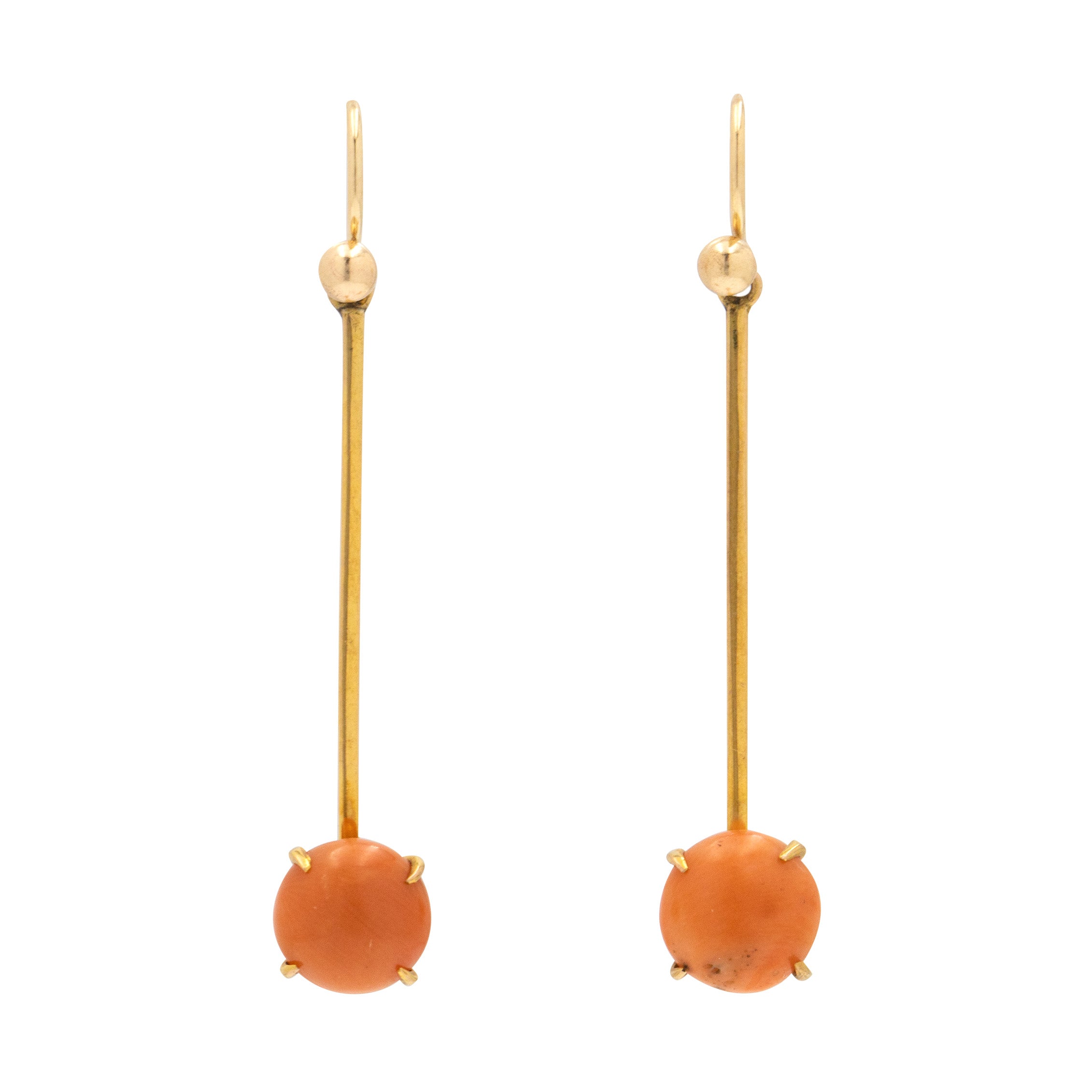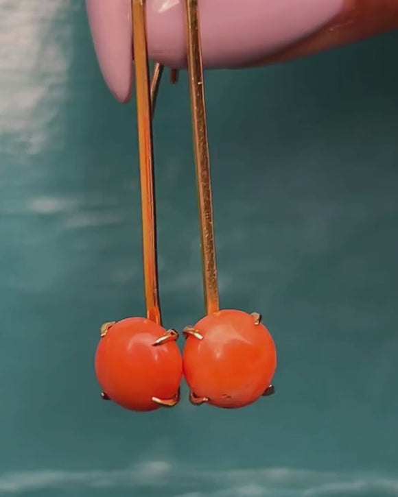 ヴィクトリアン 9ct ゴールド コーラル ドロップ ピアス