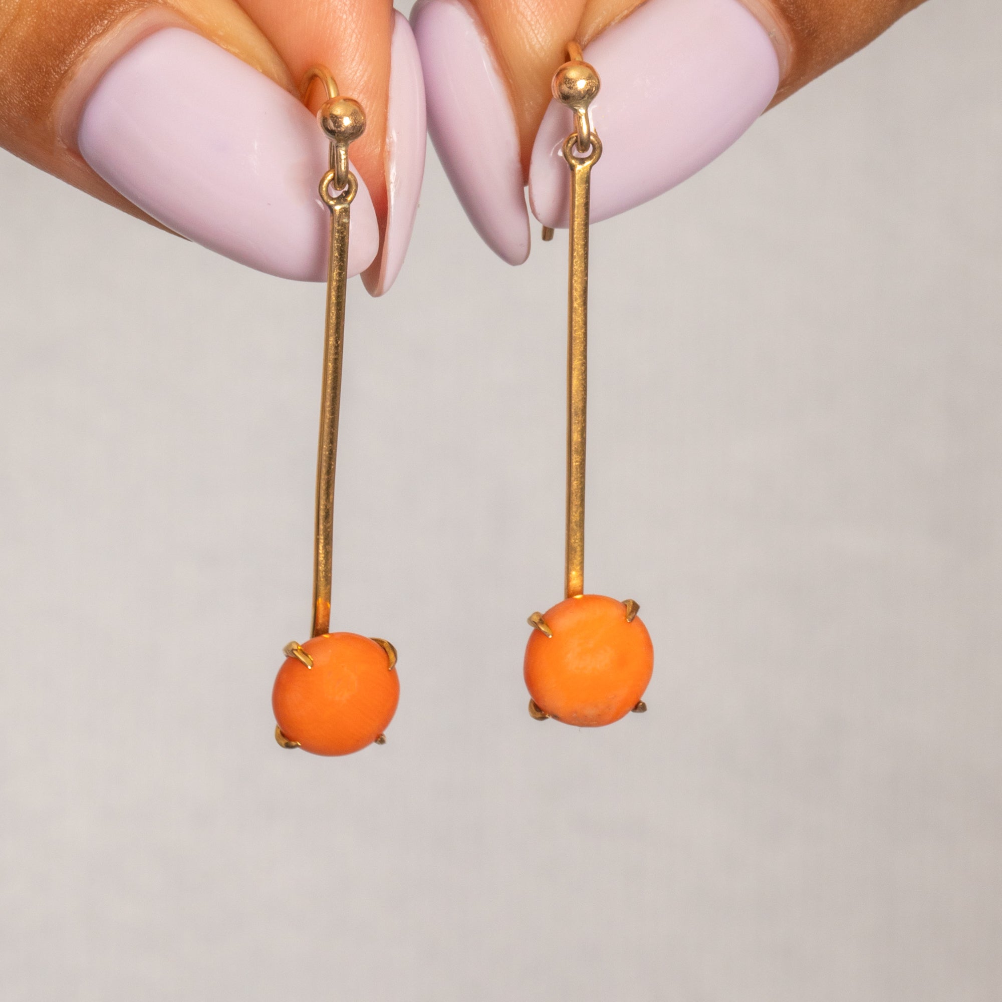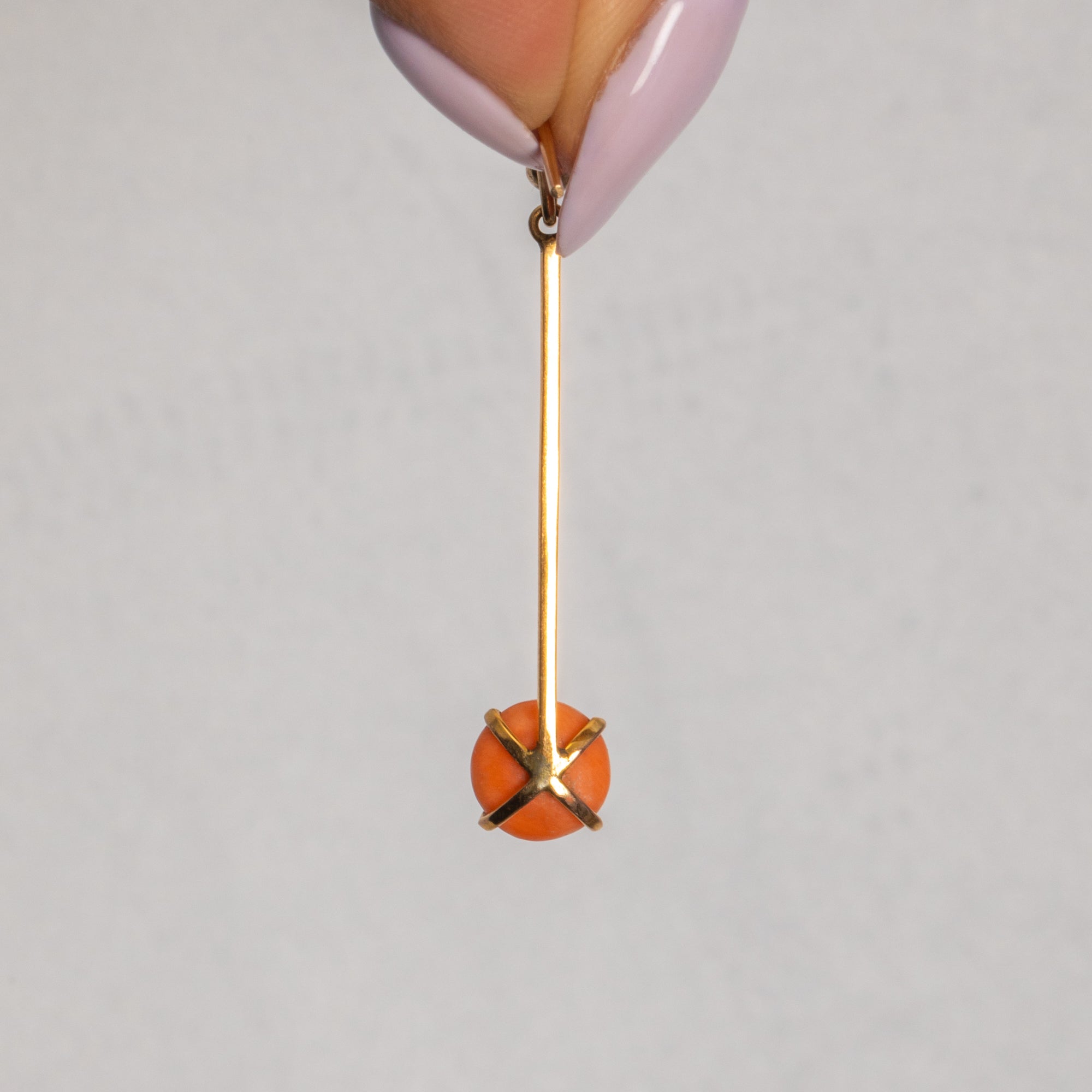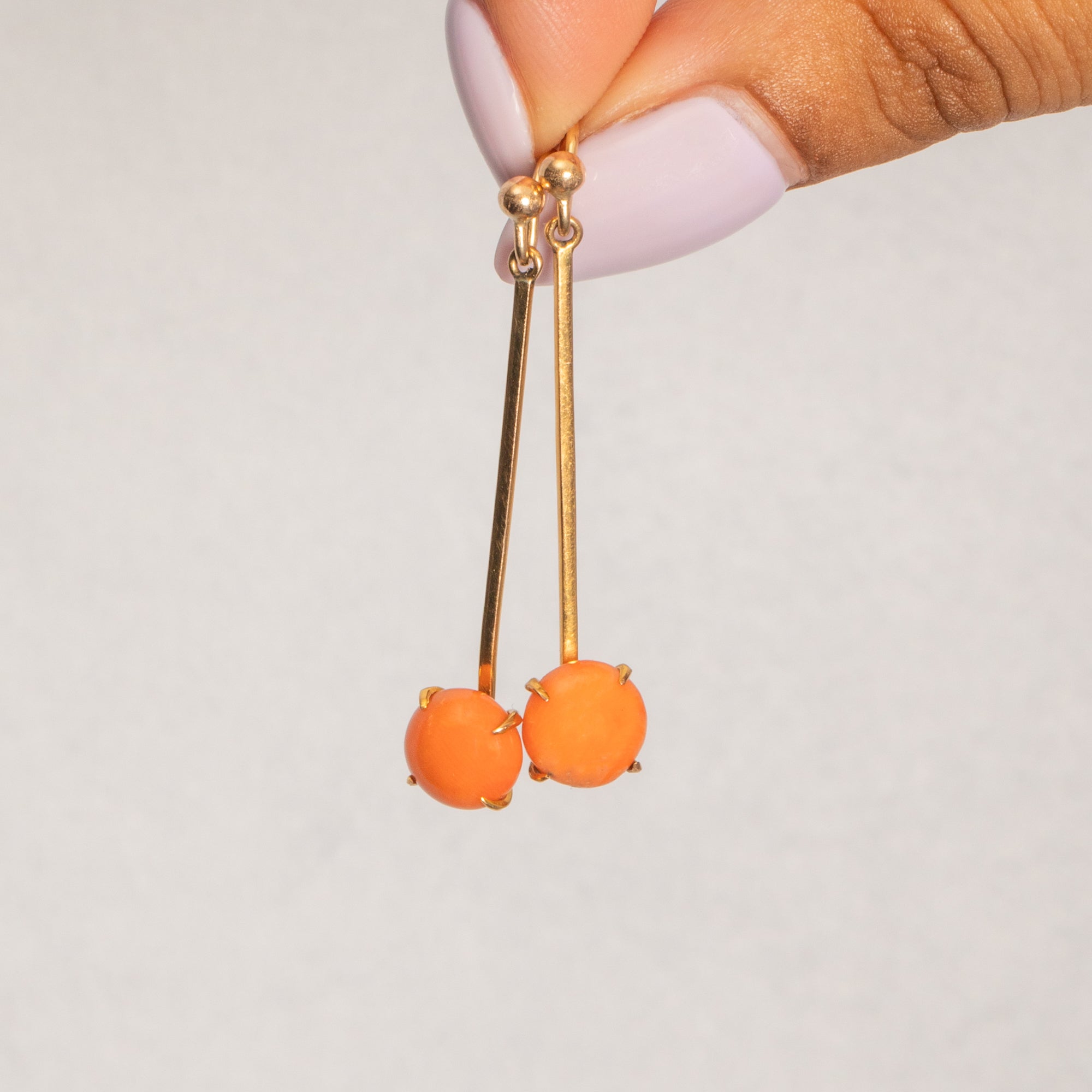 ヴィクトリアン 9ct ゴールド コーラル ドロップ ピアス