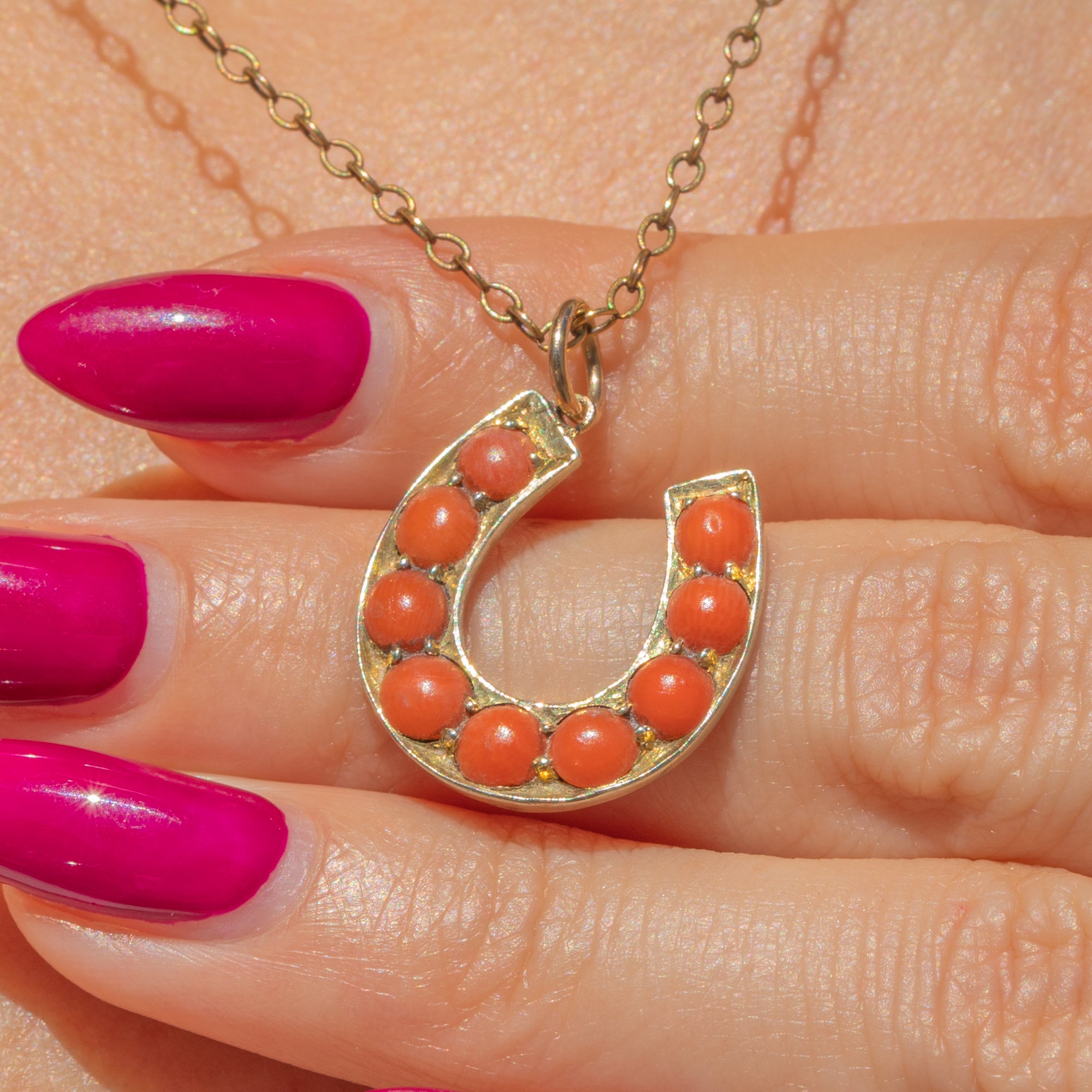 This antique Coral horseshoe charm is the perfect lucky charm to wear day in and day out! Inlaid with gorgeous Corals, this adorable charm is vibrant with colour and character!