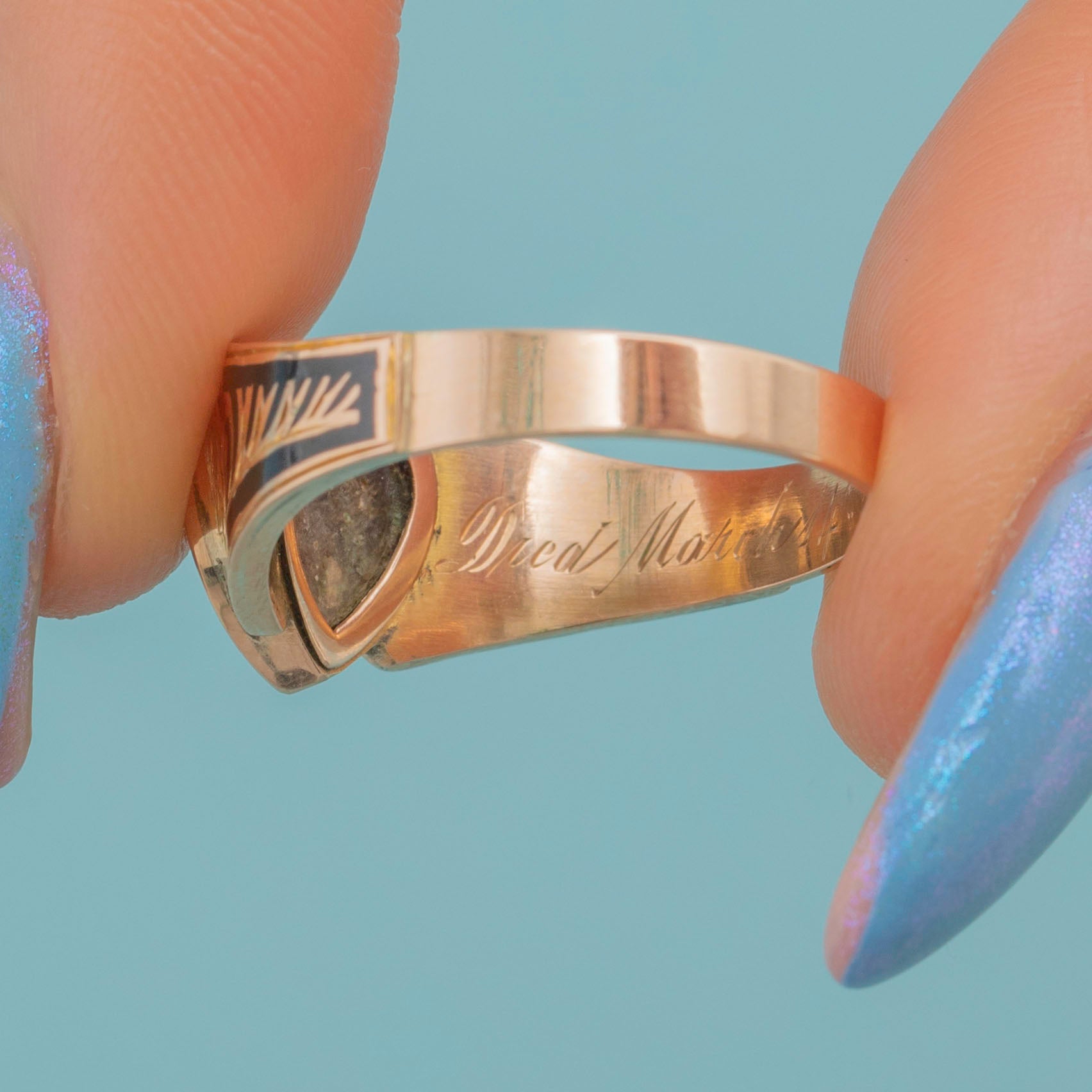 This ring is hallmarked to 1898, engraved just a year later in 1899 with the details of someone who was held dearly to a loved one! On the inside of the ring head, there is a locket compartment that still has its original frame, very rare indeed, making this a wonderful collectible treasure for your collection!