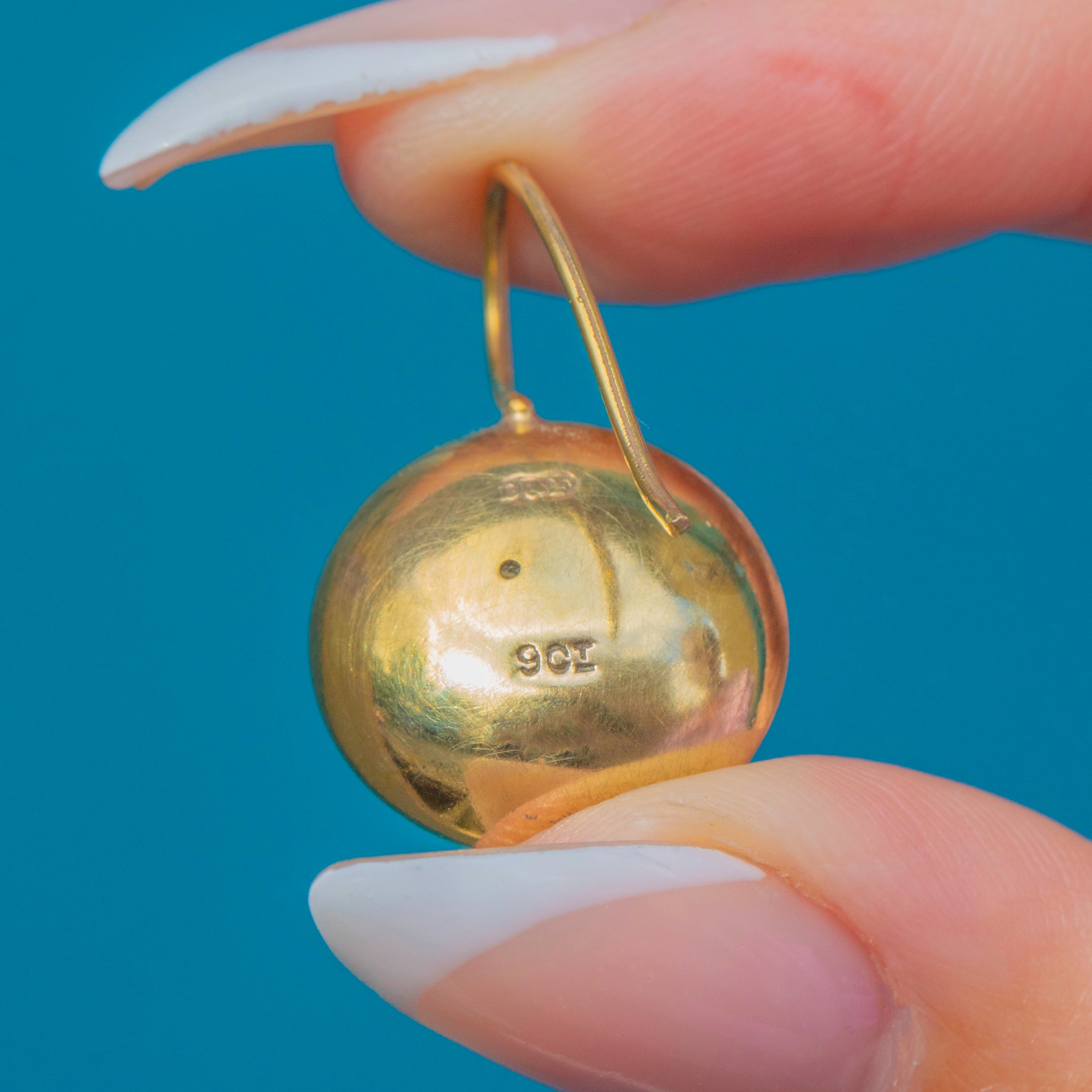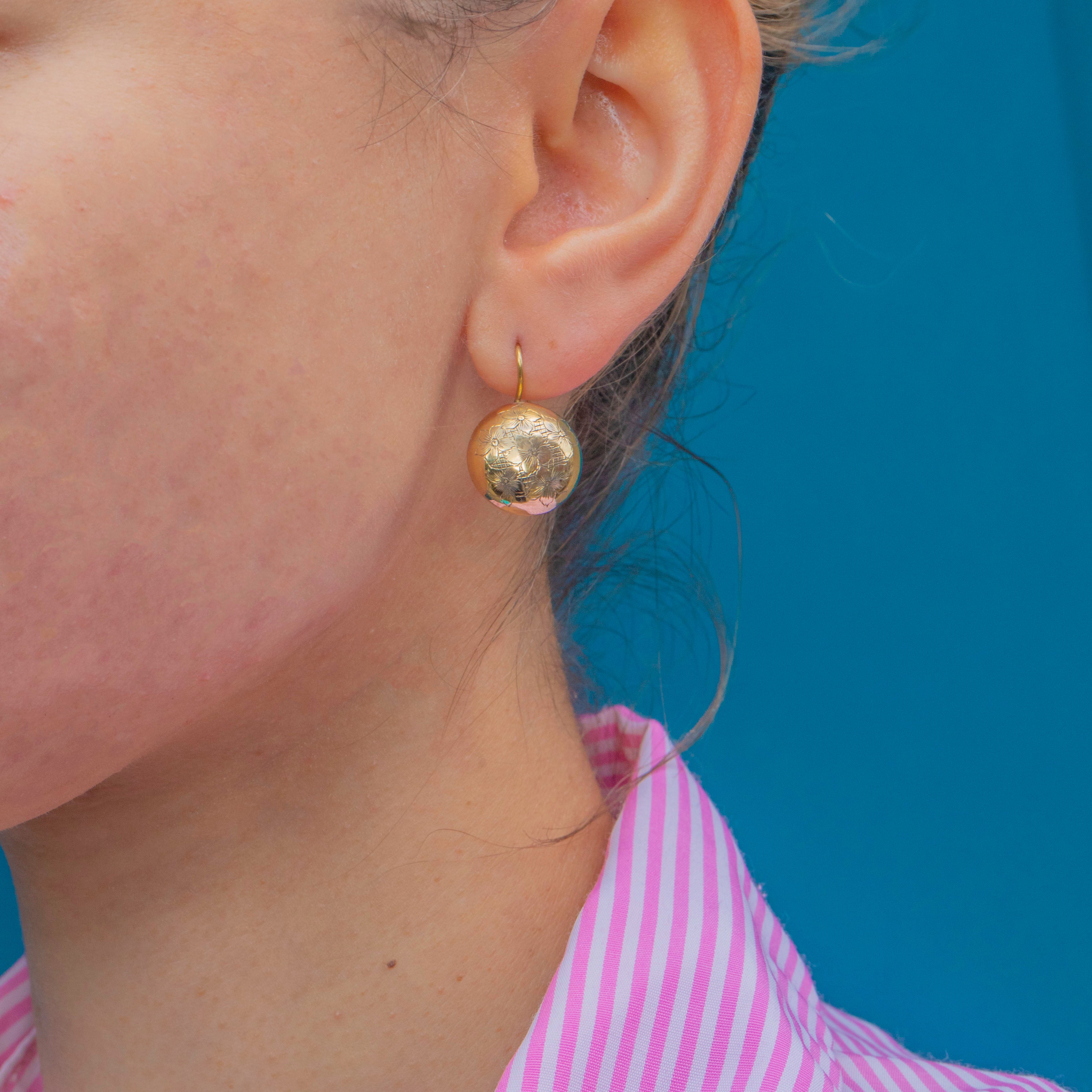 EXCELLENT: These earrings are in superb condition, with no dings or dents to the Gold. The engraved design remains clear and crisp, showing minimal wear despite their age. They have been very well cared for and are ready to wear straight away.