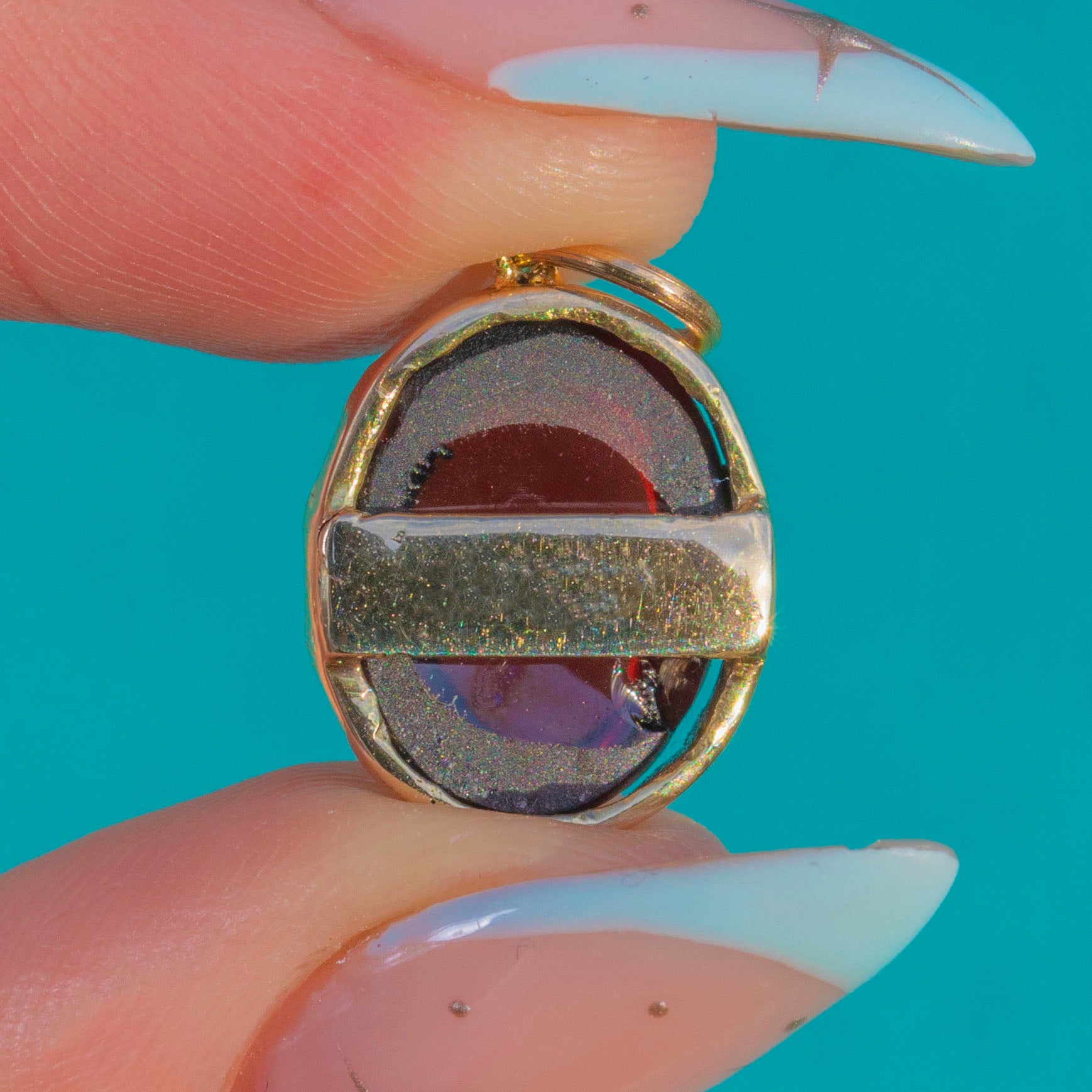 Victorian 九金 ガーネット カボション チャーム ペンダント