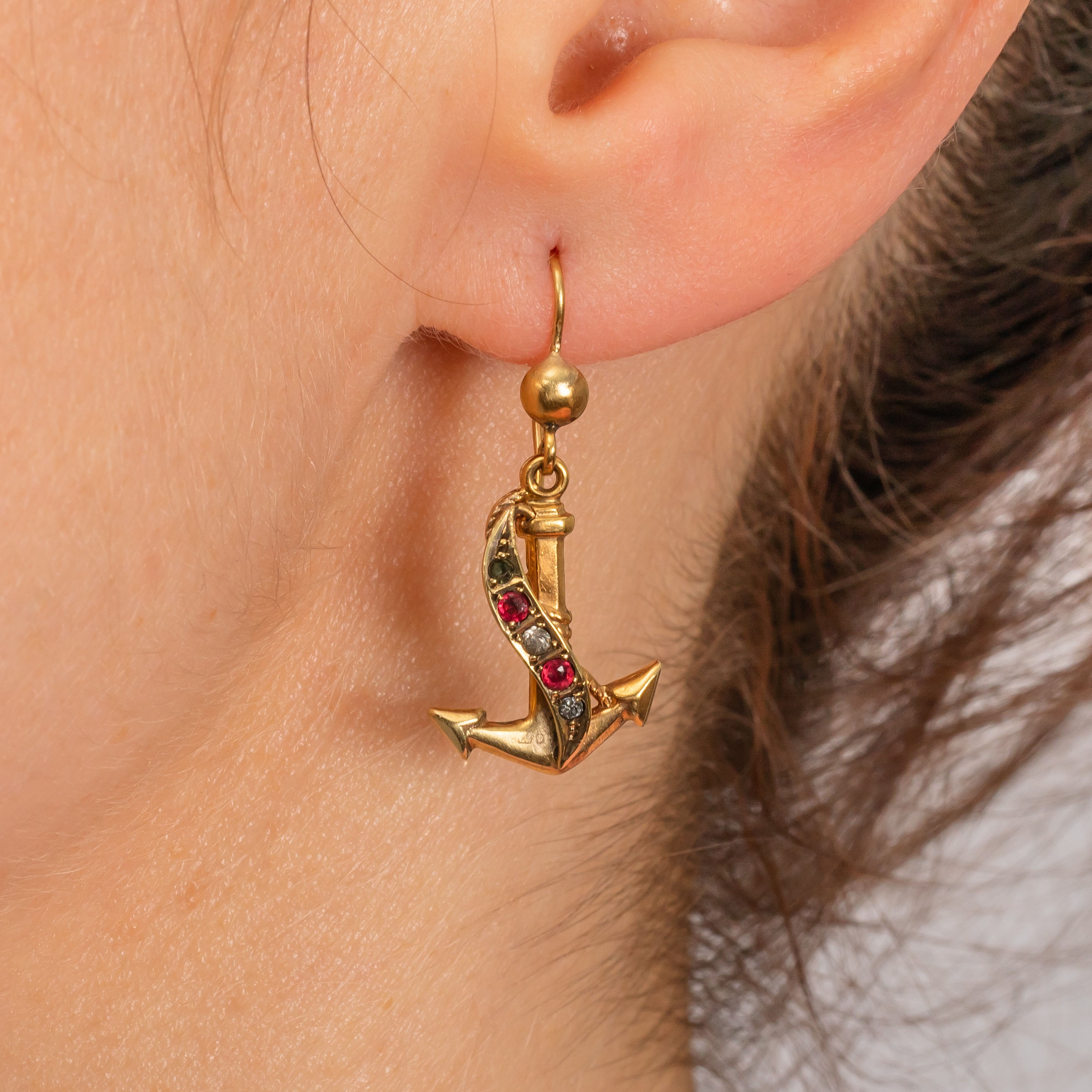 ヴィクトリアン 9ct ゴールド ペースト アンカー イヤリング