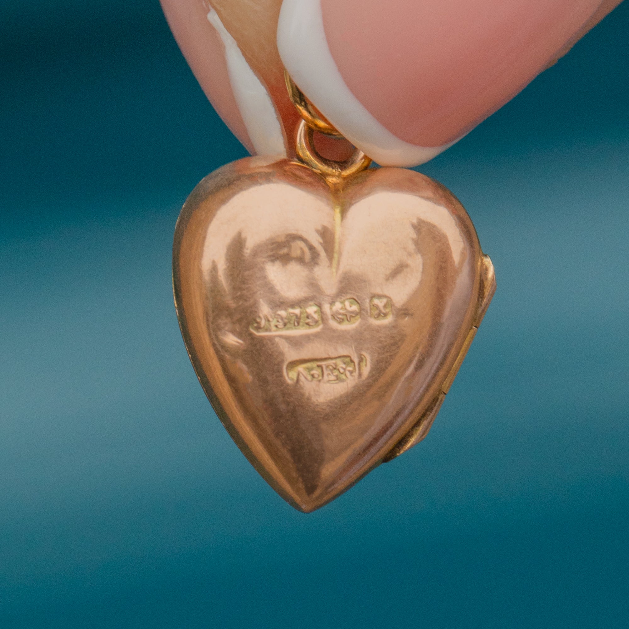 HALLMARKS: 'AEJ' Makers mark, '9', '.375', Birmingham Anchor, Date letter 'X' for the year 1897 on the back of the locket.