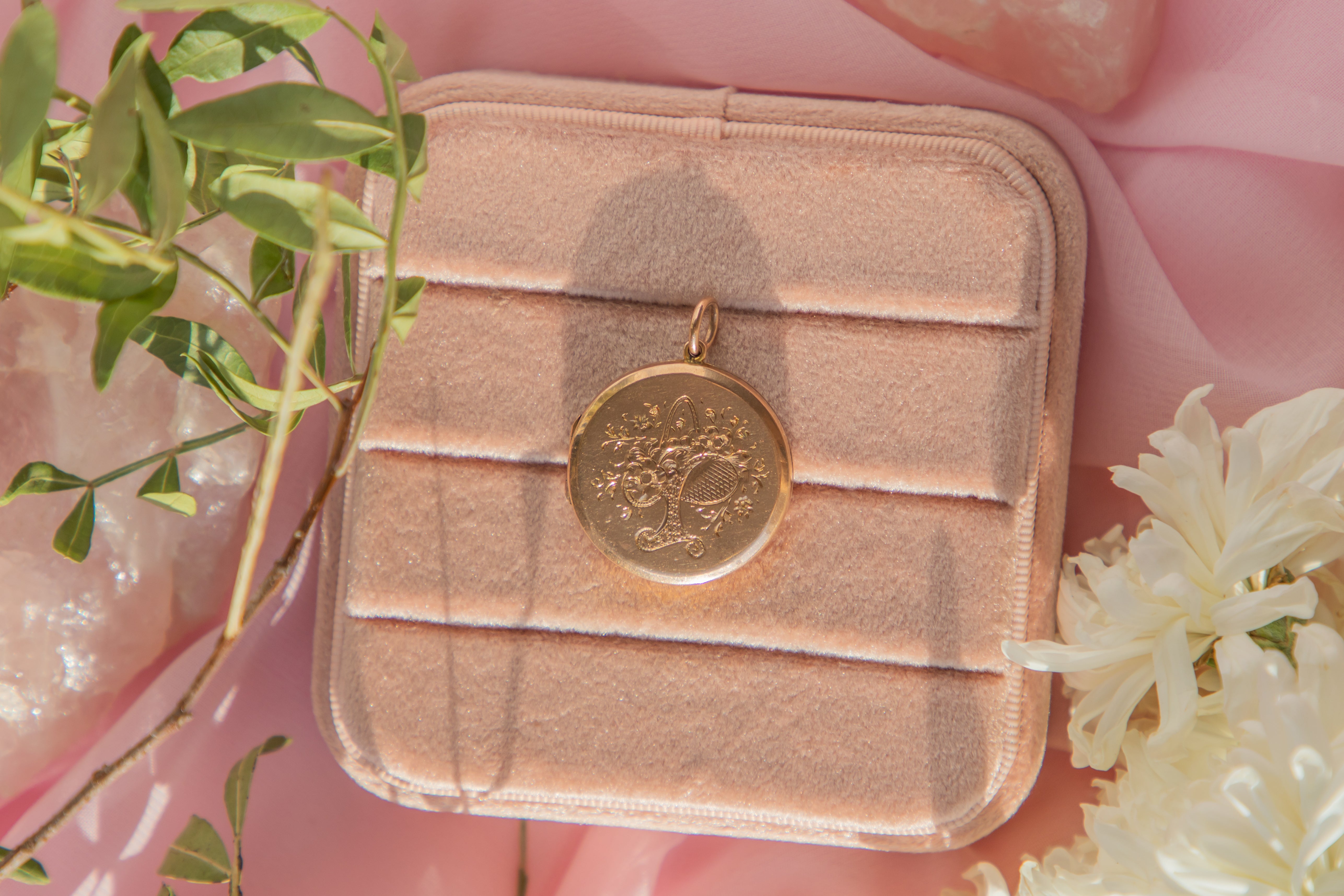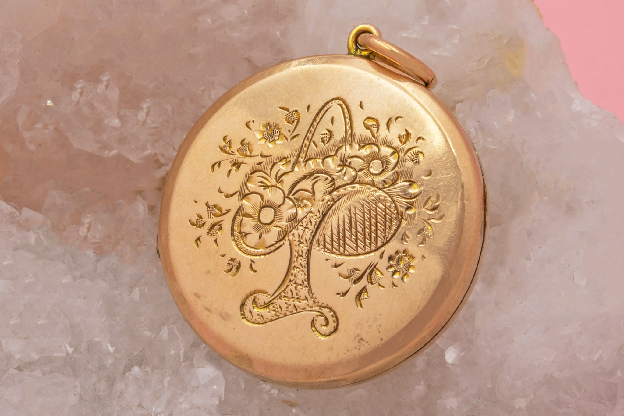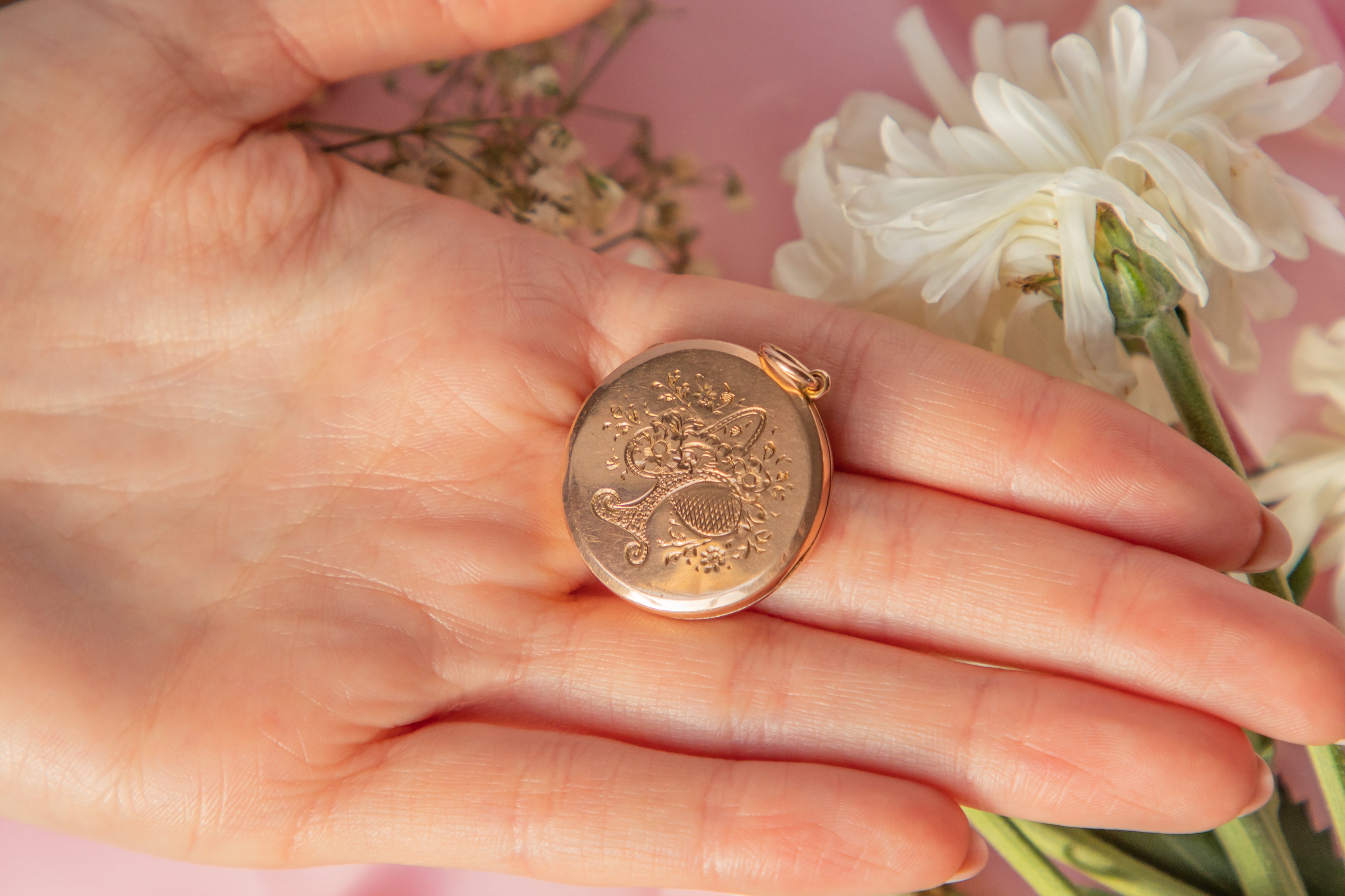 ヴィクトリアン 9ct ゴールド ラウンド「花束」ロケット