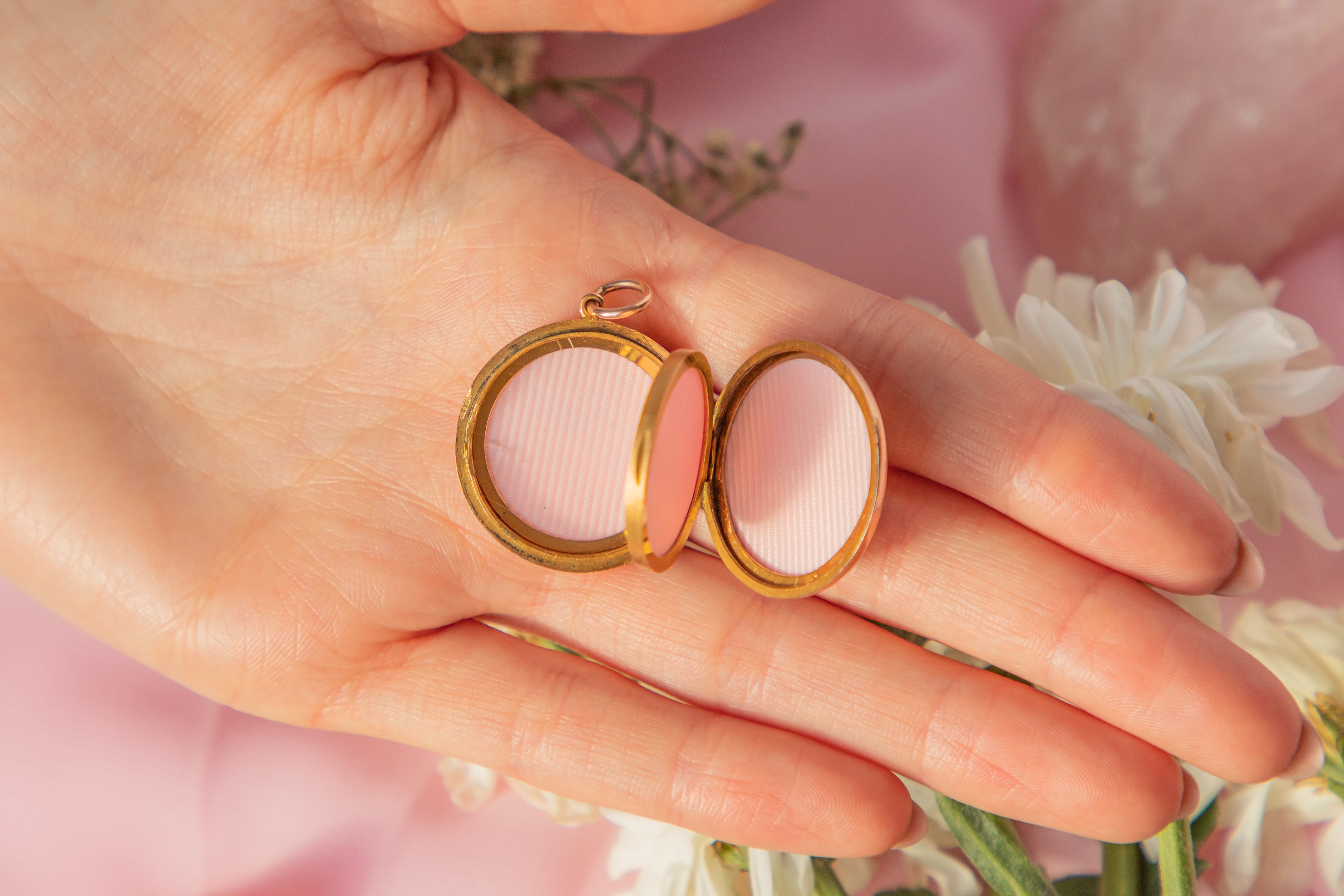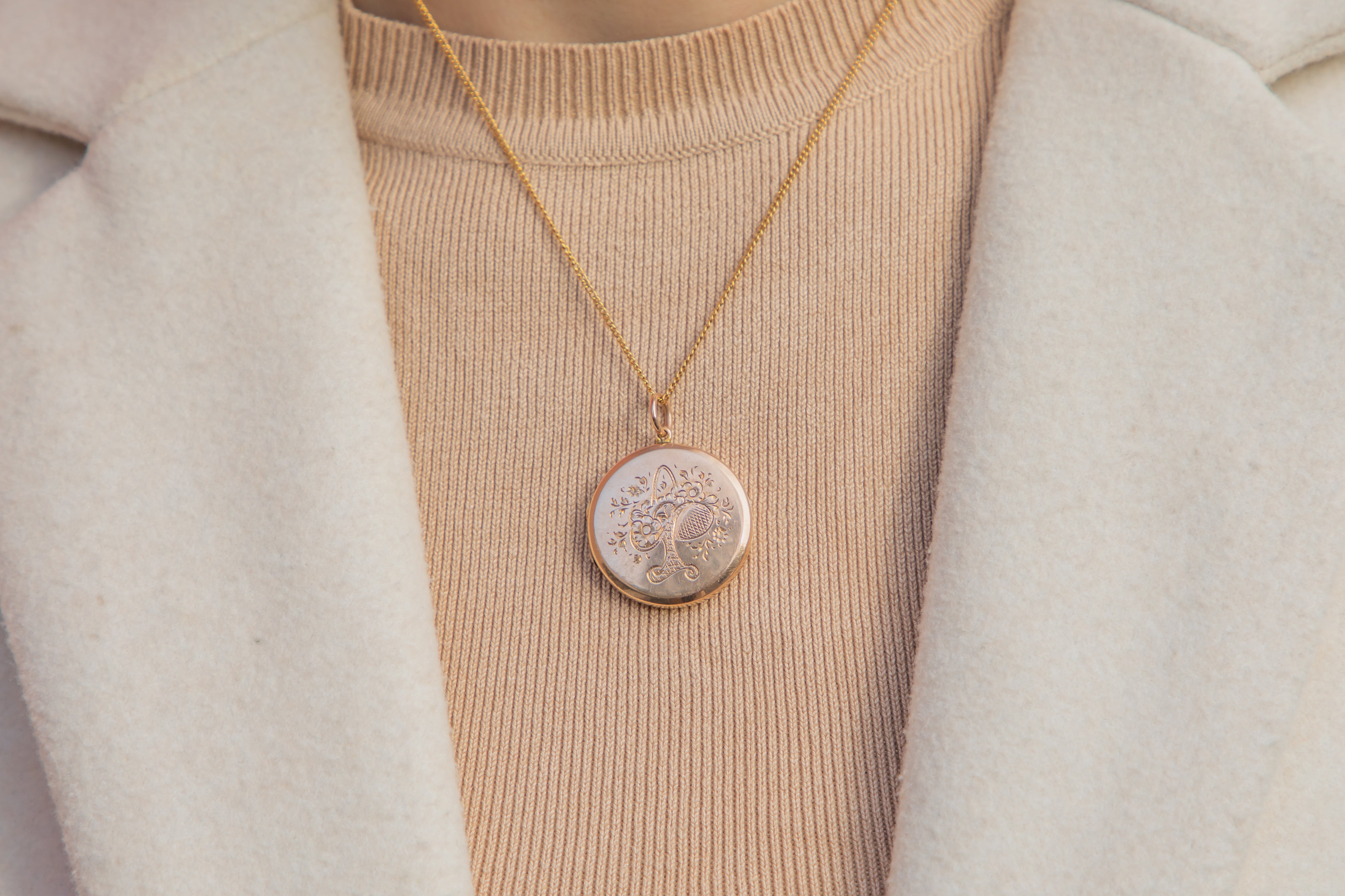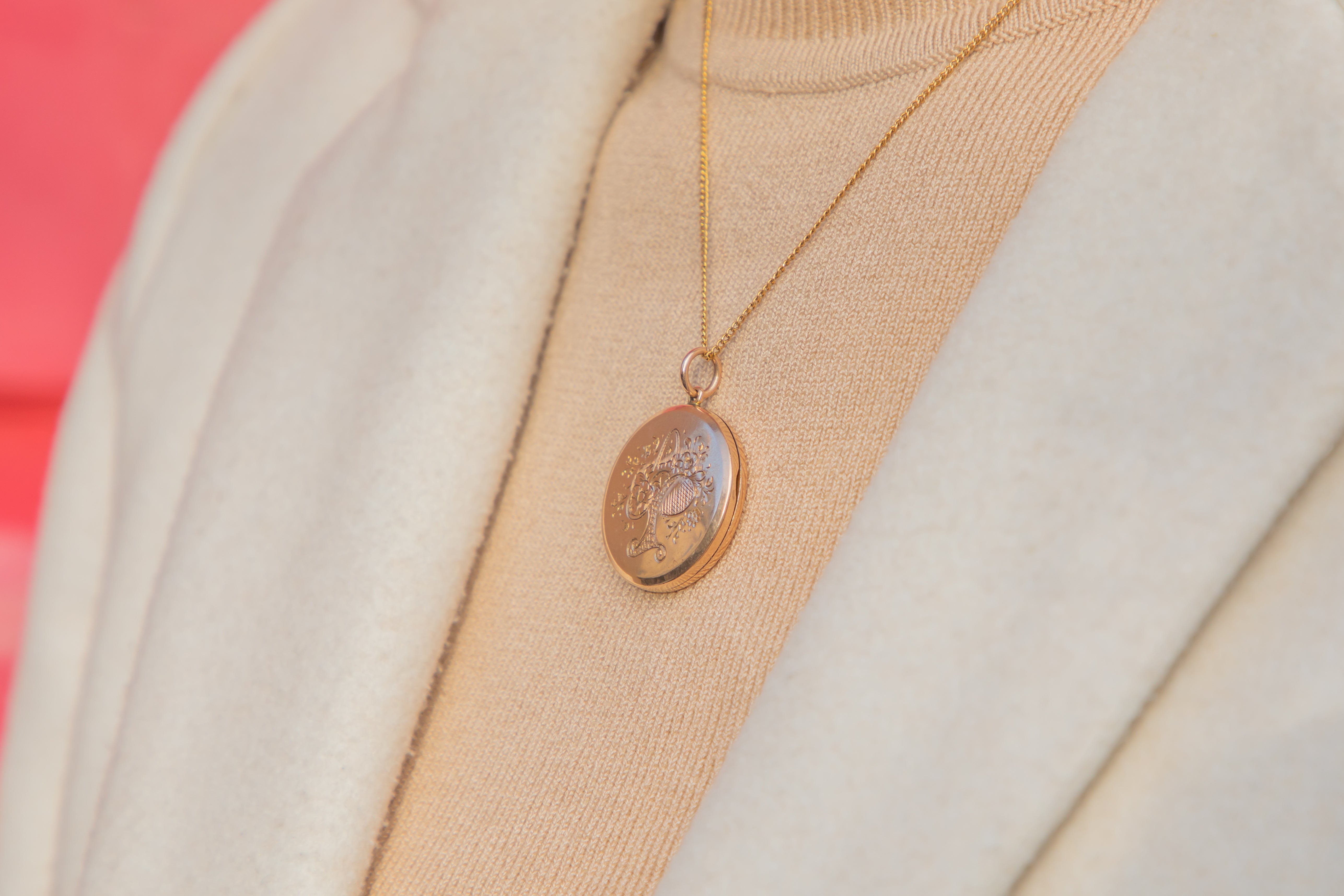 ヴィクトリアン 9ct ゴールド ラウンド「花束」ロケット