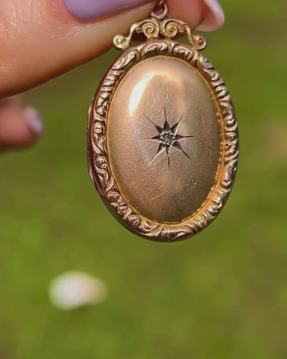 Victorian 9ct Gold Star-Set Diamond Locket