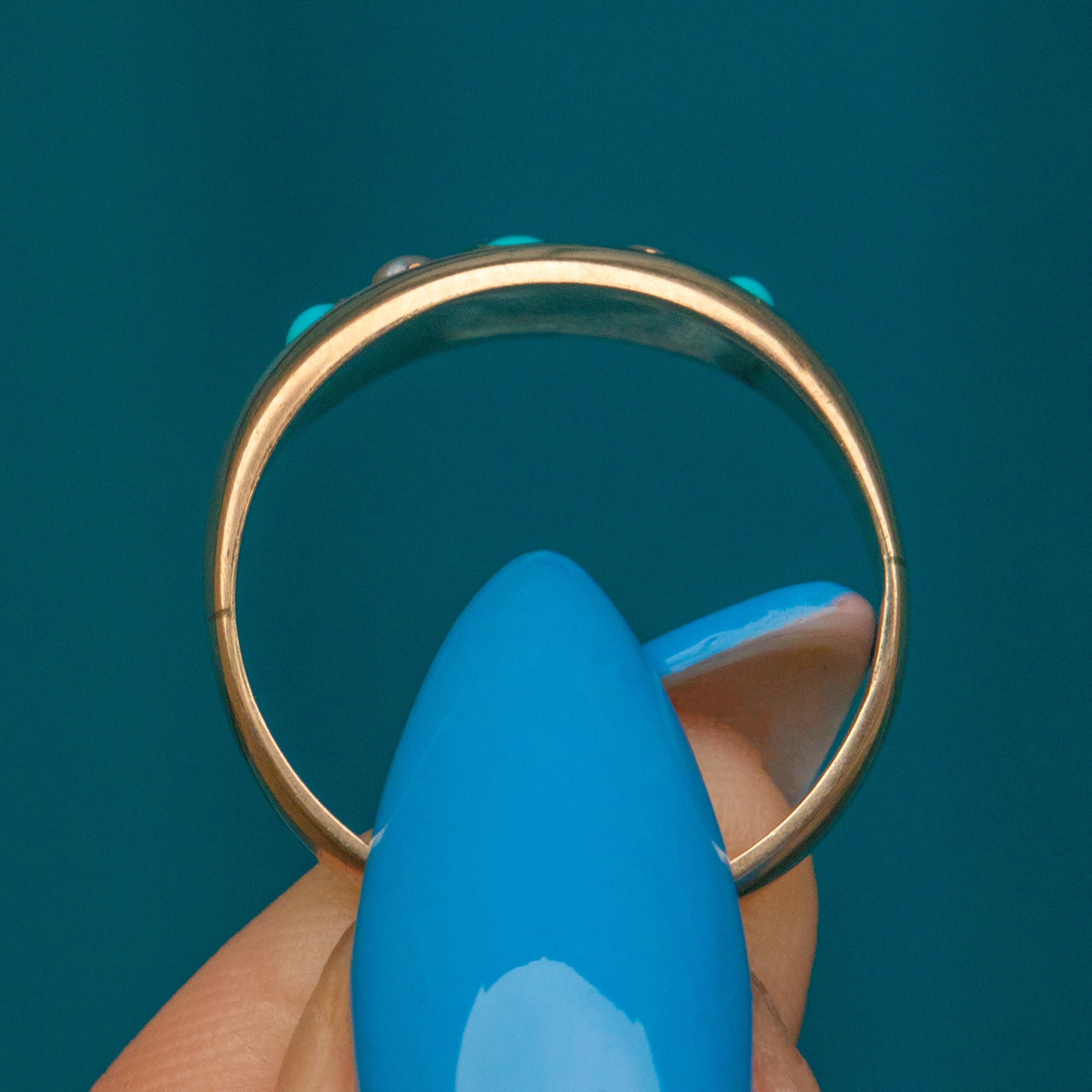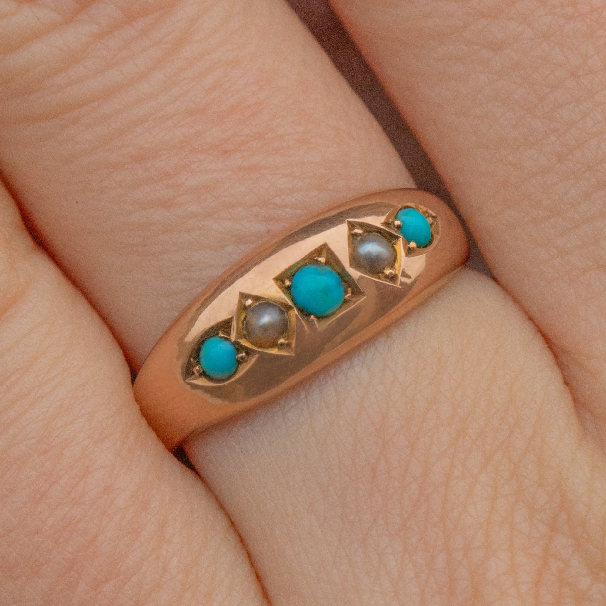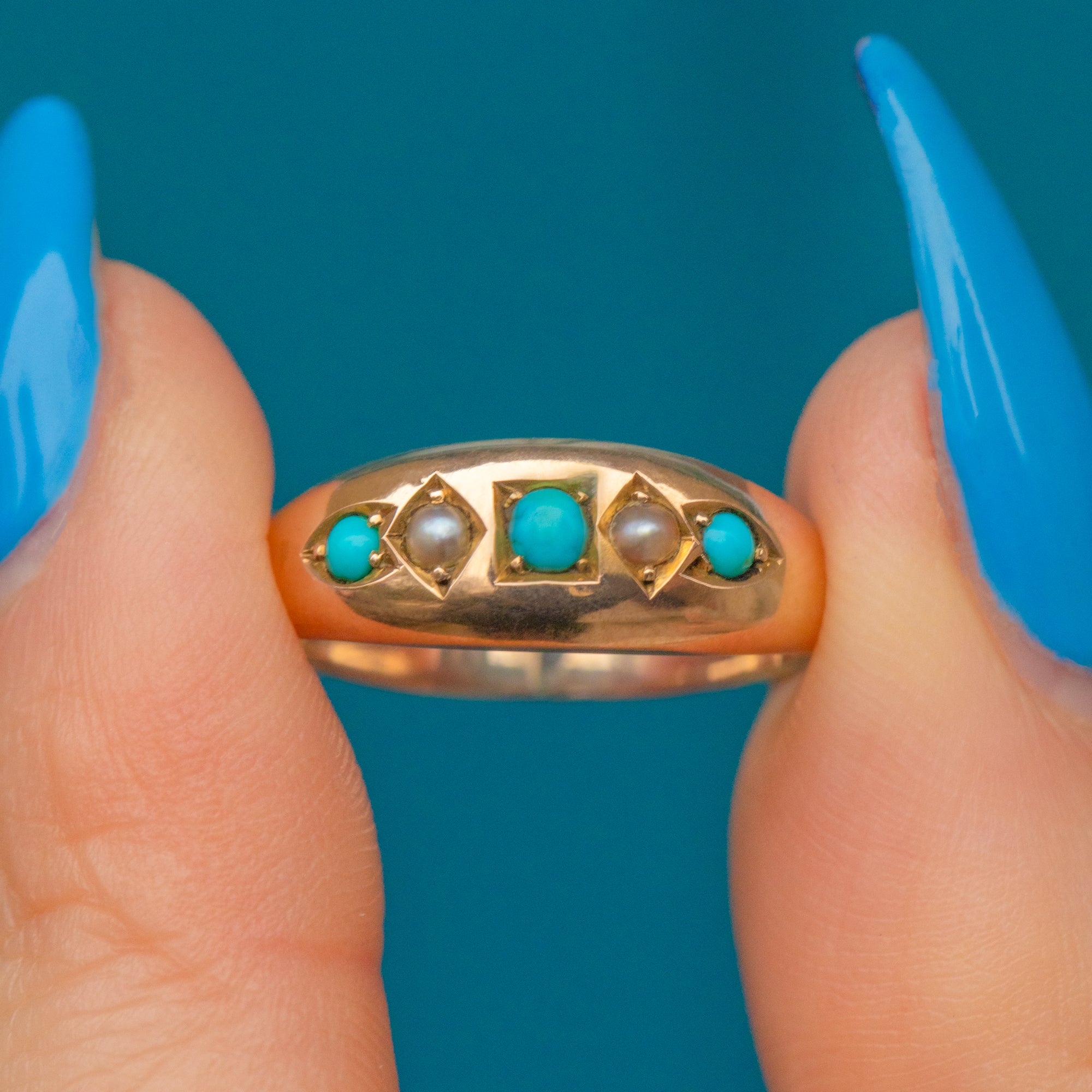 This elegant Victorian 9ct Gold Turquoise Peal five stone ring is the perfect versatile piece to add to your collection.