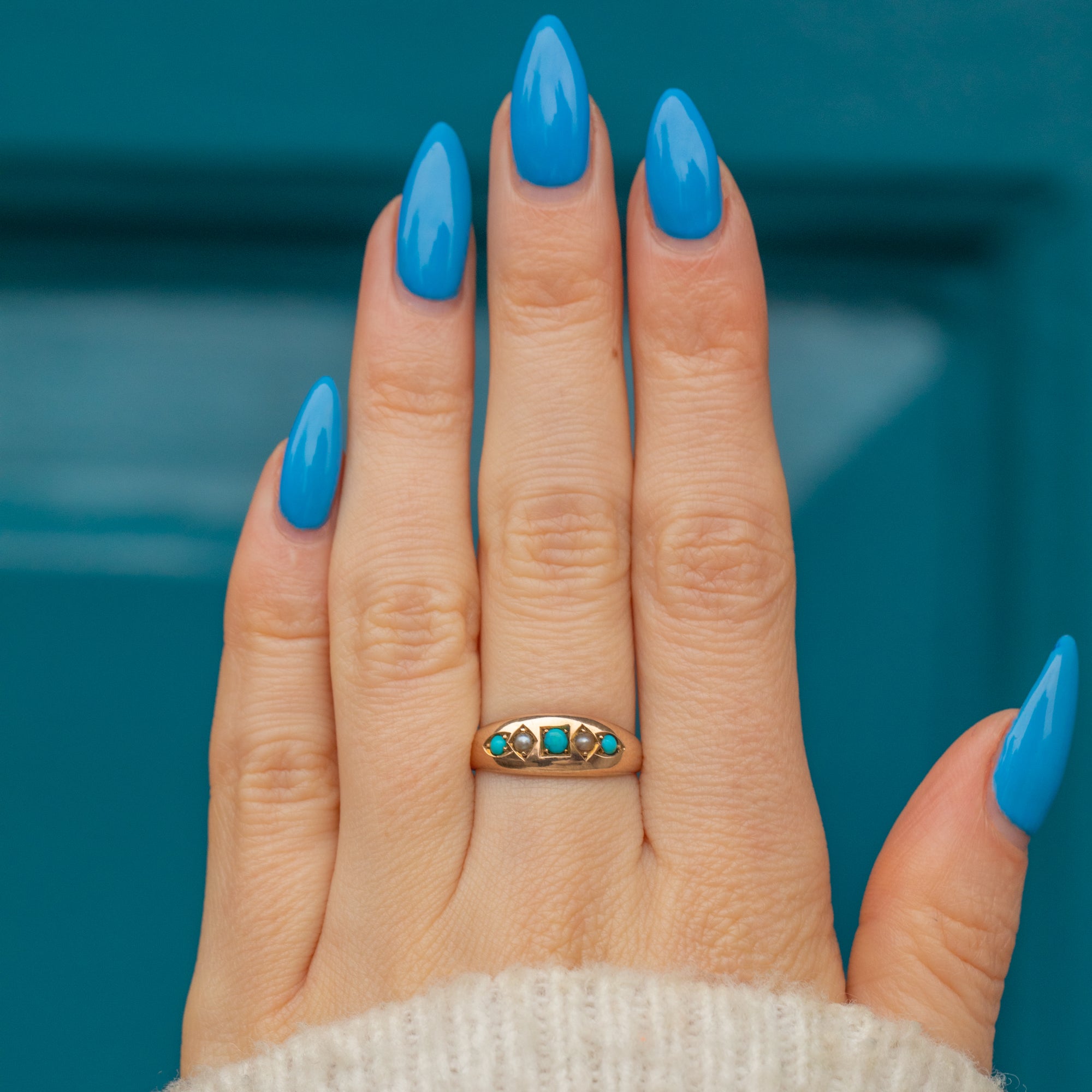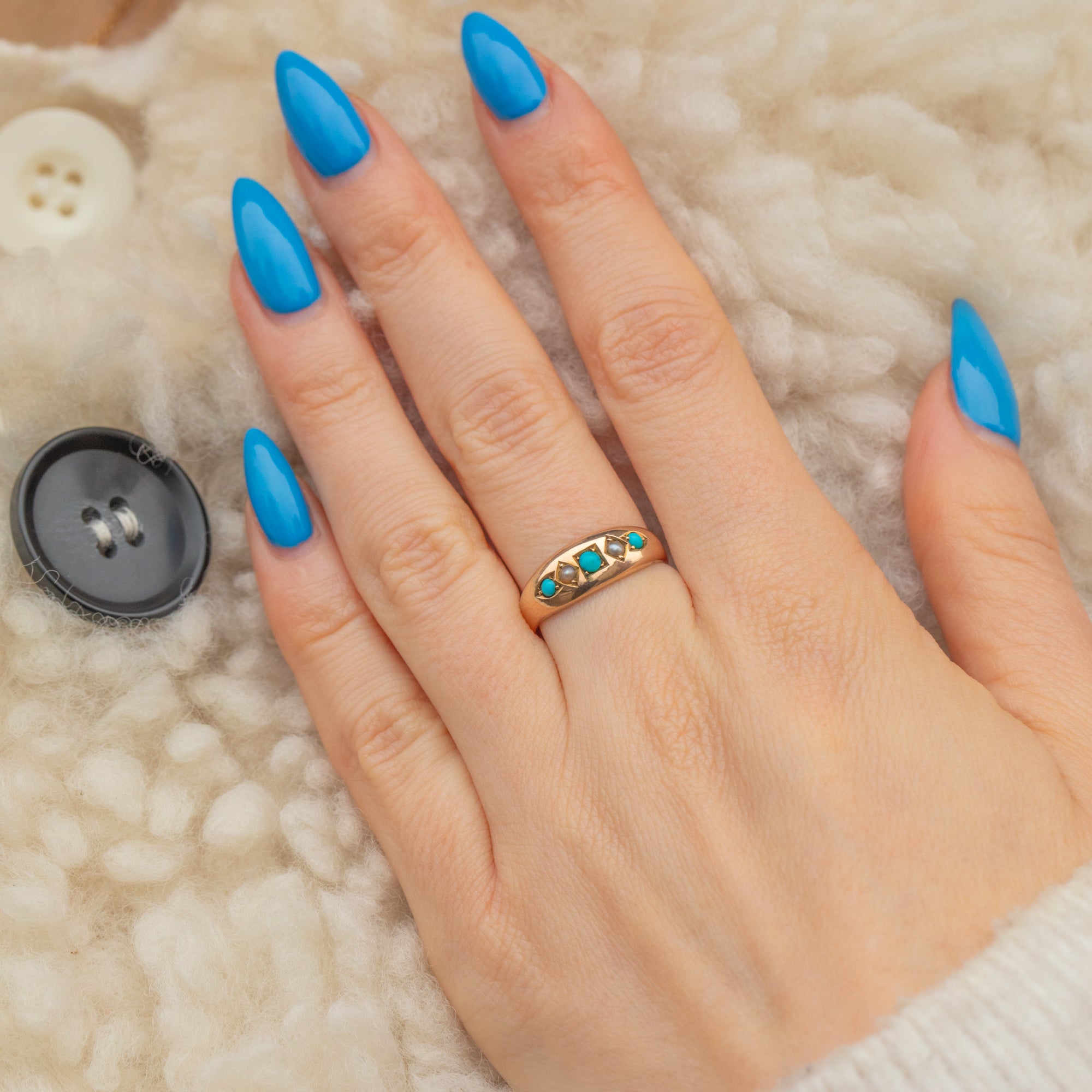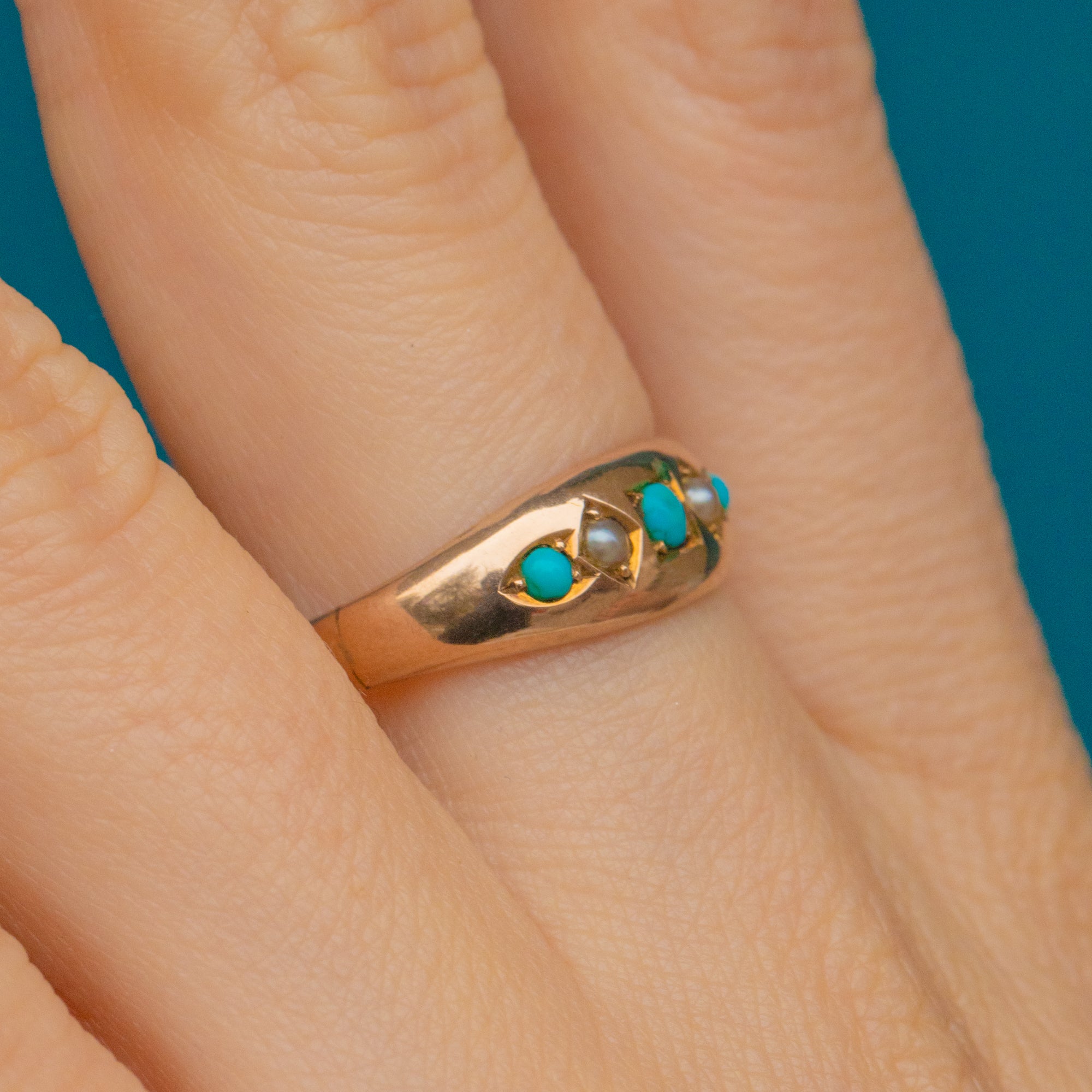This elegant Victorian 9ct Gold Turquoise Peal five stone ring is the perfect versatile piece to add to your collection.