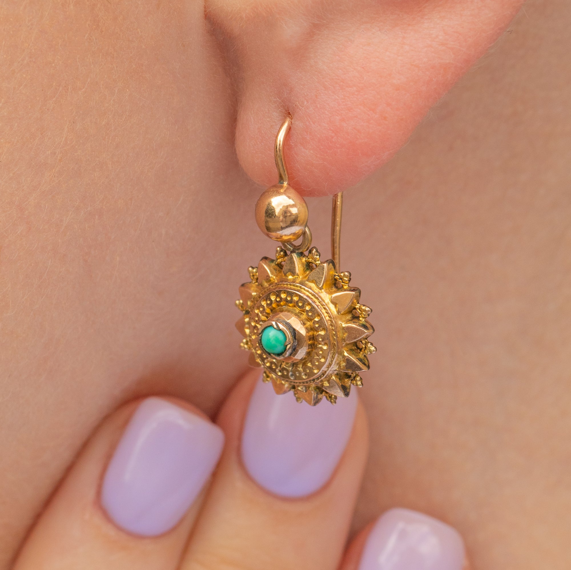 Immerse yourself in the beauty of the Victorian era with this pair of Victorian 9ct Gold Turquoise Star earrings!