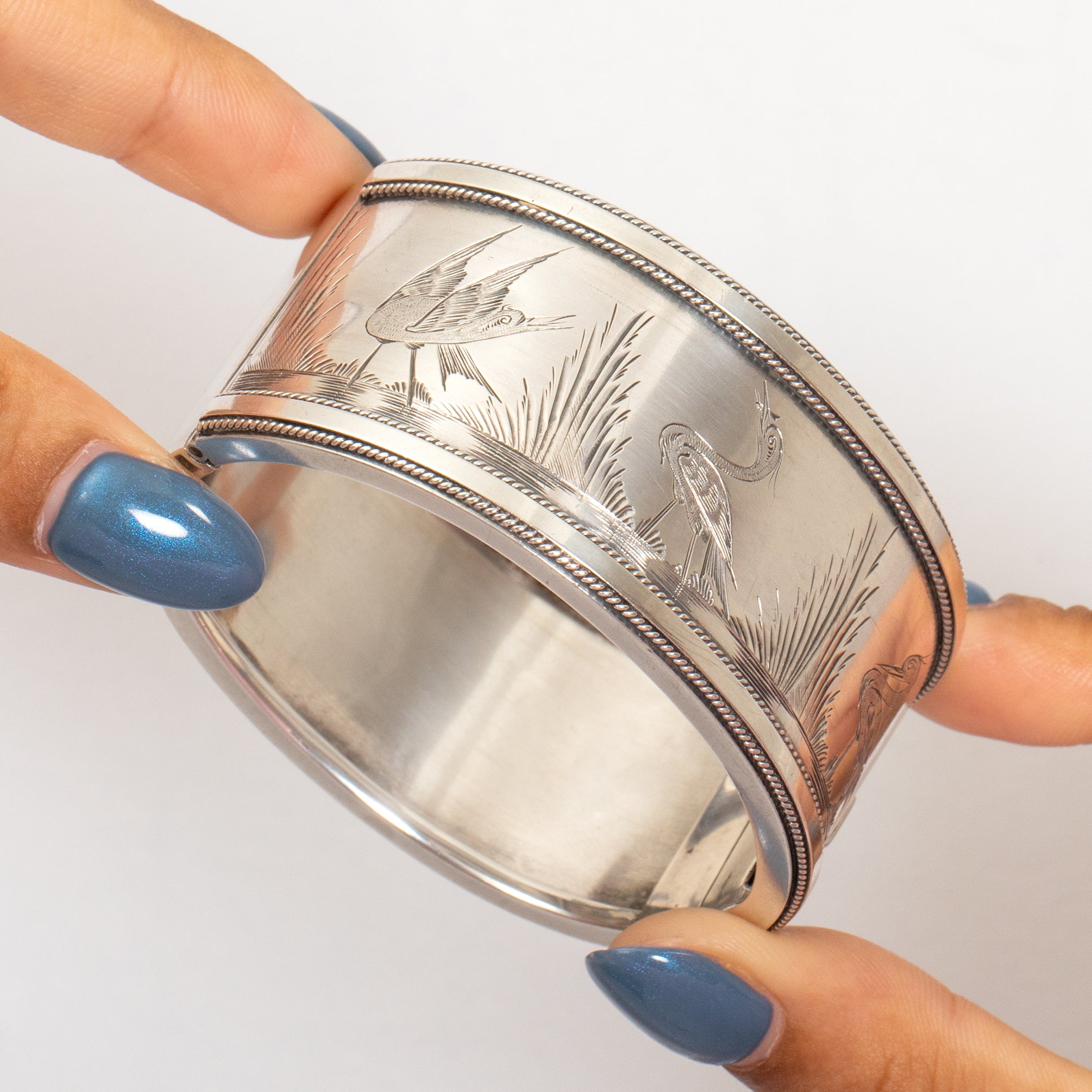 ヴィクトリア朝美学シルバーカフバングル、7インチ