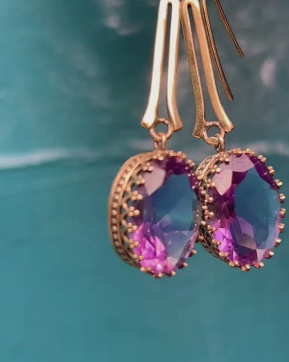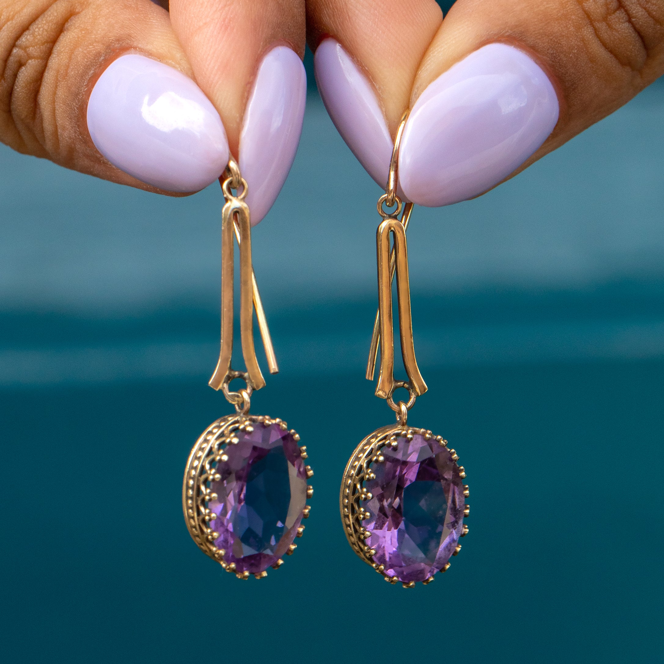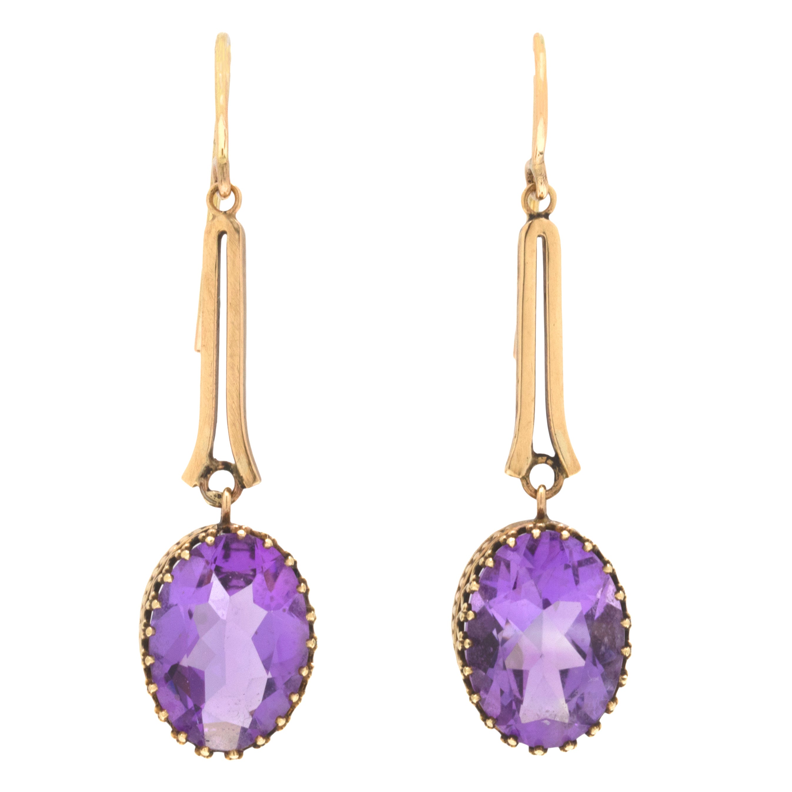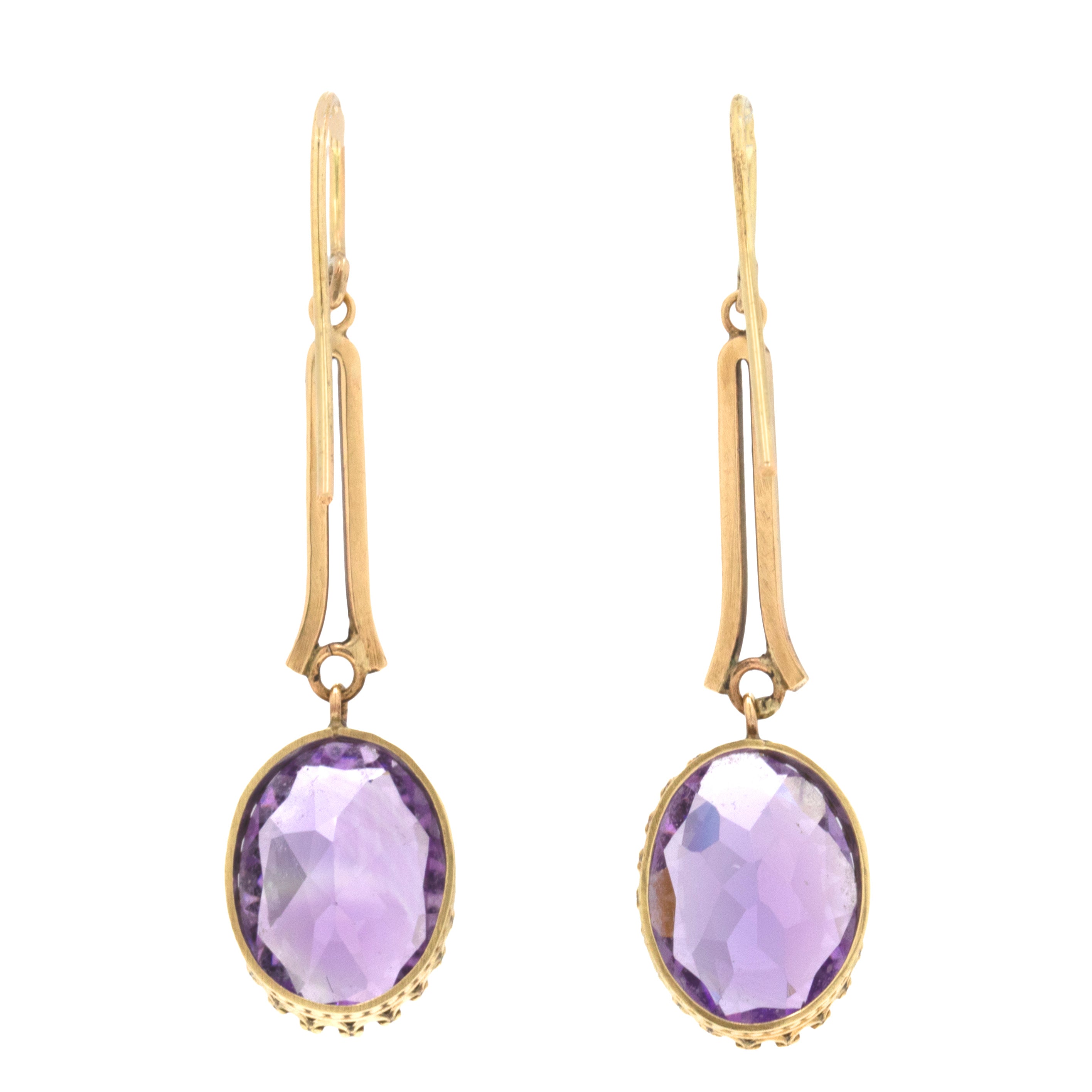 ヴィクトリアン アメジスト ドロップ ピアス 9.00ct、9ct ゴールド