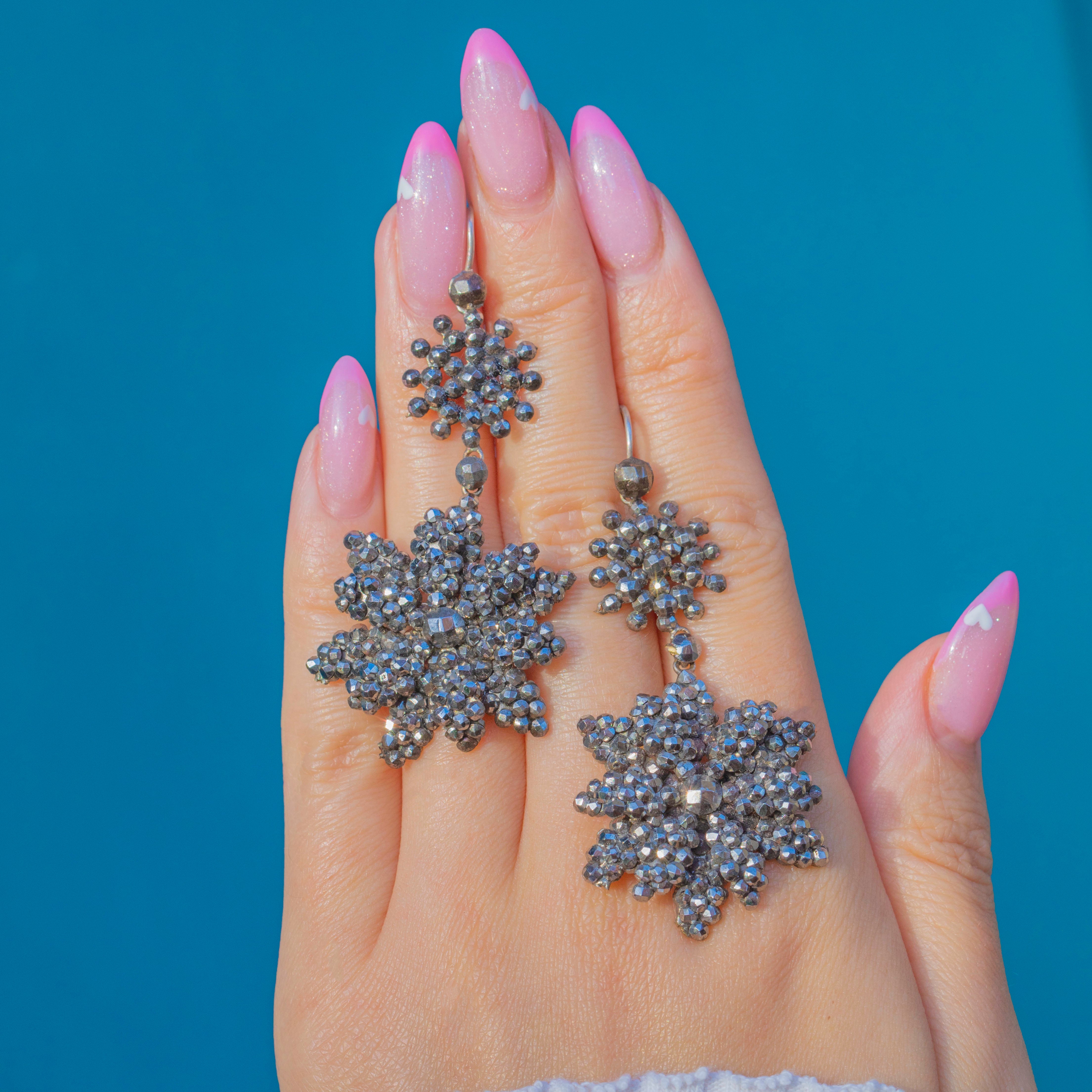 Every facet of the Cut Steel has been hand-cut and polished to catch the light beautifully, including the small joining sections which are also faceted, a rare original feature that highlights their quality. Bold, bright, and full of antique glamour, these statement stars are a true find.
