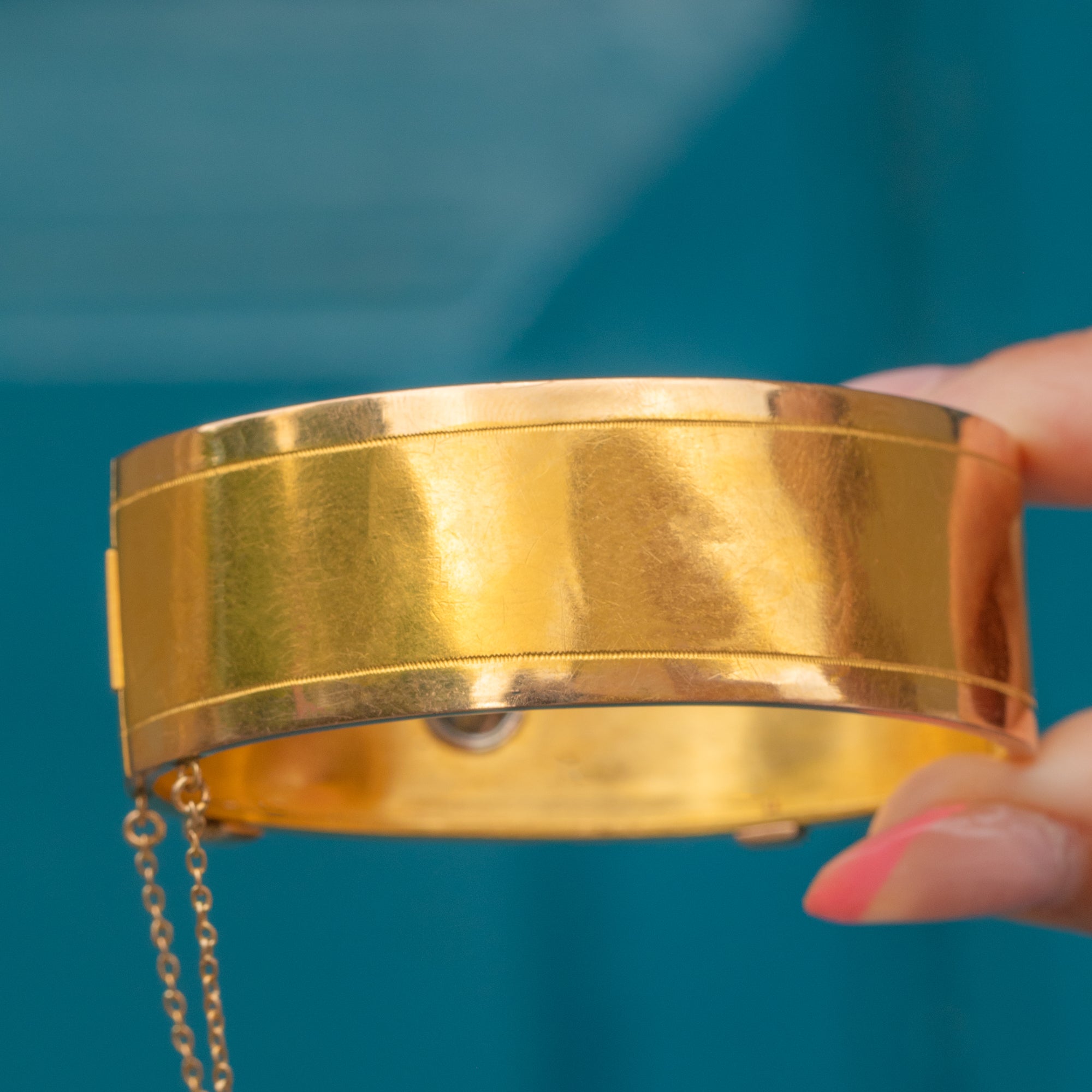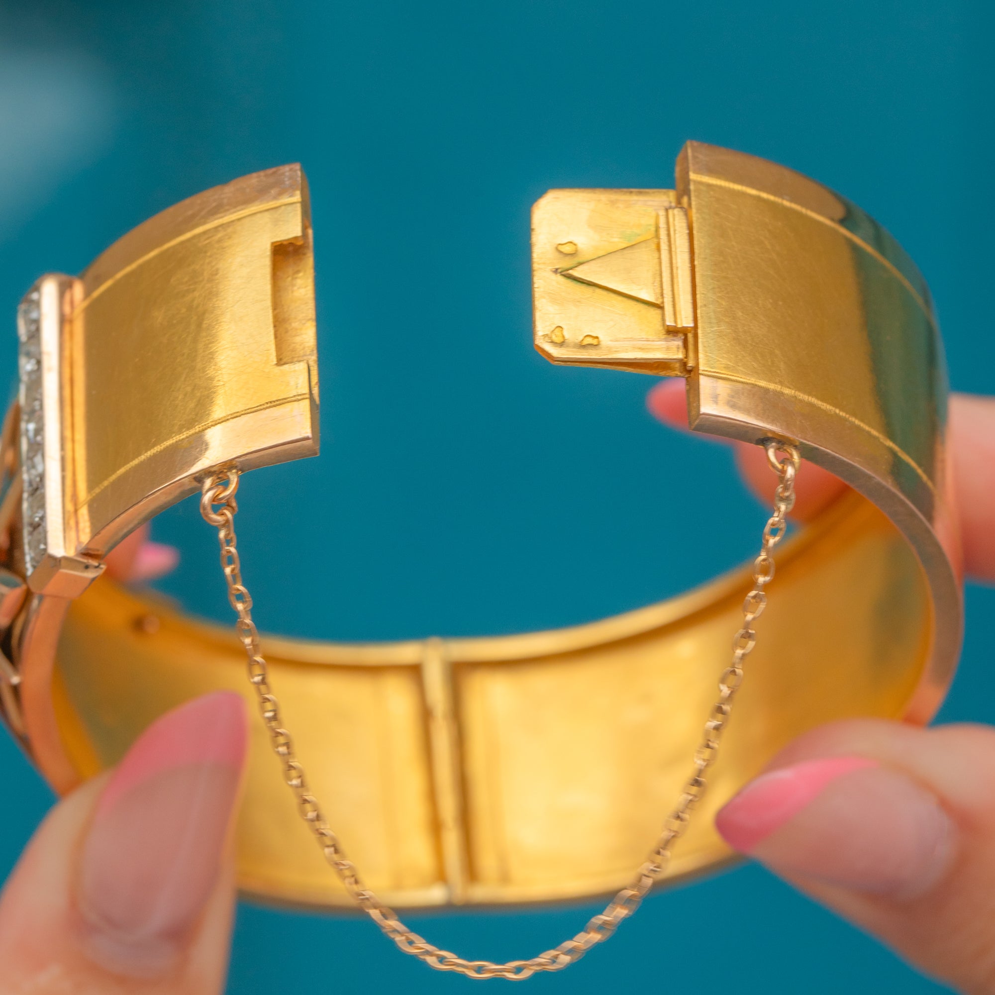The Diamonds are all present and securely set, providing a wonderful sparkle, and are free from chips. The largest is 0.60cts old mine and absolutely dazzling! The bangle closes securely with a click, requiring a gentle push, and the clasp tongue is stamped with the French Eagle's head. You will feel like a million dollars wearing this bangle!