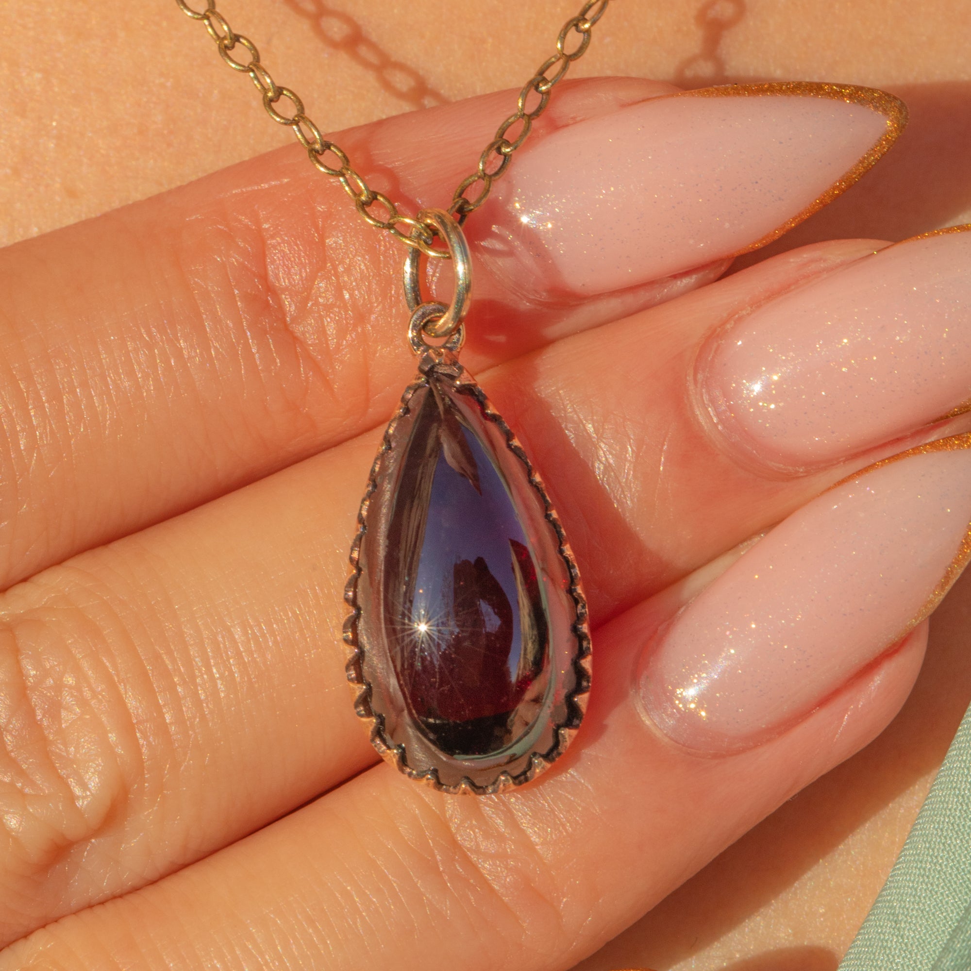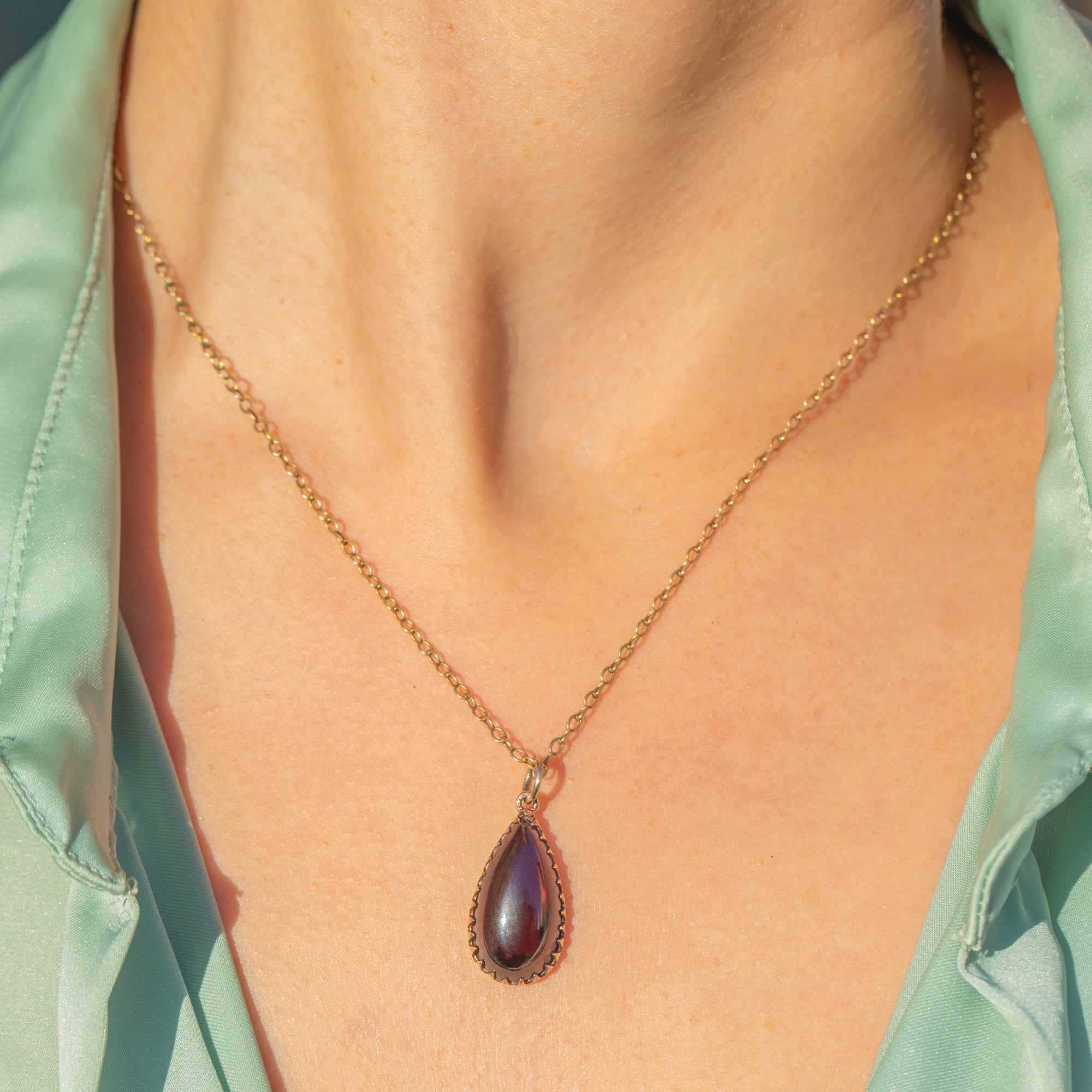 Victorian ガーネット カボション ティアドロップ チャーム