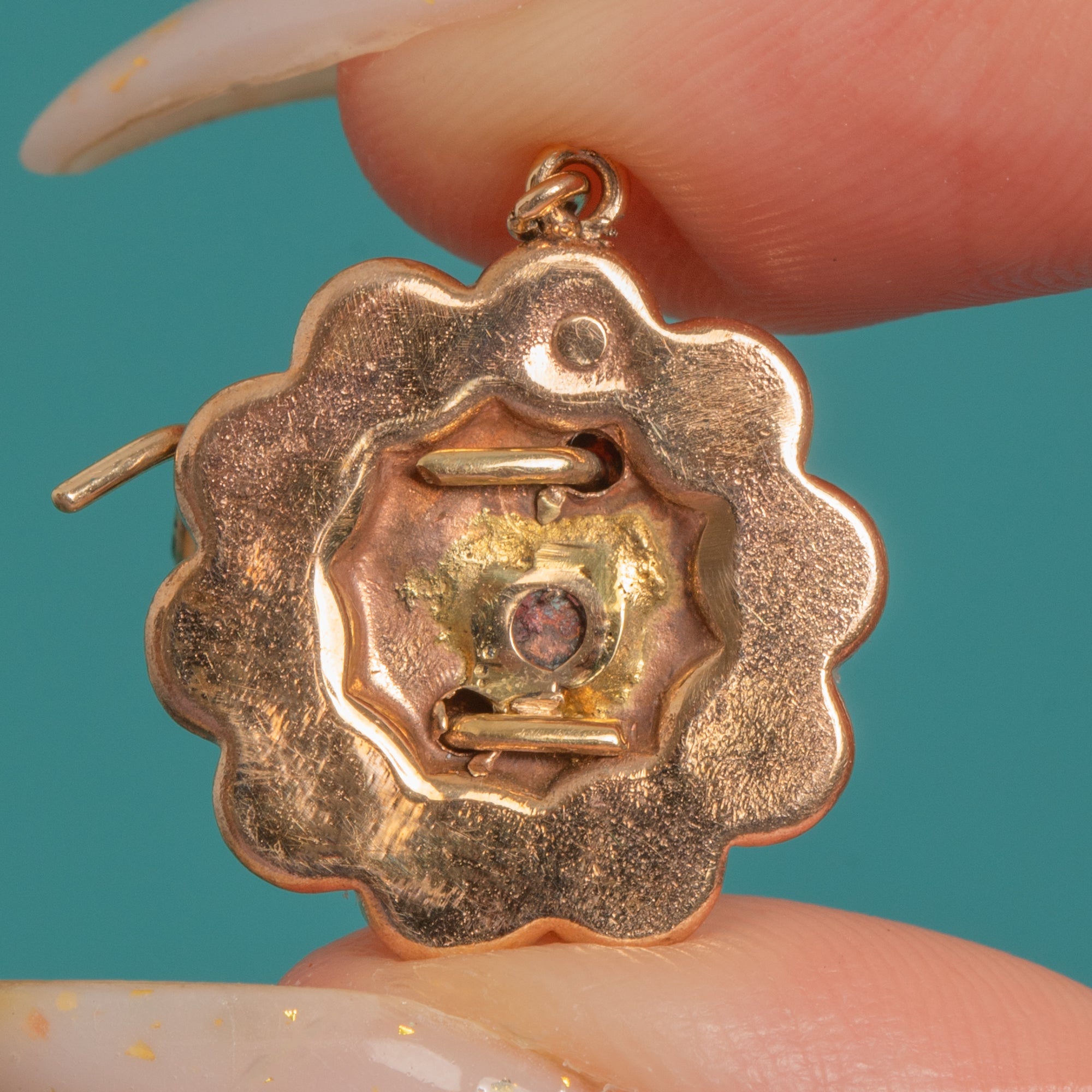 Full of antique charm yet effortlessly wearable, the intricate hand-set construction and floral motif evoke classic Victorian allure. A compact drop with luminous colour makes these earrings an easy choice for day-to-evening sophistication.