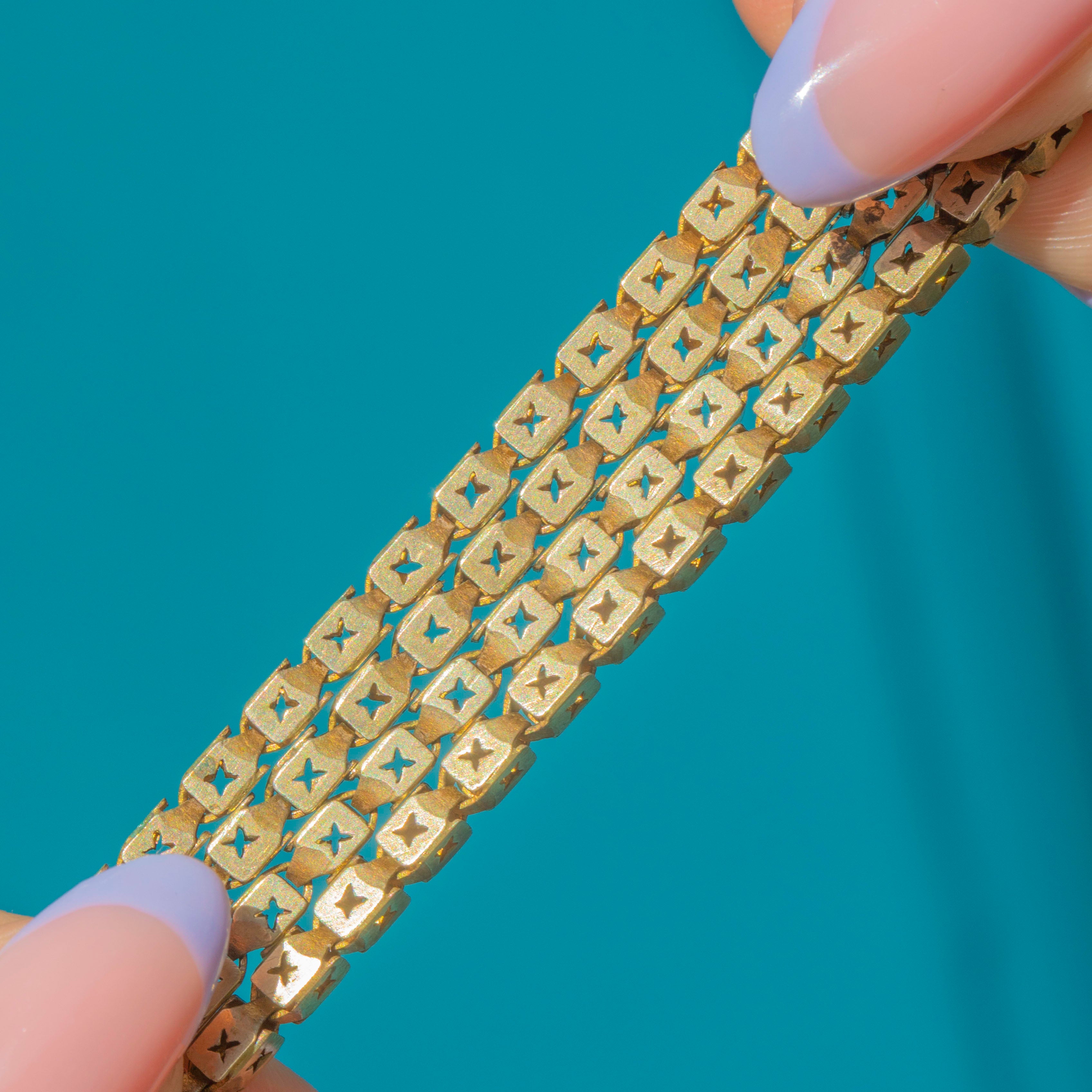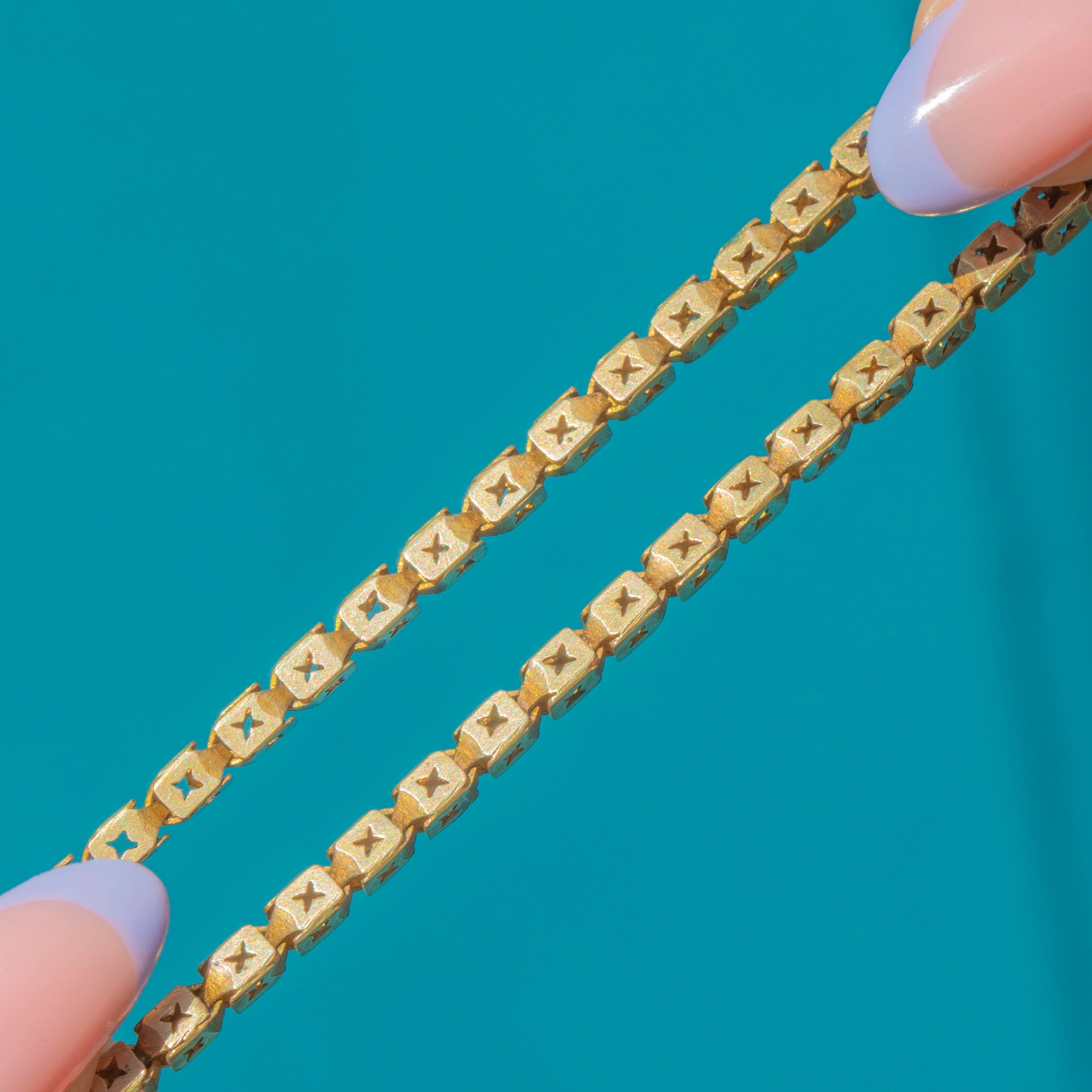 Victorian Gold Toned Pierced Star Link Chain with Dog-Clip