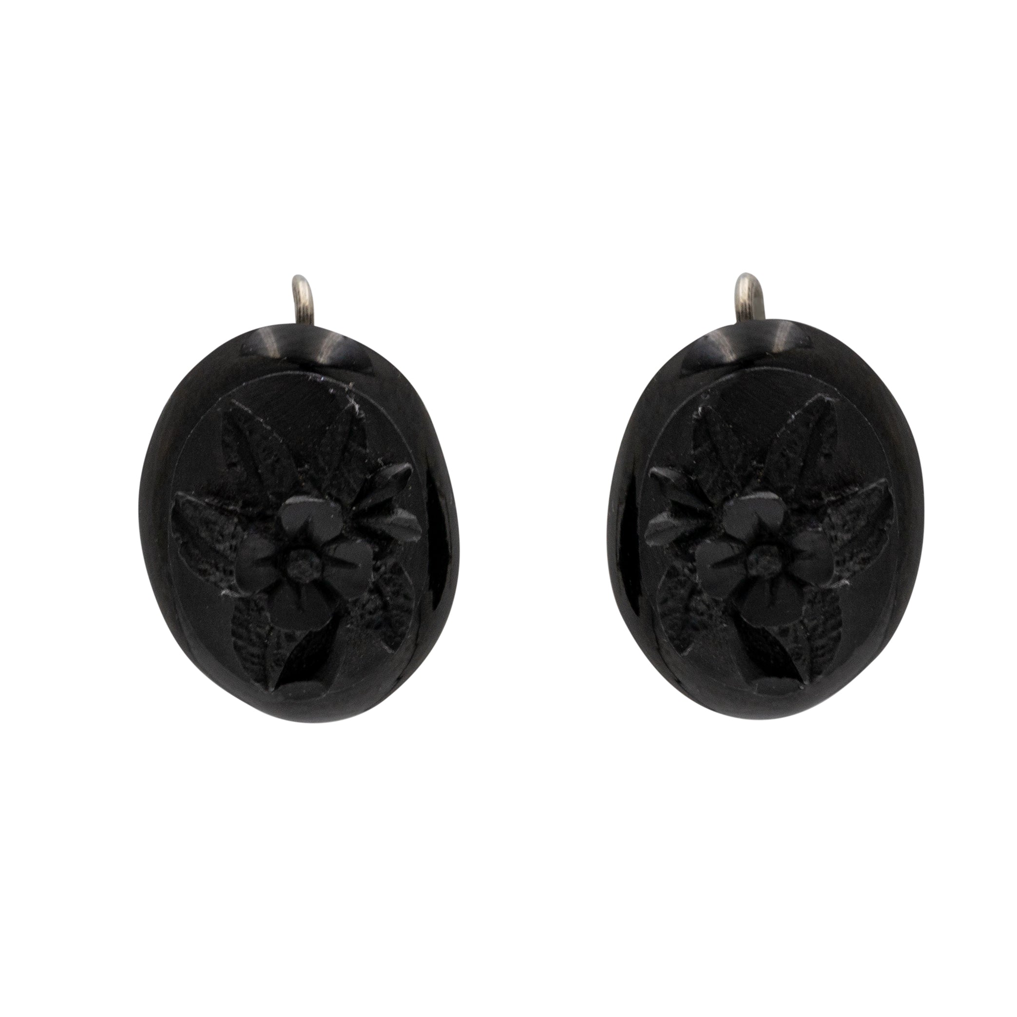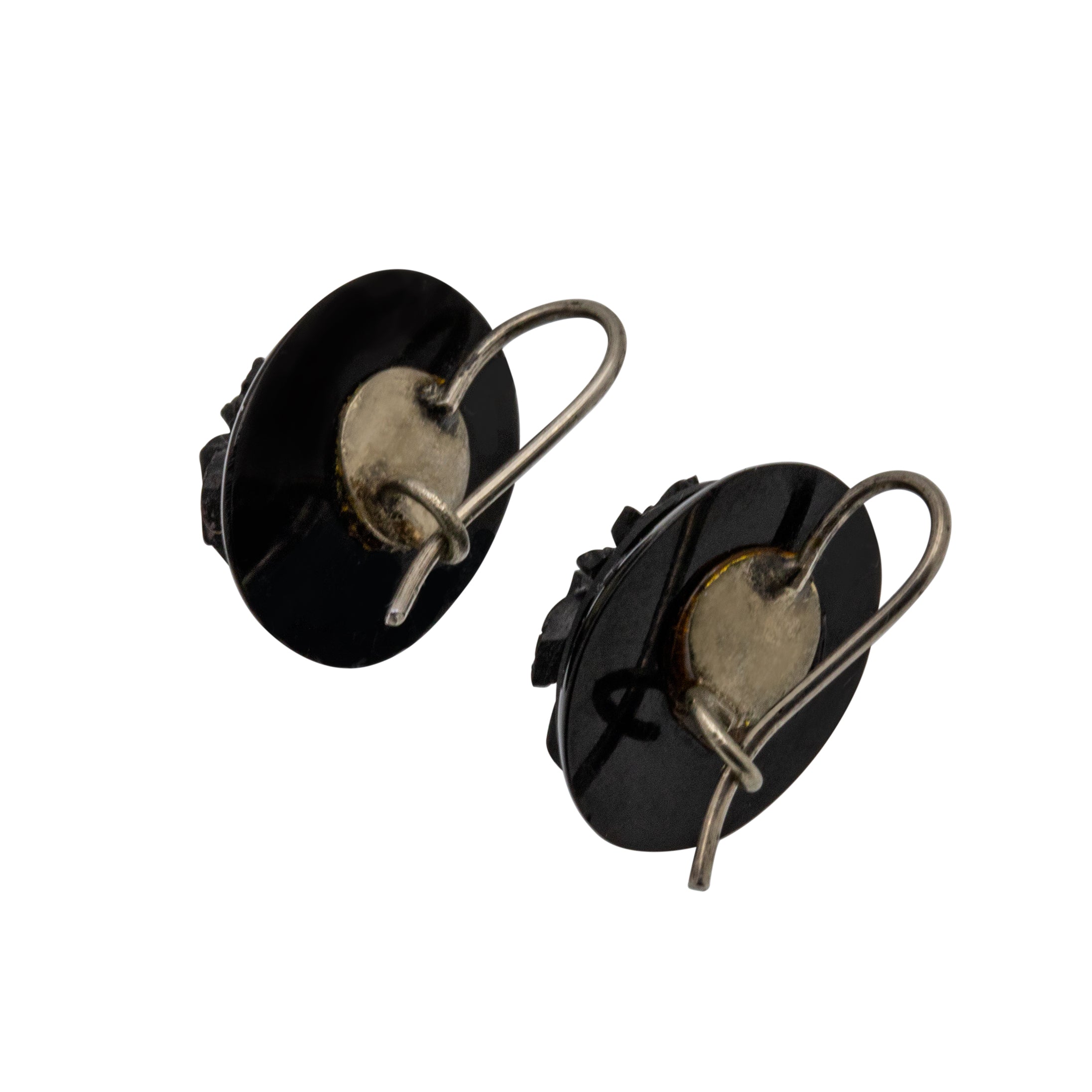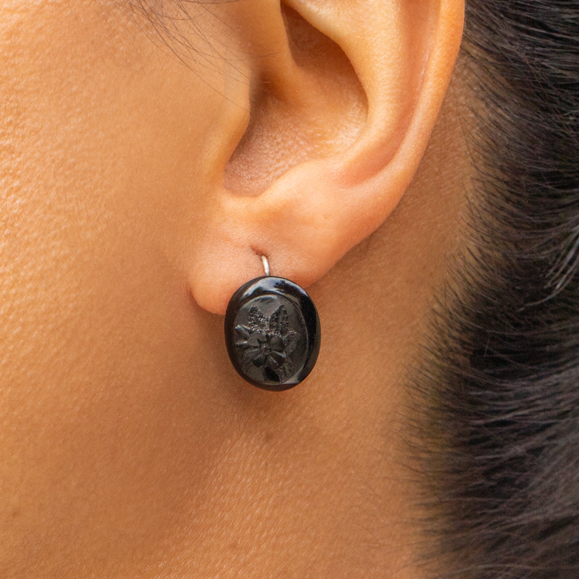ヴィクトリアン シルバー 彫刻ジェット イヤリング