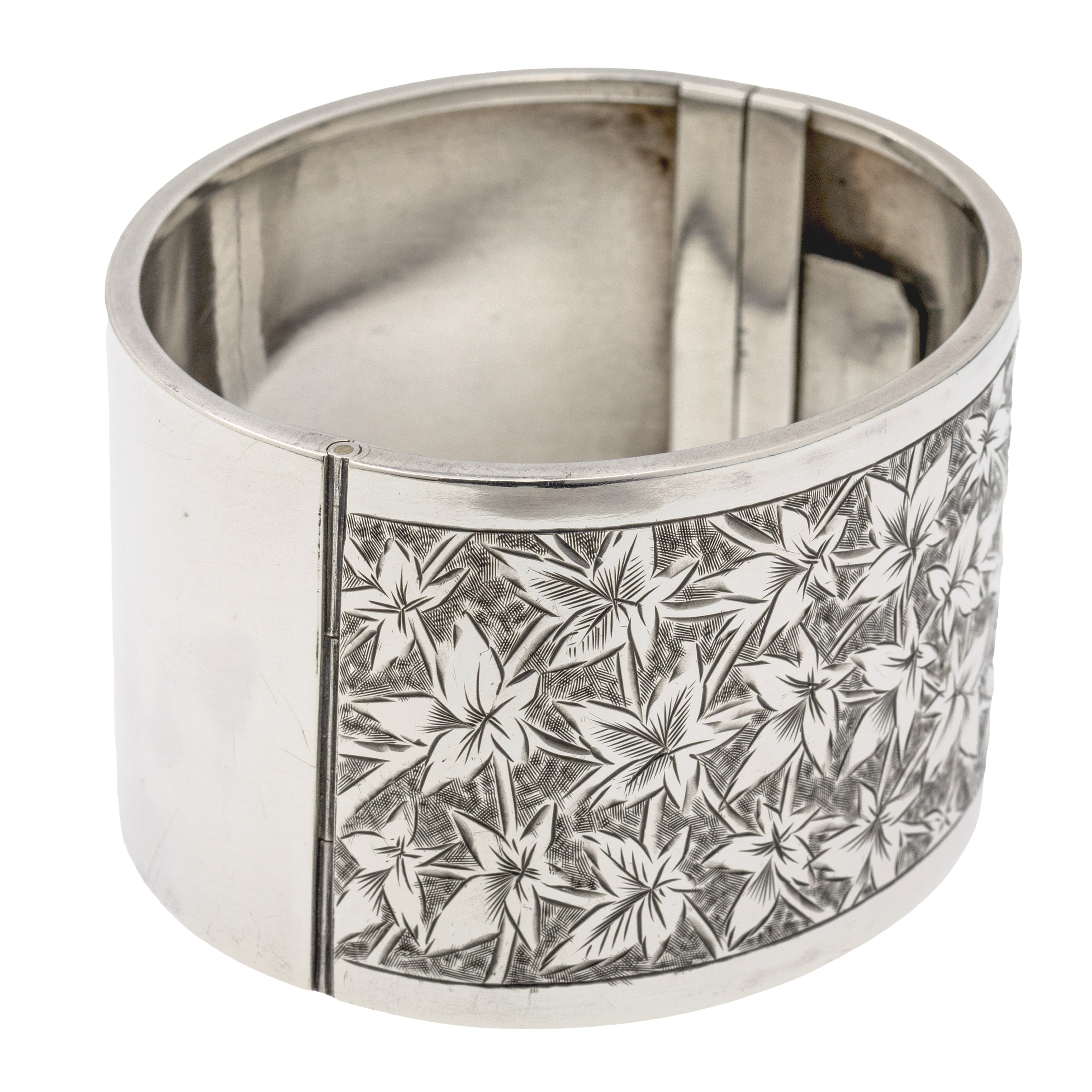 ヴィクトリアン シルバー 彫刻 アイビーリーフ バングル