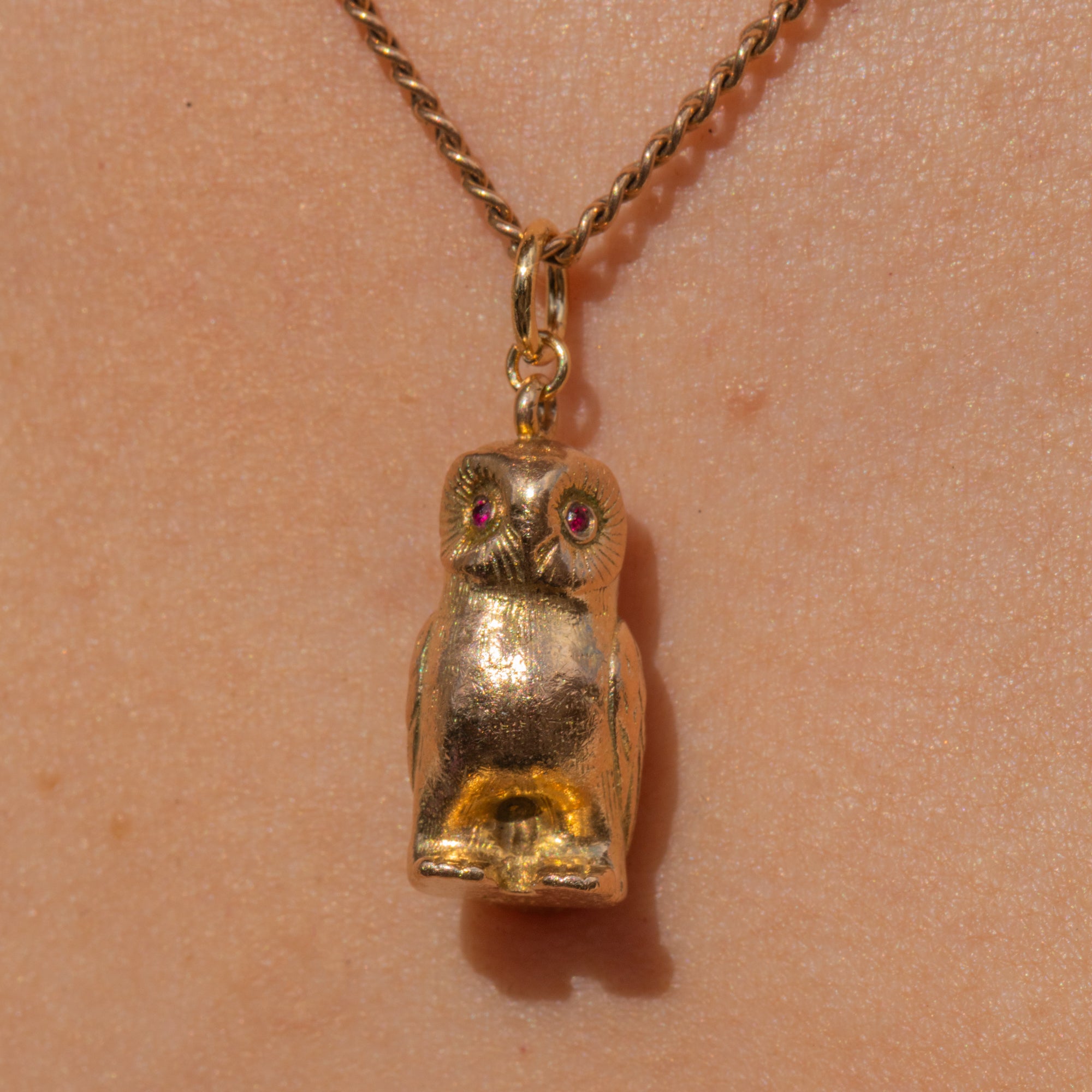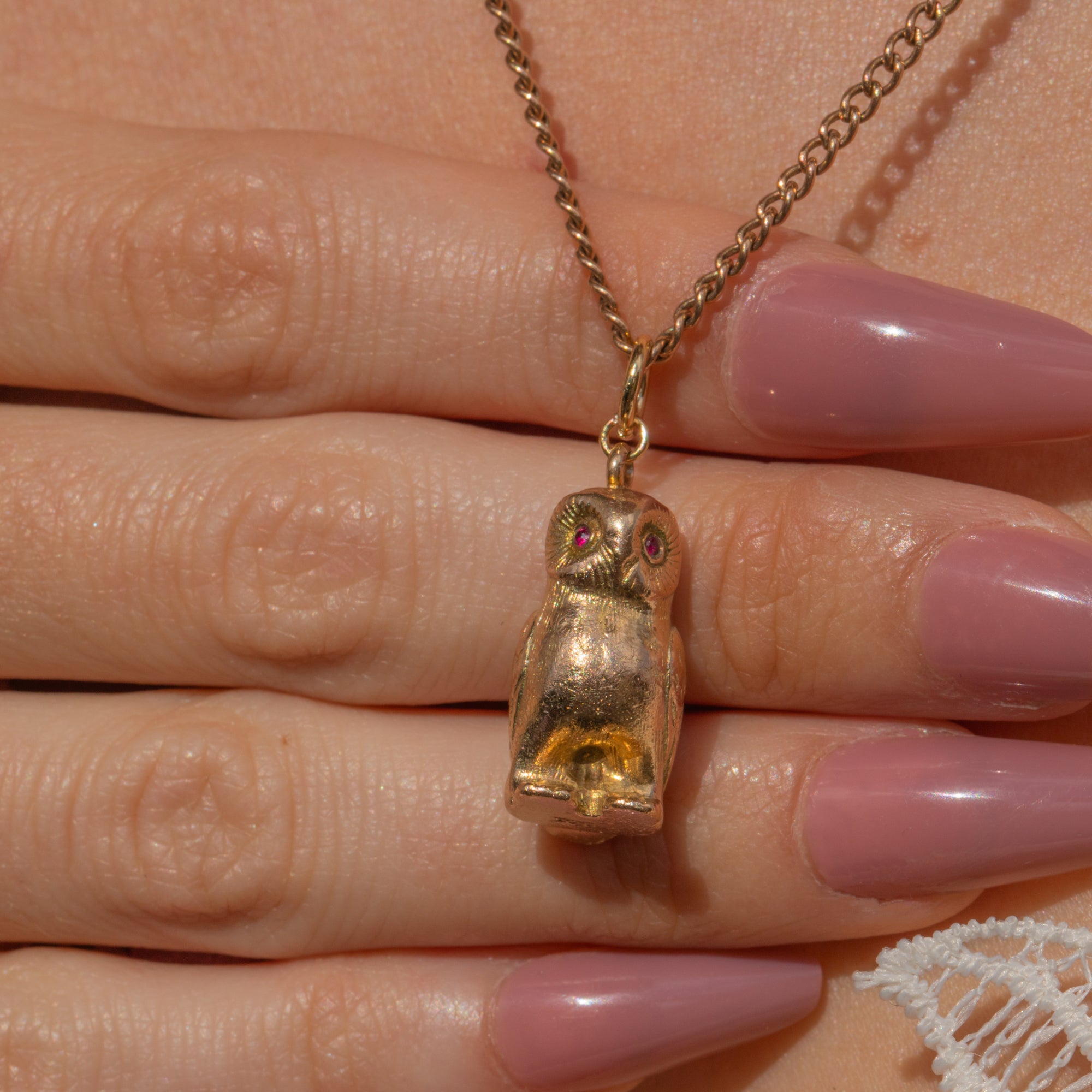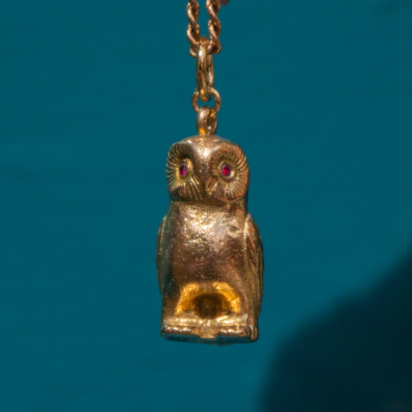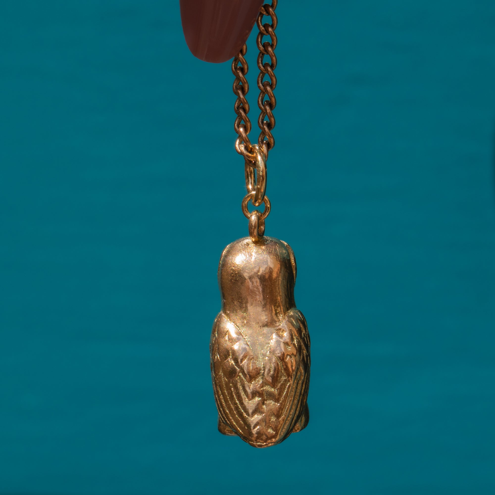 Let this Victorian solid 9ct Gold owl pendant sweep into your antique jewellery collection! From head to tail, this antique charm is crafted from buttery, solid 9ct Gold with fine engravings of feathers covering every millimetre.