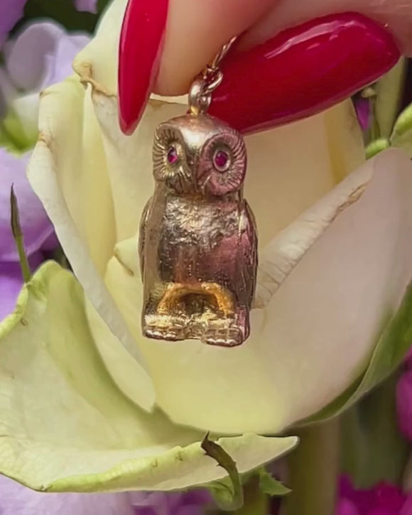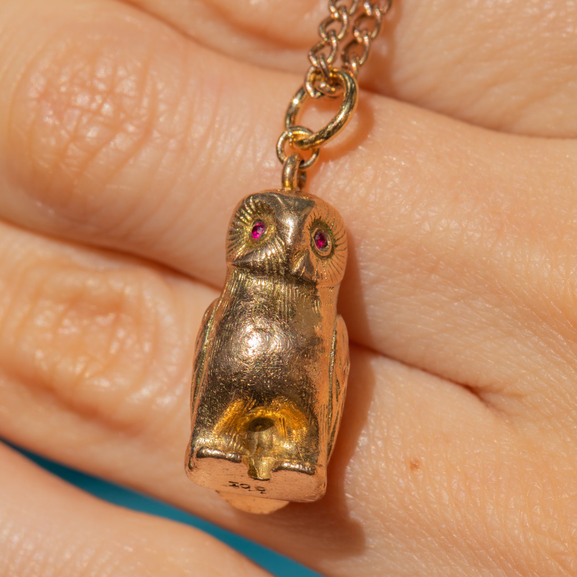 EXCELLENT. Comprised of glossy 9ct Gold with no dings or dents to note, securely set Garnets and bundles of charm, this Victorian solid 9ct Gold owl pendant is in excellent condition!