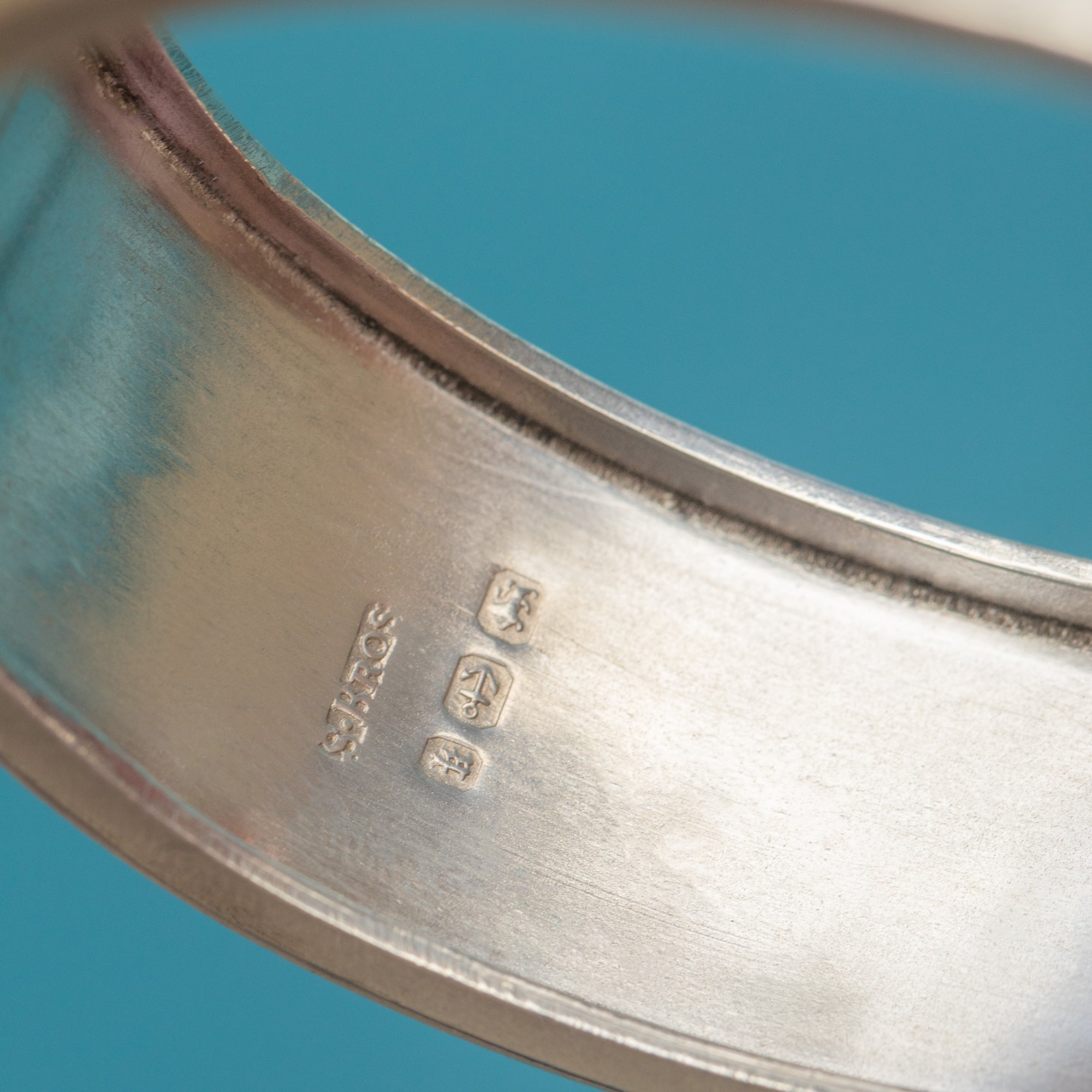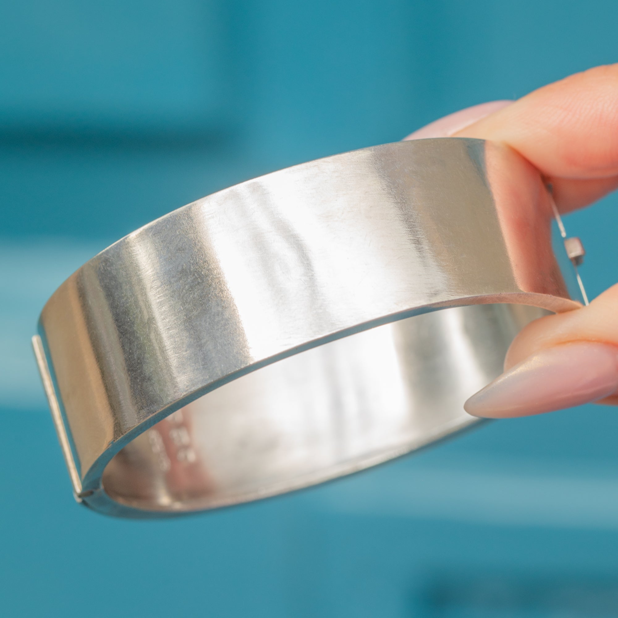 Fully hallmarked for Birmingham 1884 with the maker’s mark “S.Bros”, this hinged bangle combines artistry and craftsmanship in equal measure. At 27.6g and 20mm wide, it has a bold presence while remaining timelessly feminine and easy to style.