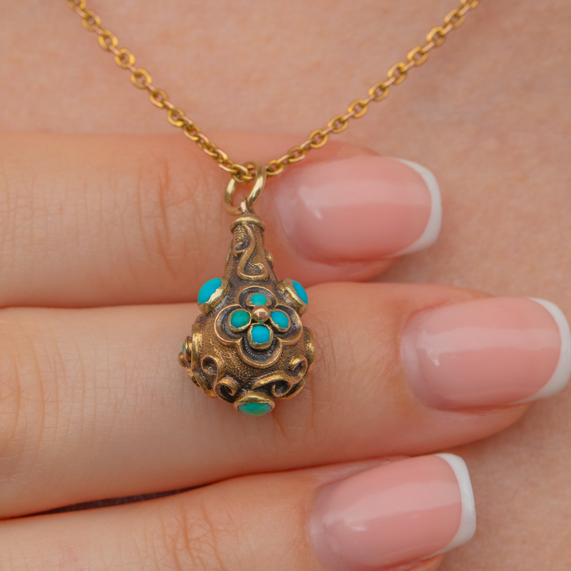 The Victorians have always admired jewellery with deep-rooted symbolism, with this antique charm being no exception! Forget-me-nots symbolise true love and respect, making this Turquoise pendant the perfect gift for a loved one!