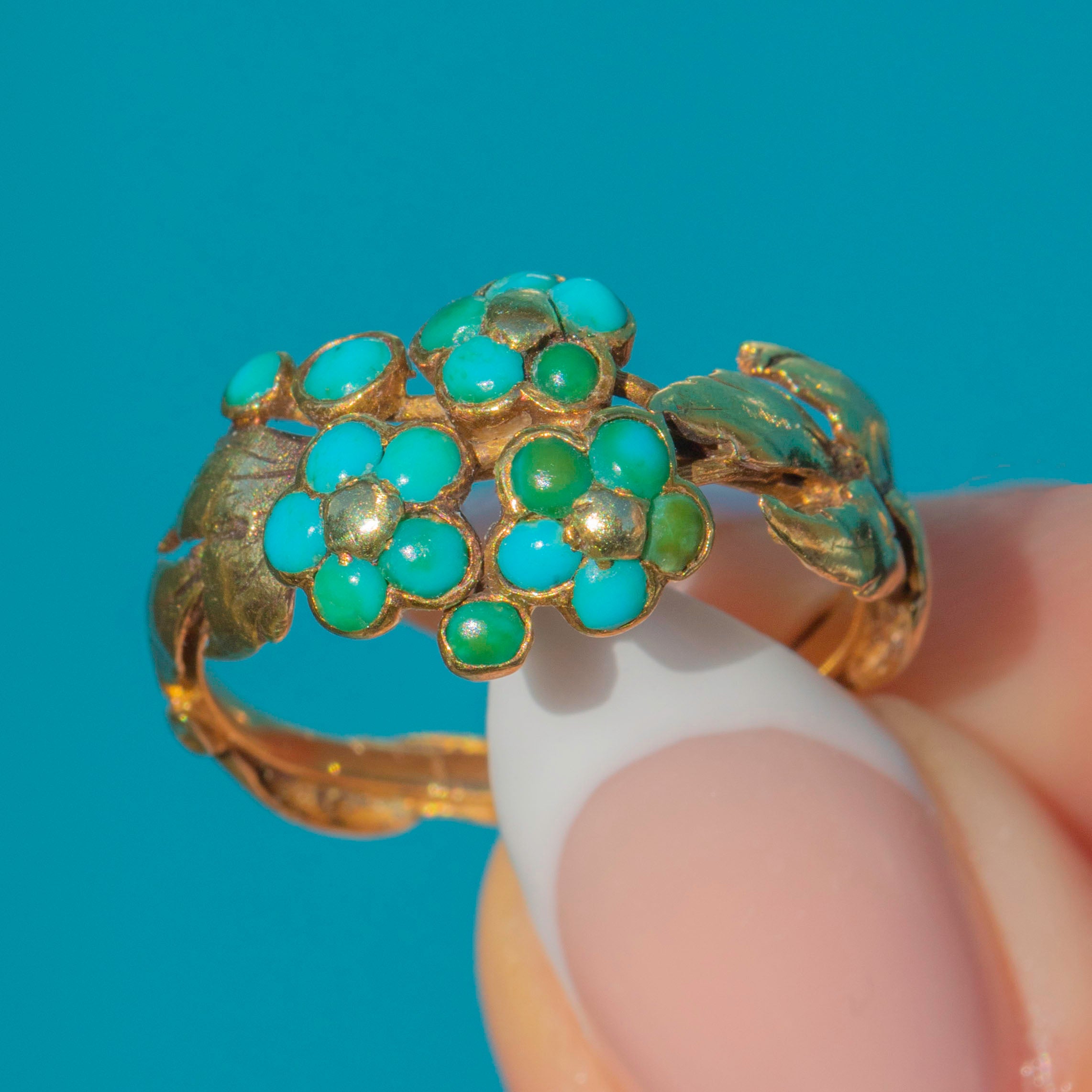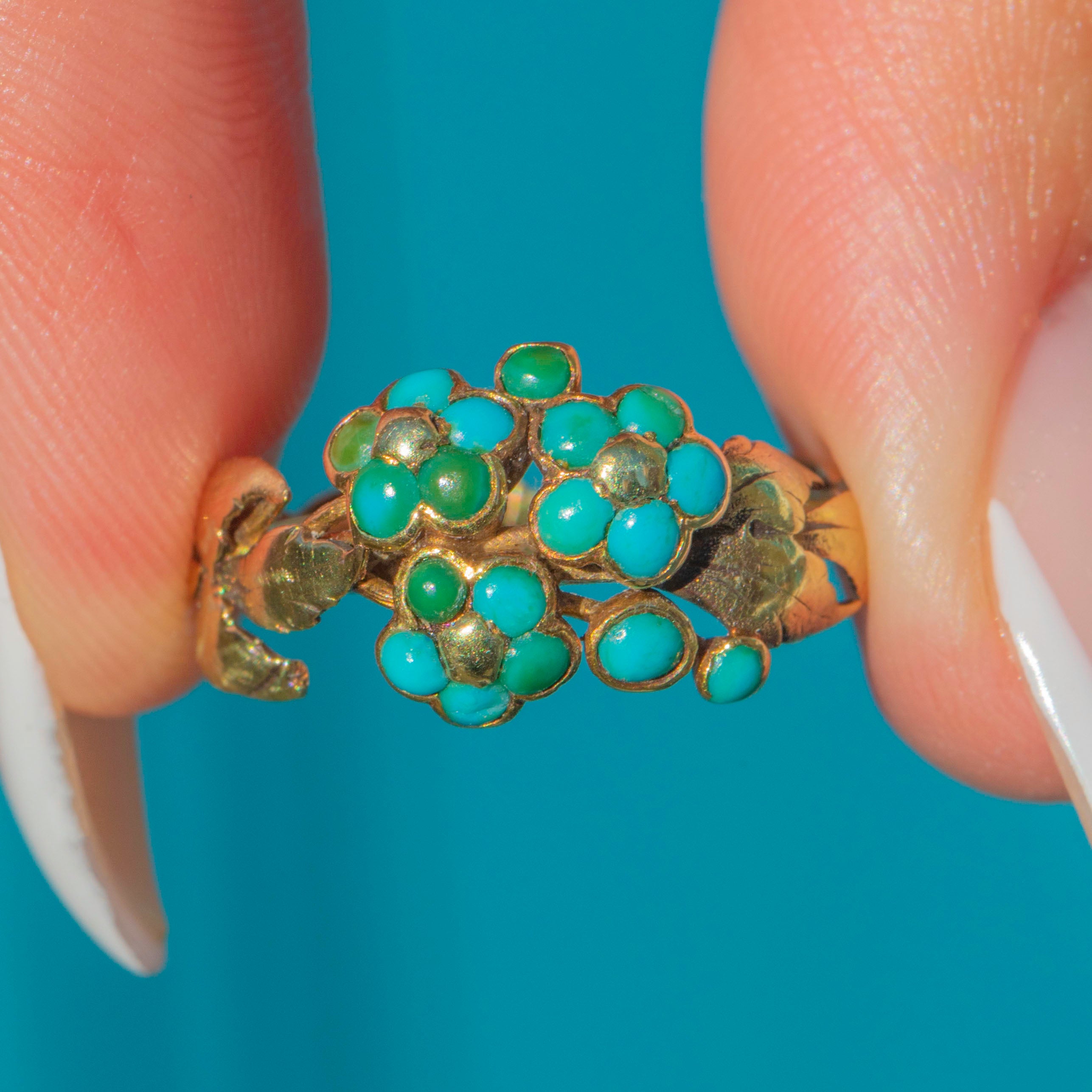 Victorian 18ct Gold Turquoise Forget-Me-Not Flowers Ring, c.1850