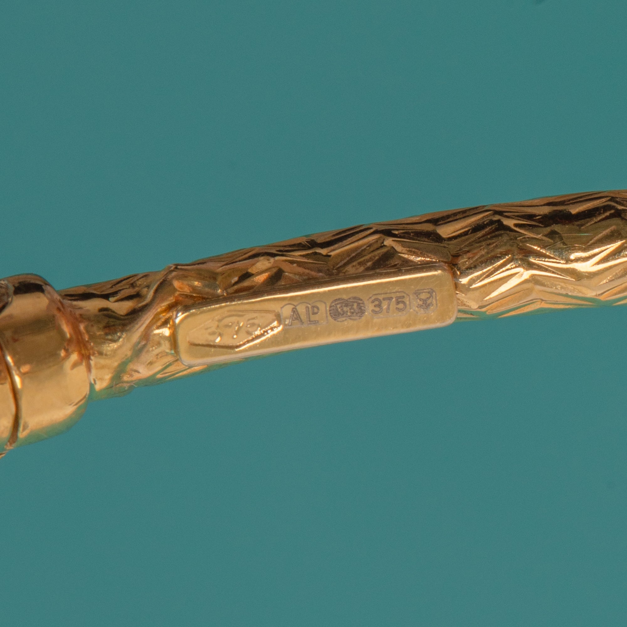 HALLMARKS: 375, ALd maker’s mark, London Leopard’s Head, 375 Scales.