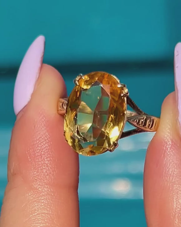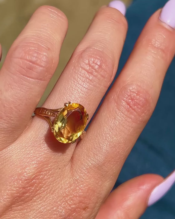 Vintage 9ct Gold Citrine Dress Ring 3.80ct