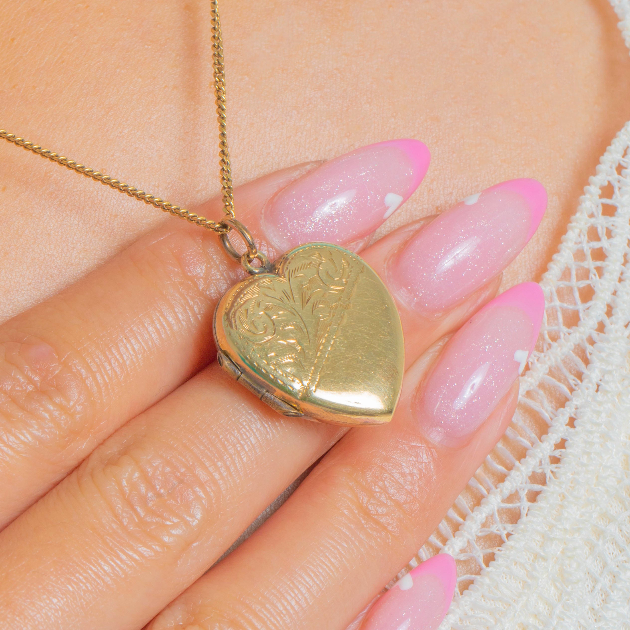 A charming 1940s heart-shaped locket crafted in 9ct Gold, capturing the romance and sentimentality of the era.